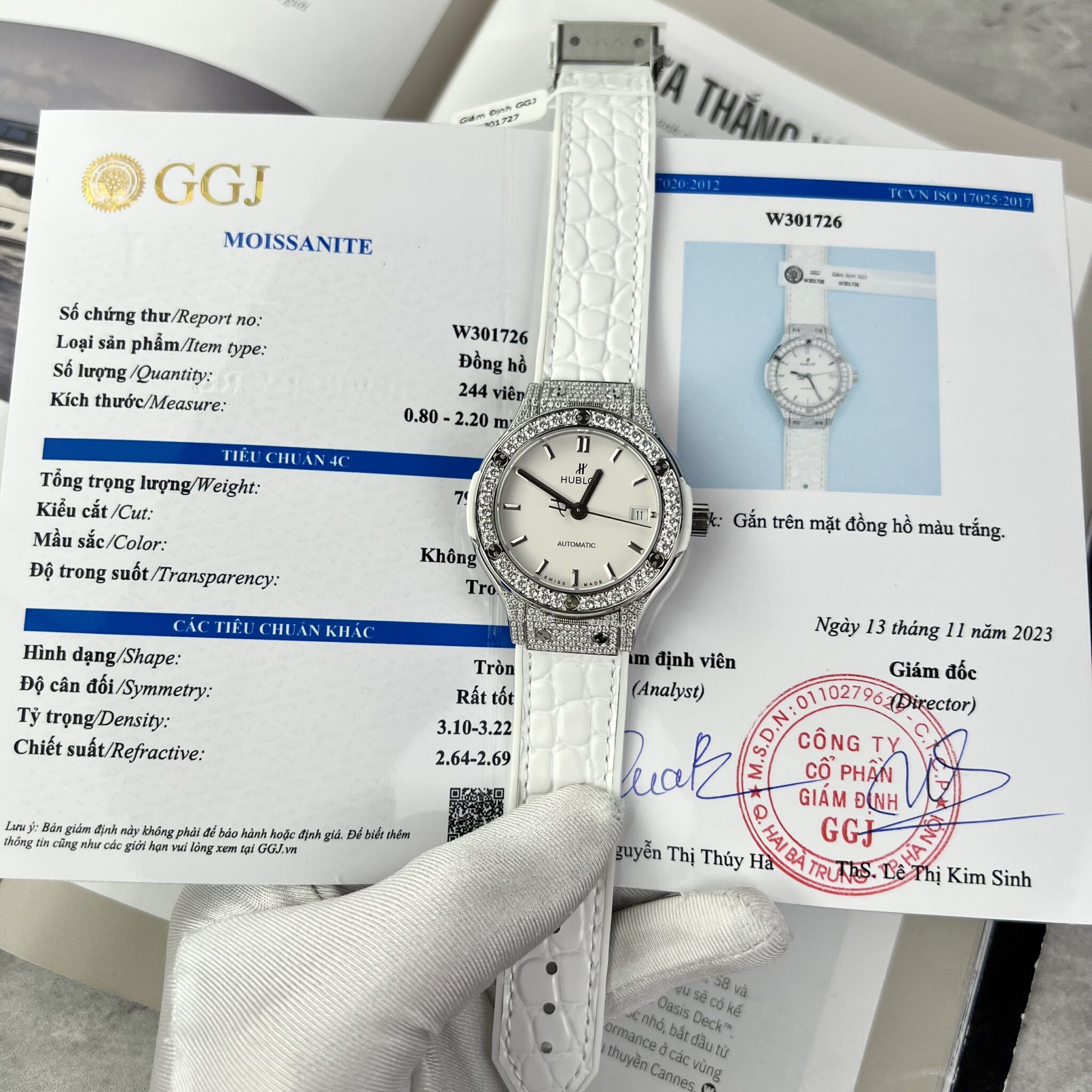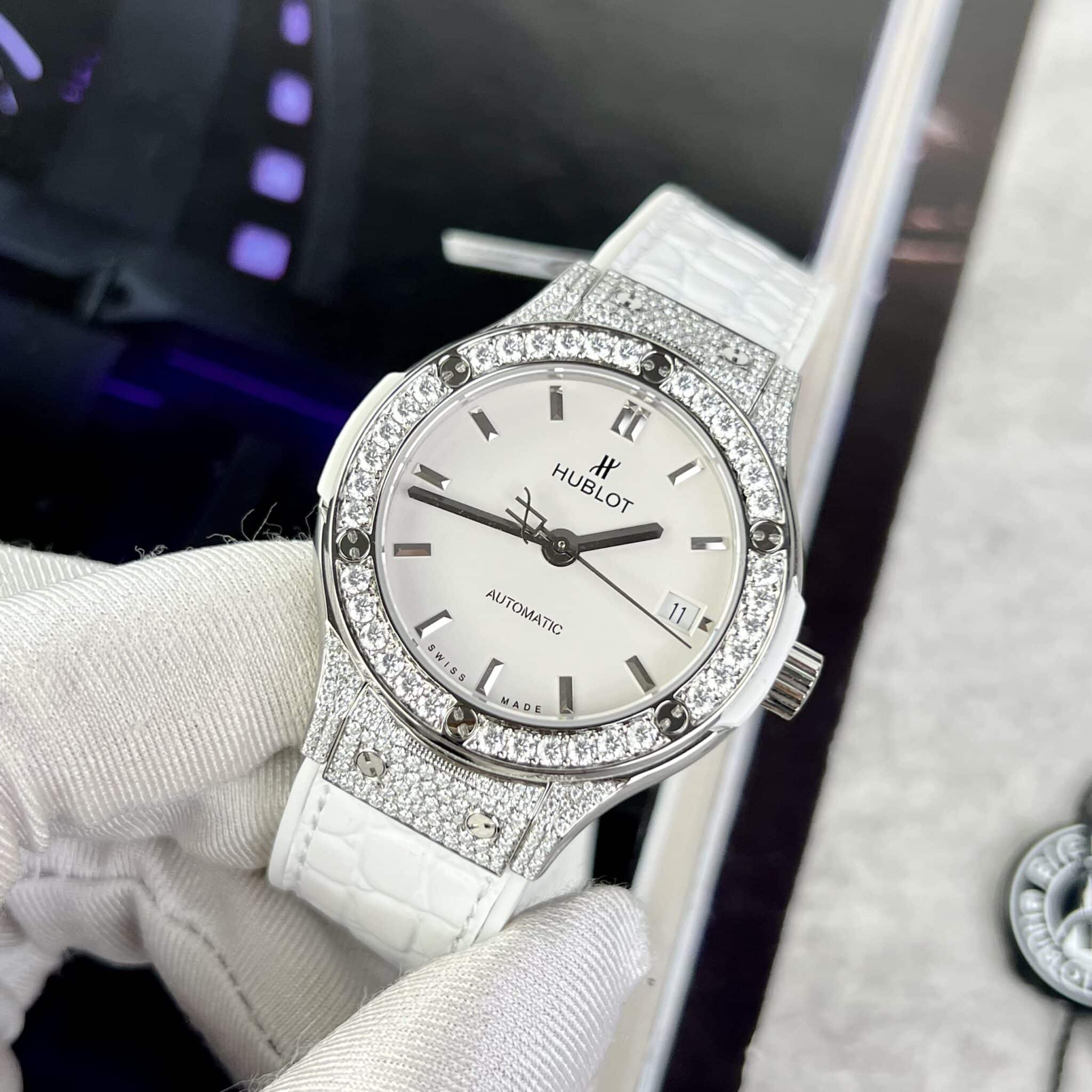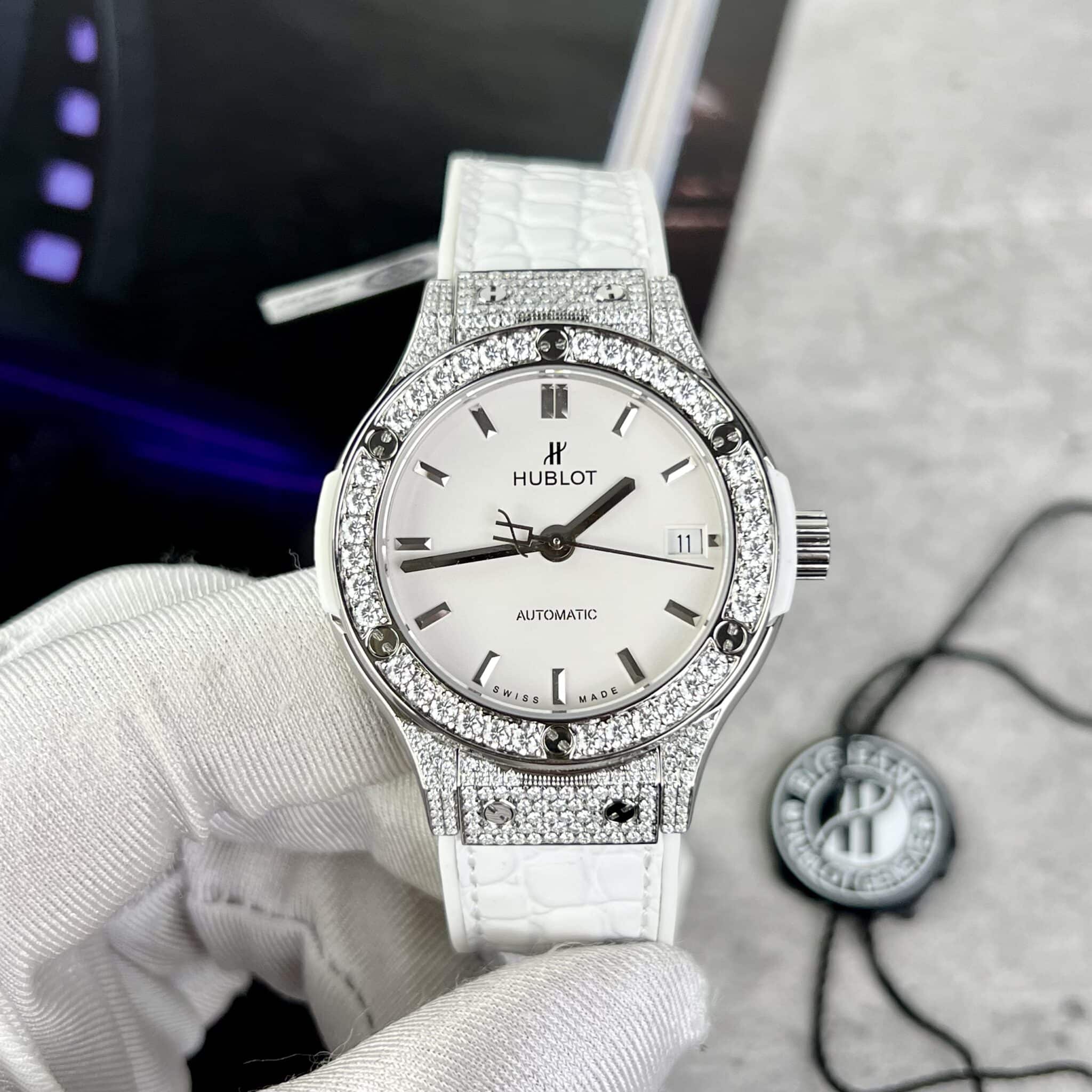 CHI TIẾT ĐỒNG HỒ HUBLOT CLASSIC FUSION MÀU TRẮNG ĐÍNH MOISSANITE 38MM TẠI THẾ GIỚI ĐỒNG HỒ ĐẸP