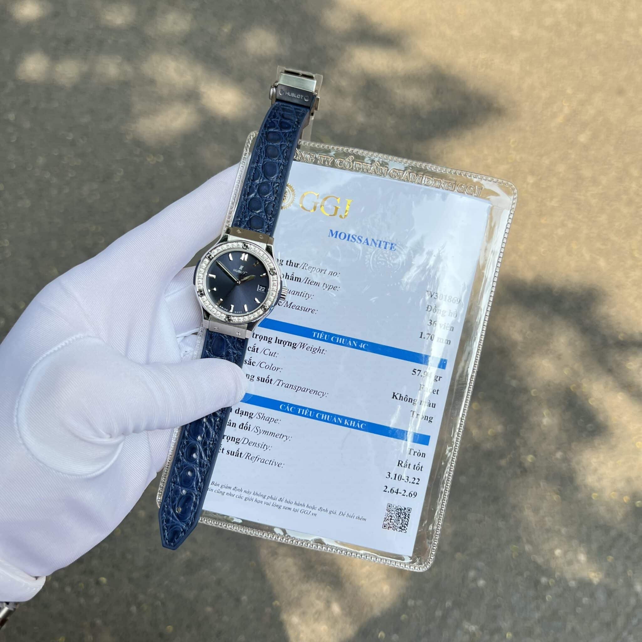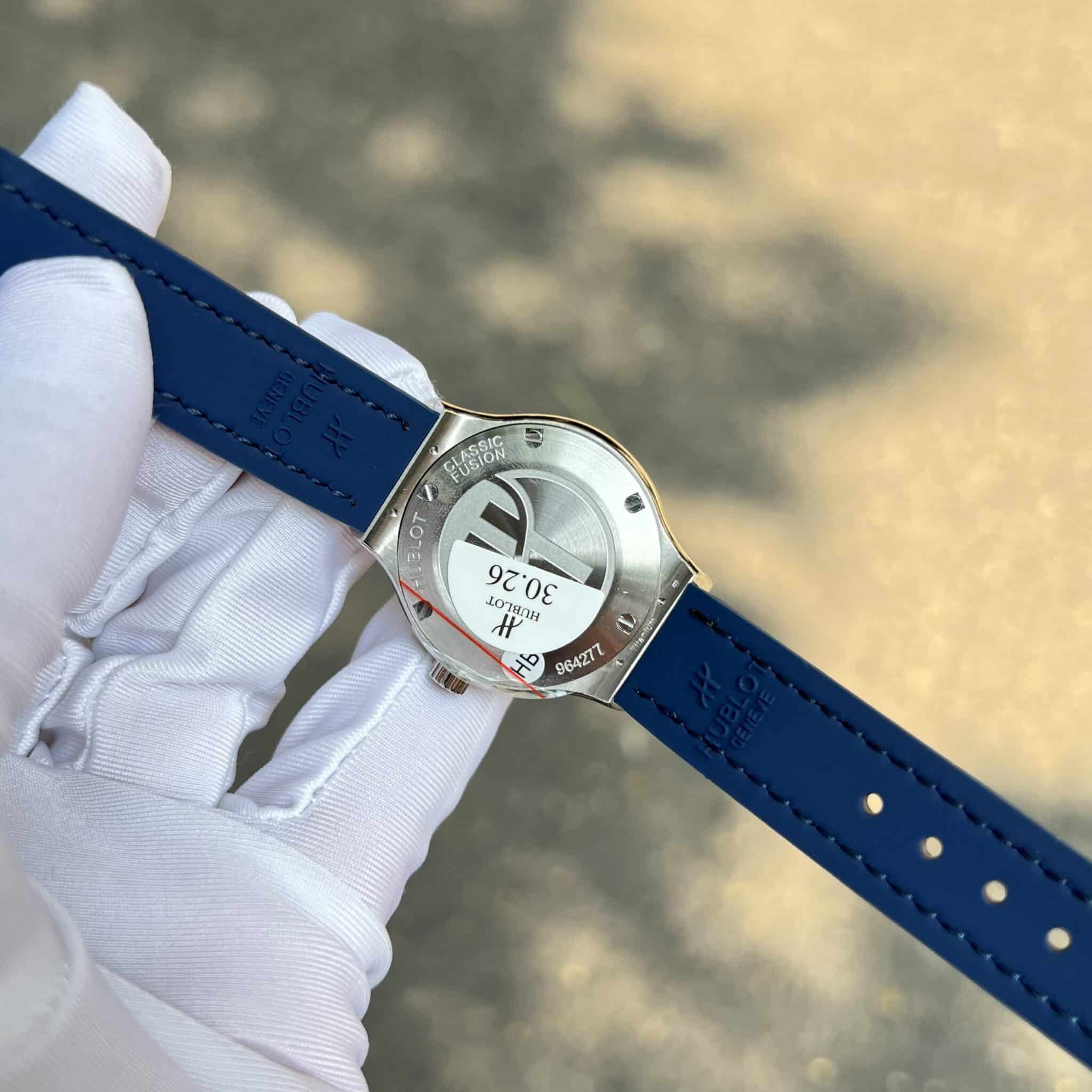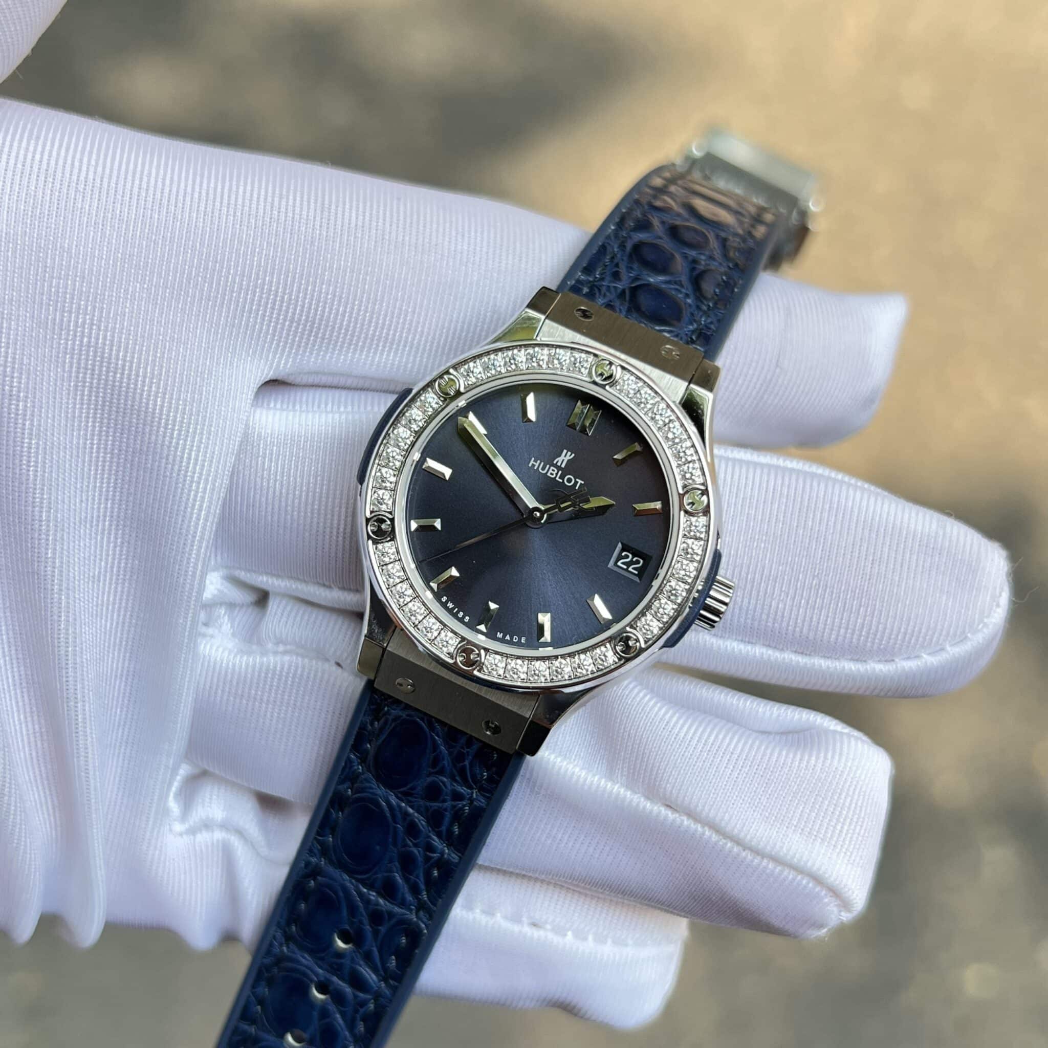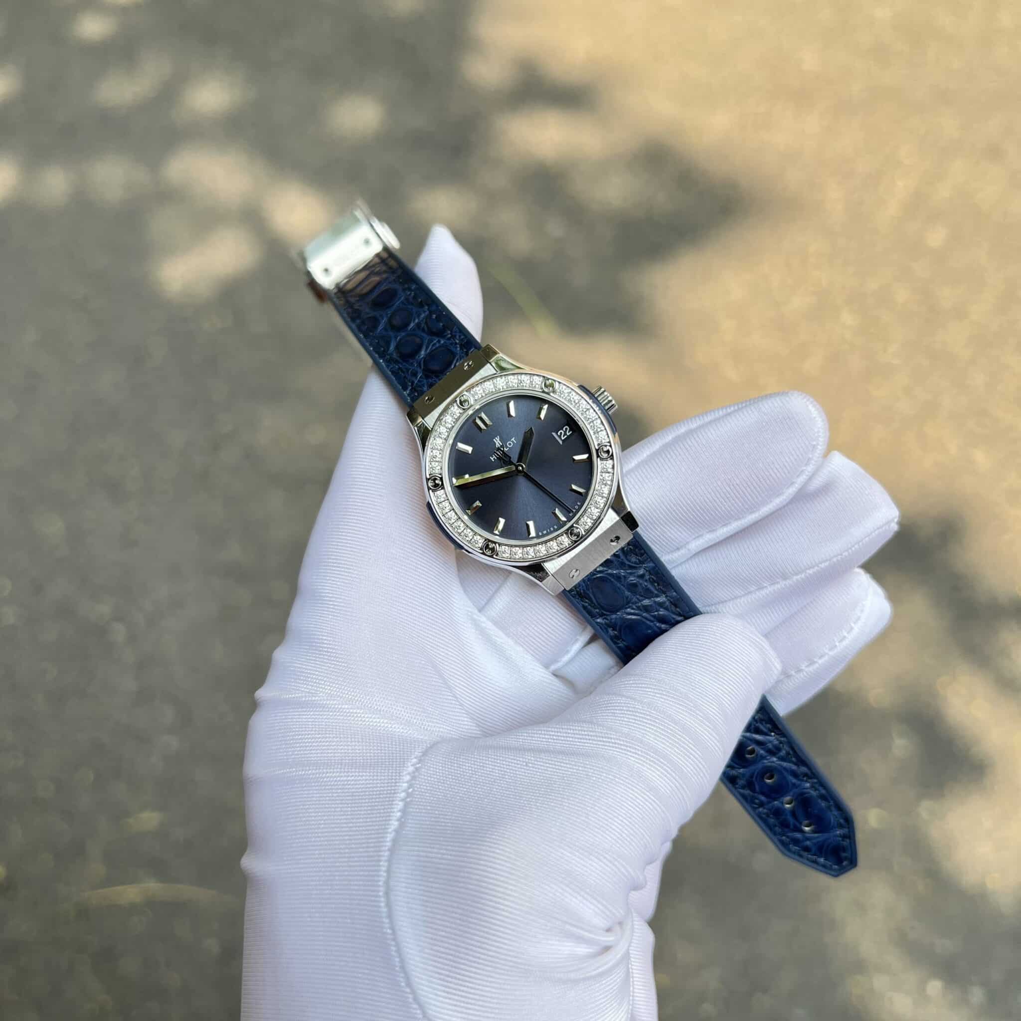 ĐỒNG HỒ HUBLOT CLASSIC FUSION MÀU XANH NAVY VIỀN MOISSANITE MÁY PIN 33MM