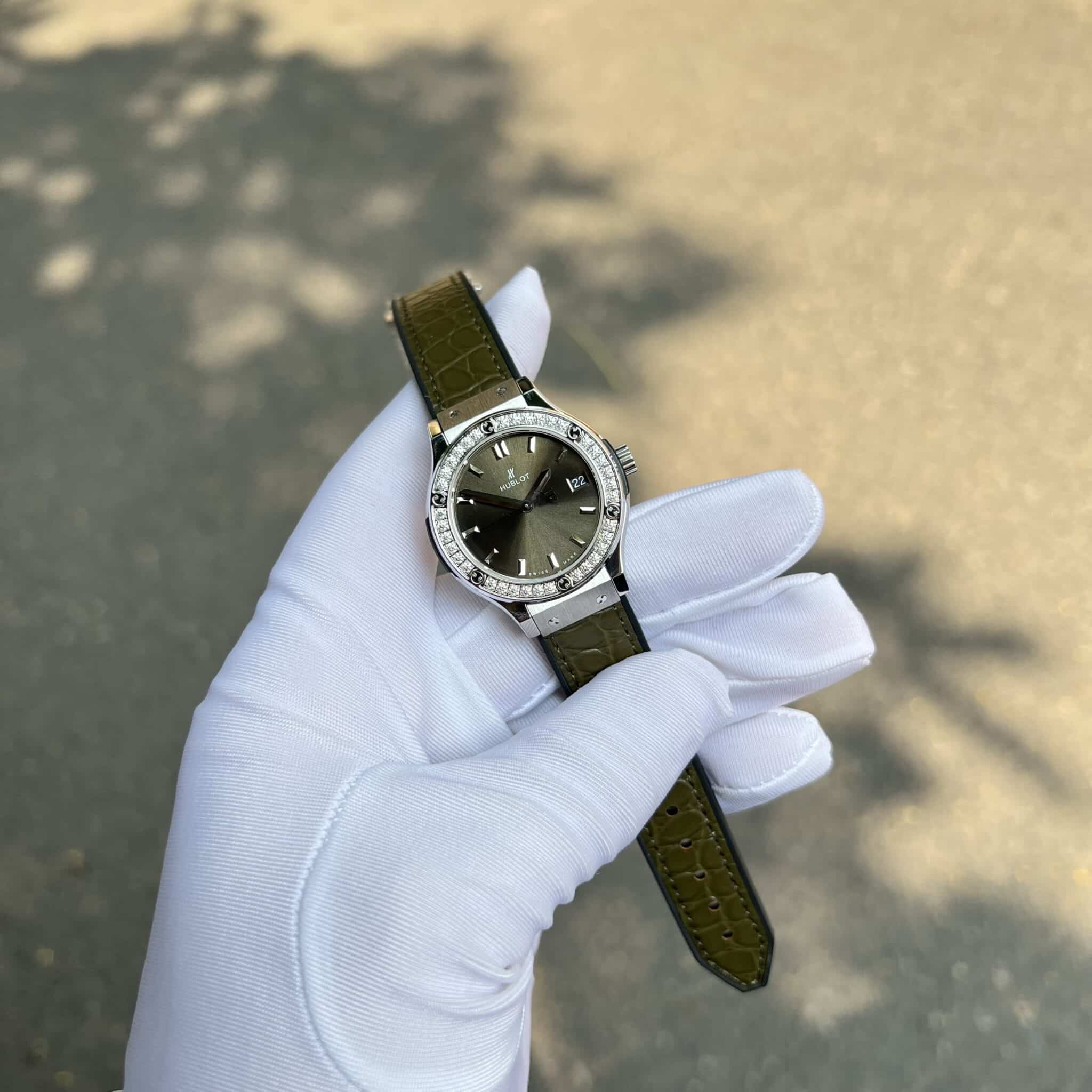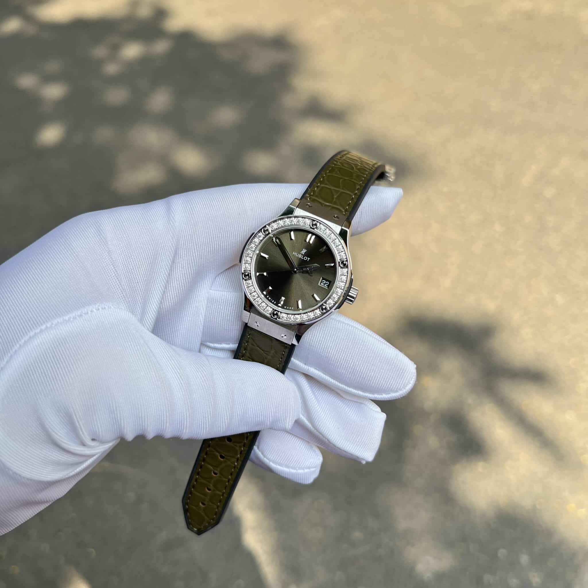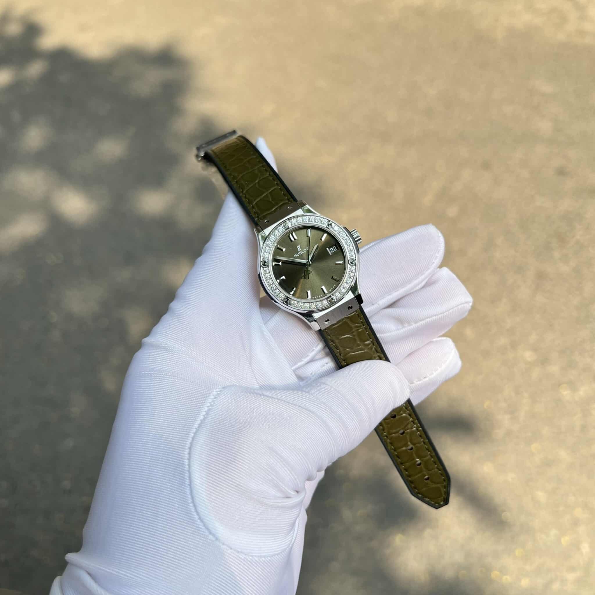 ĐỒNG HỒ HUBLOT CLASSIC FUSION MÀU XANH RÊU VIỀN MOISSANITE MÁY PIN 33MM