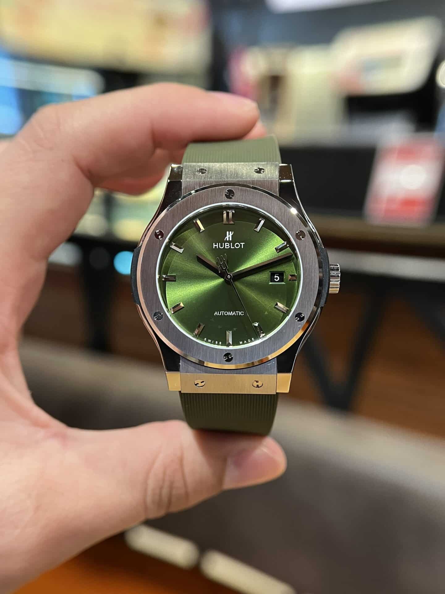 CHI TIẾT ĐỒNG HỒ HUBLOT CLASSIC FUSION NAM REPLICA 11 MÀU XANH LÁ CÂY 42MM TẠI THẾ GIỚI ĐỒNG HỒ ĐẸP