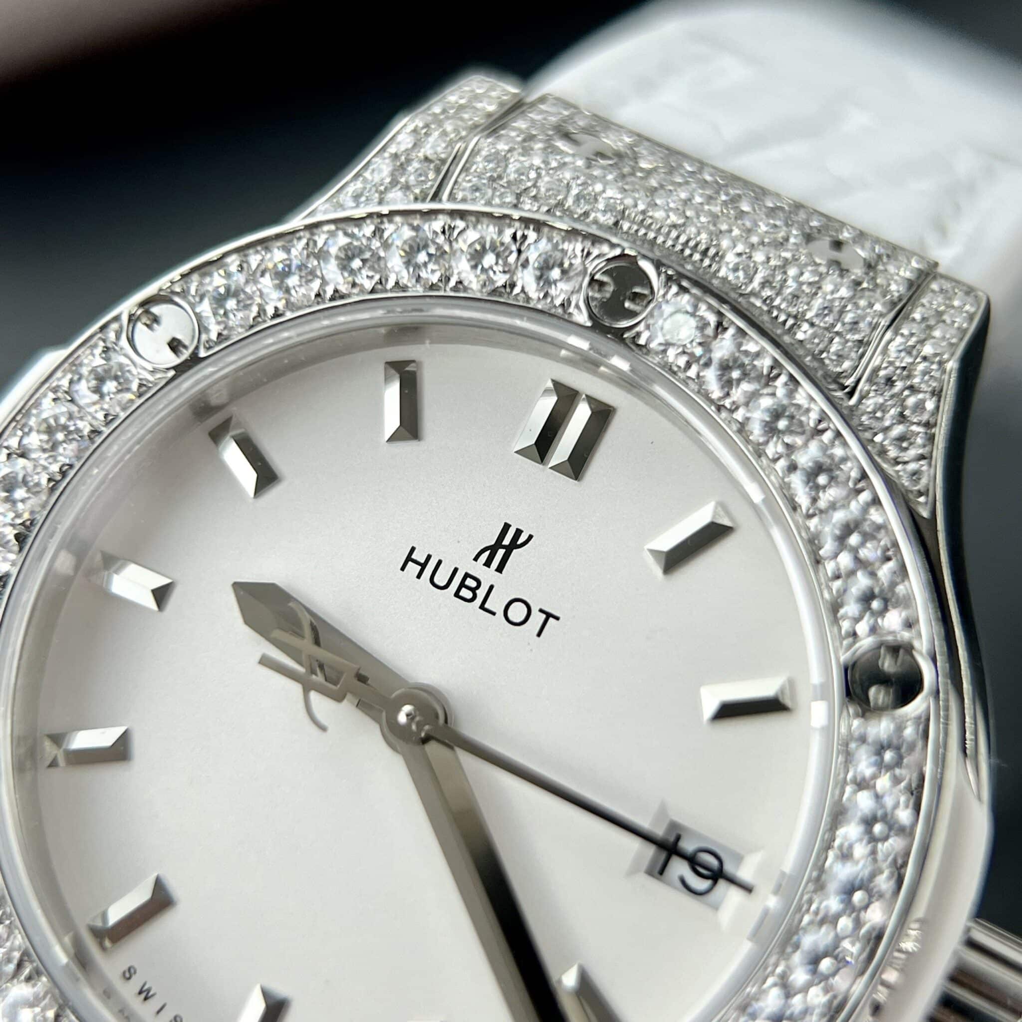 ĐỒNG HỒ HUBLOT CLASSIC FUSION NỮ VỎ ĐÍNH FULL MOISSANITE HONGKONG 33MM