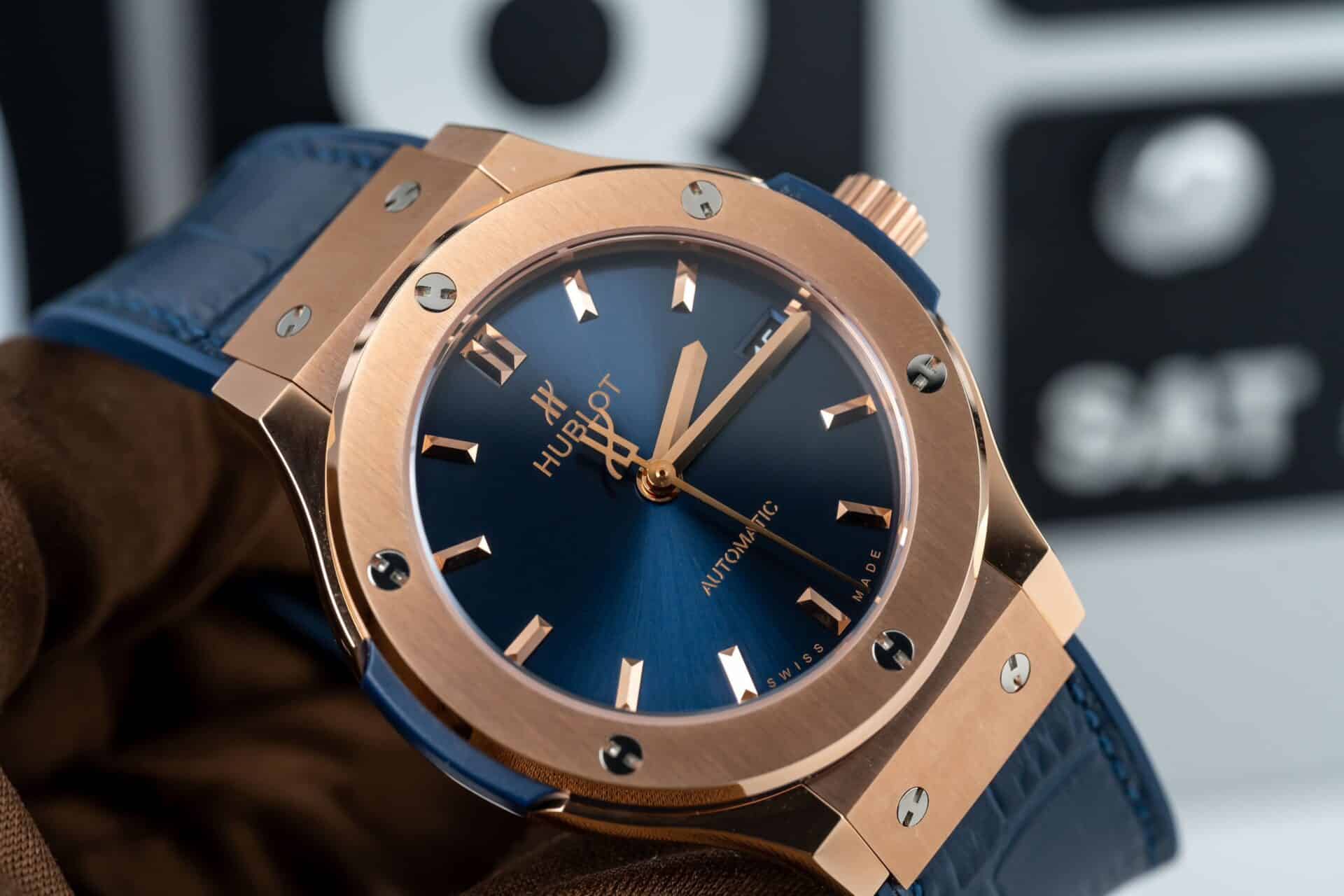 ĐỒNG HỒ HUBLOT CLASSIC FUSION REP 11 MẶT SỐ XANH LAM MẠ VÀNG 18K 38MM