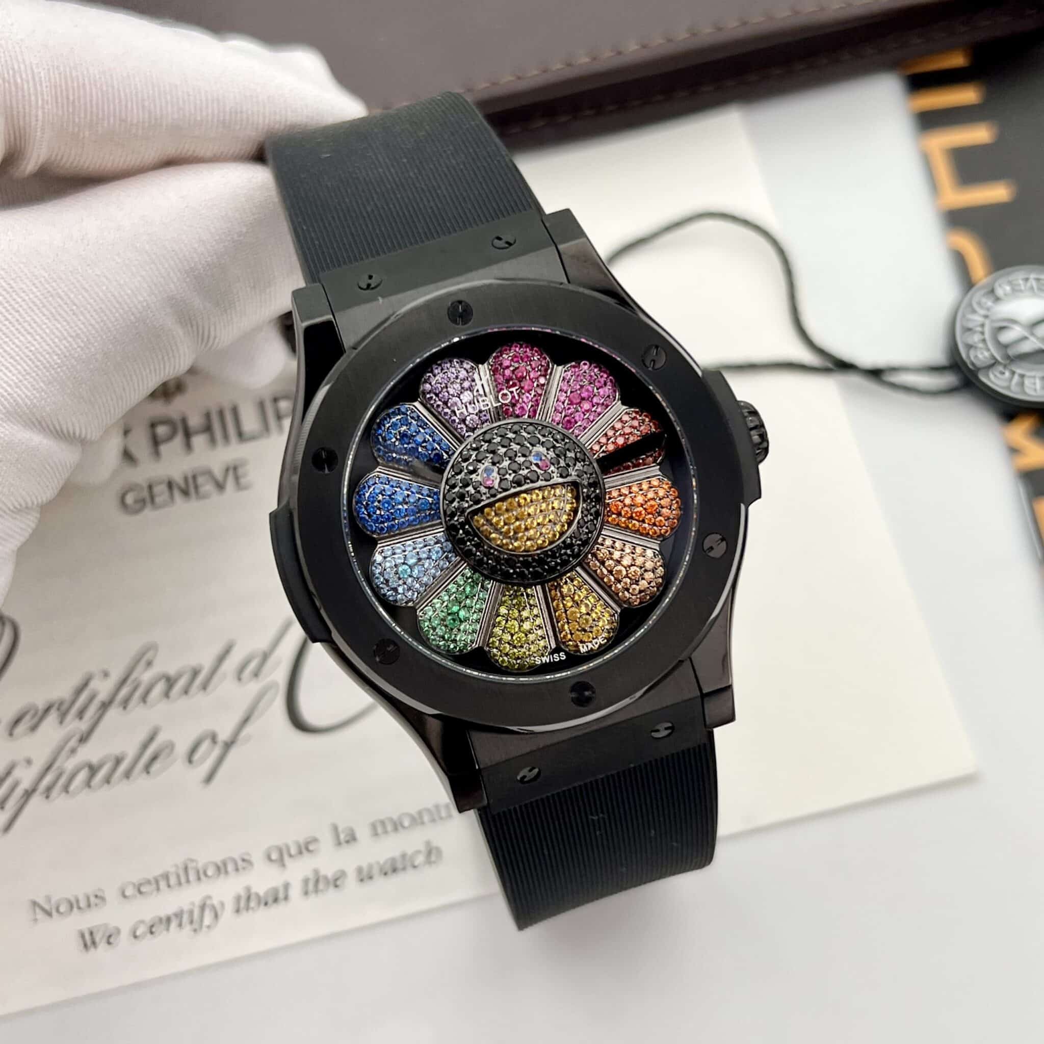 ĐỒNG HỒ HUBLOT CLASSIC FUSION TAKASHI MURAKAMI RAINBOW MÀU ĐEN REPLICA 45MM
