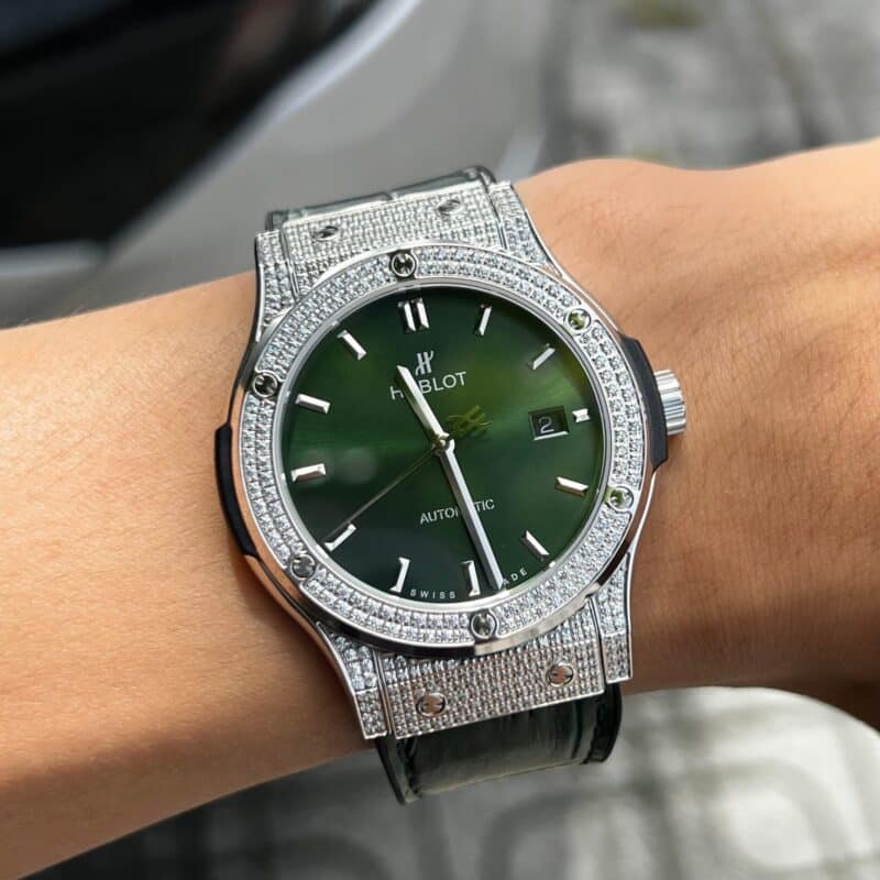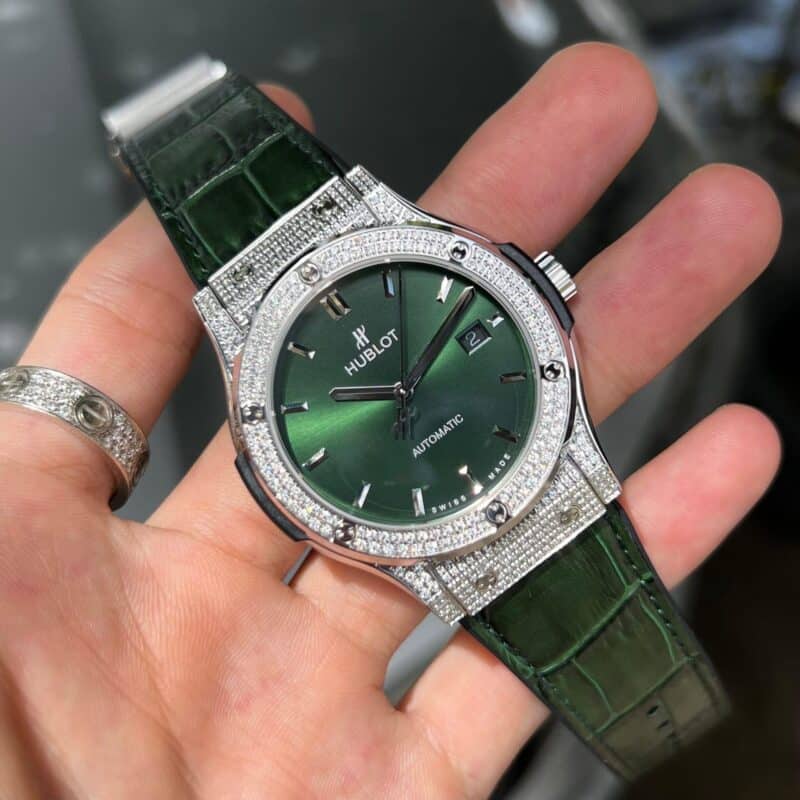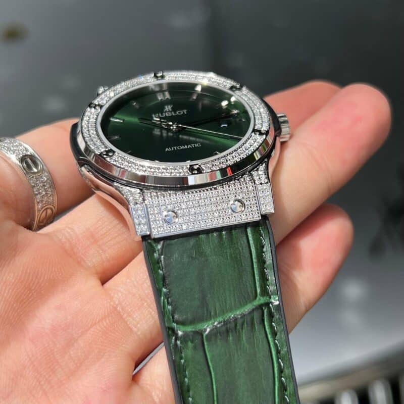 ĐỒNG HỒ HUBLOT REPLICA 11 NAM FULL DIAMOND GREEN DIAL HB FACTORY 38/42MM