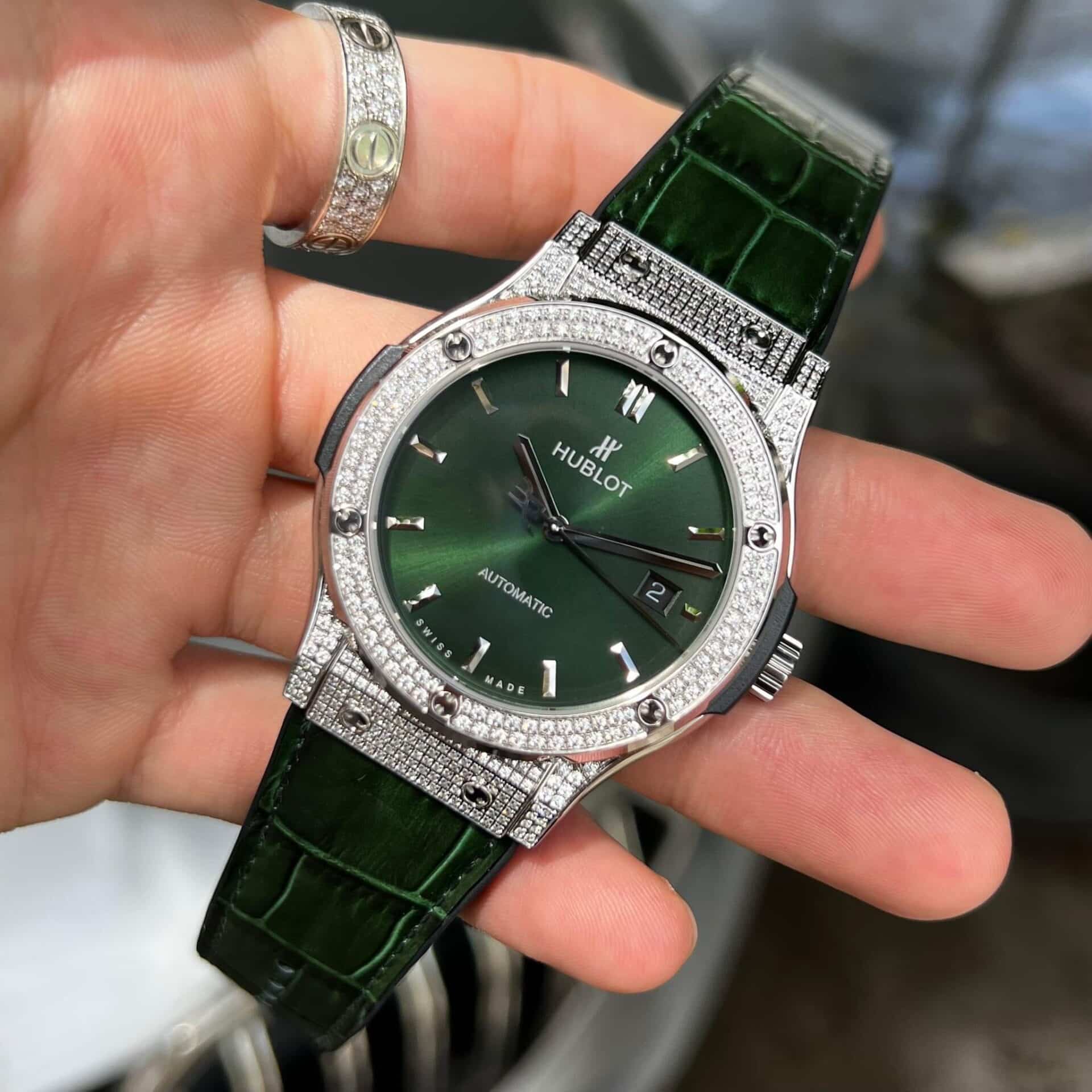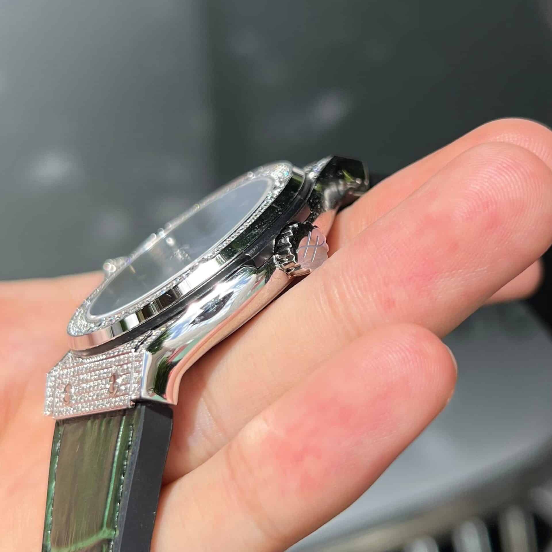 ĐỒNG HỒ HUBLOT REPLICA 11 NAM FULL DIAMOND GREEN DIAL HB FACTORY 38/42MM