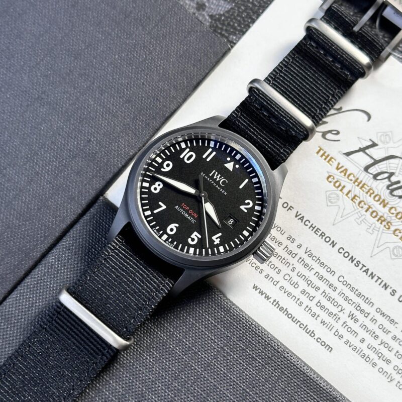 PyGlow giới thiệu chiếc đồng hô IWC Pilot Top Gun IW326901 vỏ gốm đen, mặt số đen 41mm, phiên bản replica cao nhất của nhà máy V7.