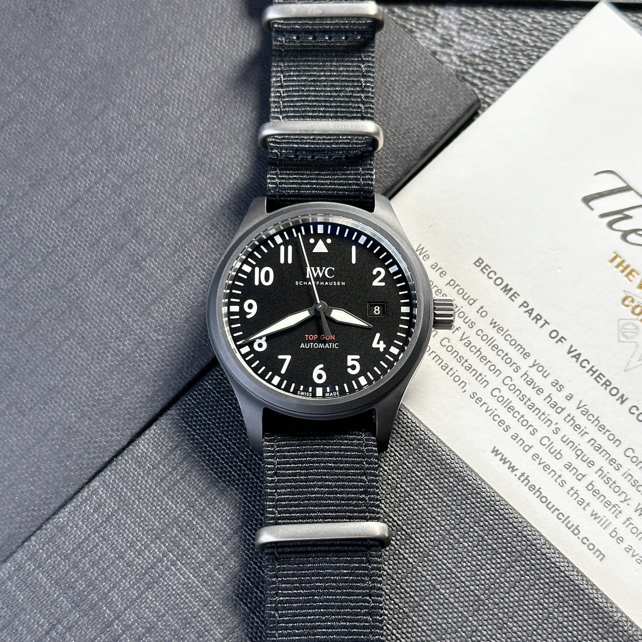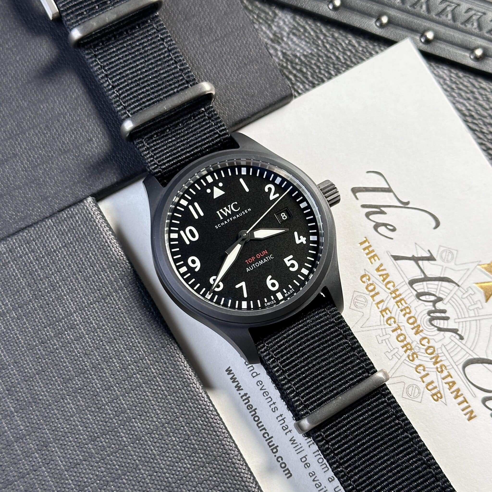 PyGlow giới thiệu chiếc đồng hô IWC Pilot Top Gun IW326901 vỏ gốm đen, mặt số đen 41mm, phiên bản replica cao nhất của nhà máy V7.