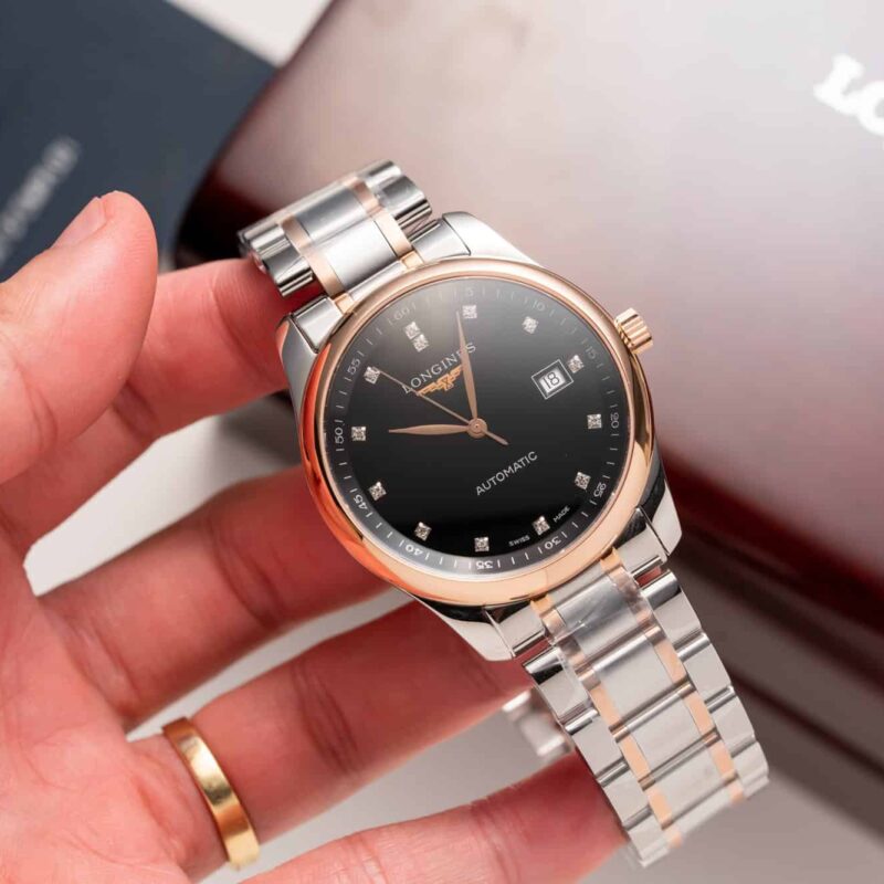 ẢNH CHI TIẾT VỀ ĐỒNG HỒ LONGINES MASTER COLLECTION DEMI GOLD MẶT ĐEN CỌC SỐ ĐÍNH ĐÁ REP 1:1 38.5MM TẠI THẾ GIỚI ĐỒNG HỒ ĐẸP