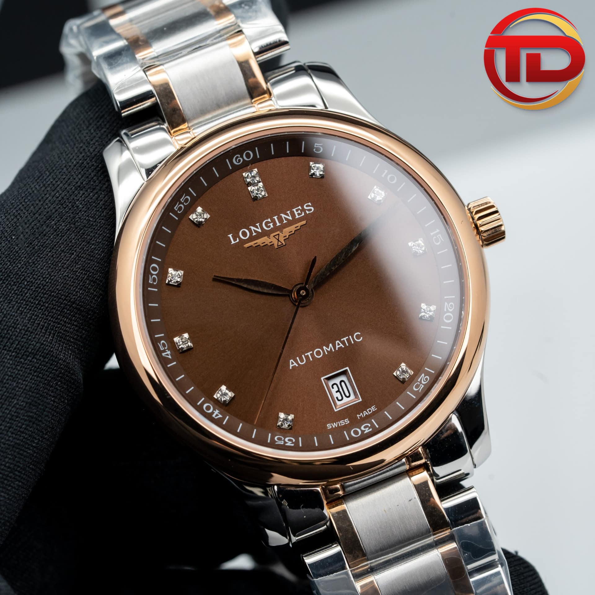 ĐỒNG HỒ LONGINES MASTER COLLECTION REP 11 MẶT SOCOLA CỌC SỐ ĐÍNH ĐÁ 40MM