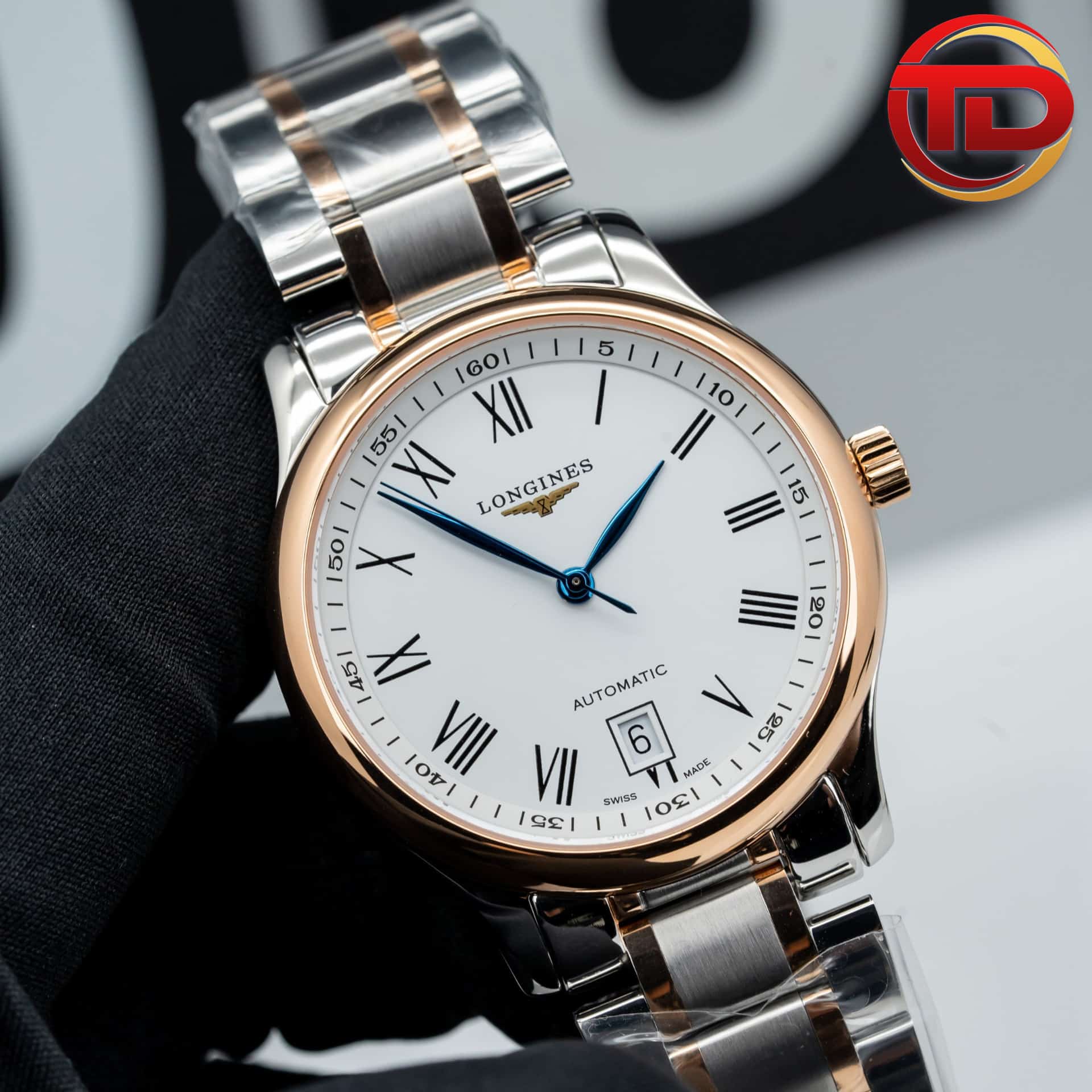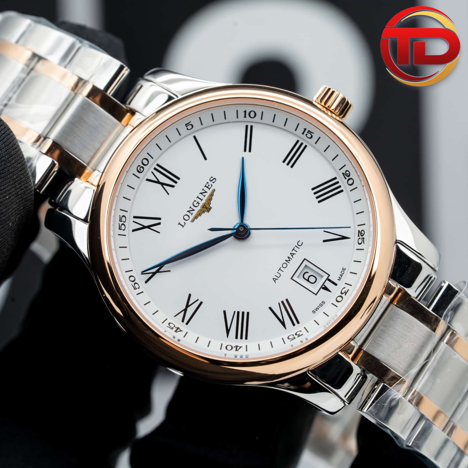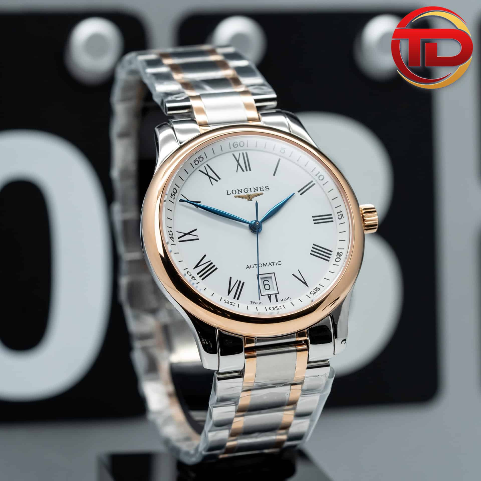 ĐỒNG HỒ LONGINES MASTER COLLECTION REPLICA MẶT TRẮNG VIỀN VÀNG HỒNG 40MM