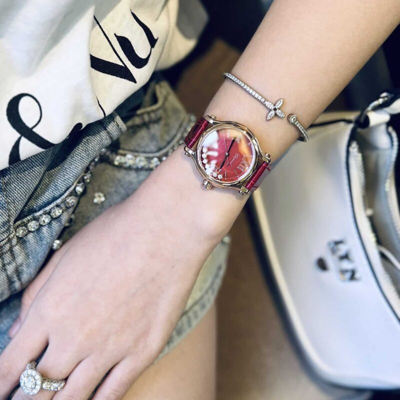ĐỒNG HỒ NỮ CHOPARD HAPPY SPORT MÀU ĐỎ REPLICA 33MM