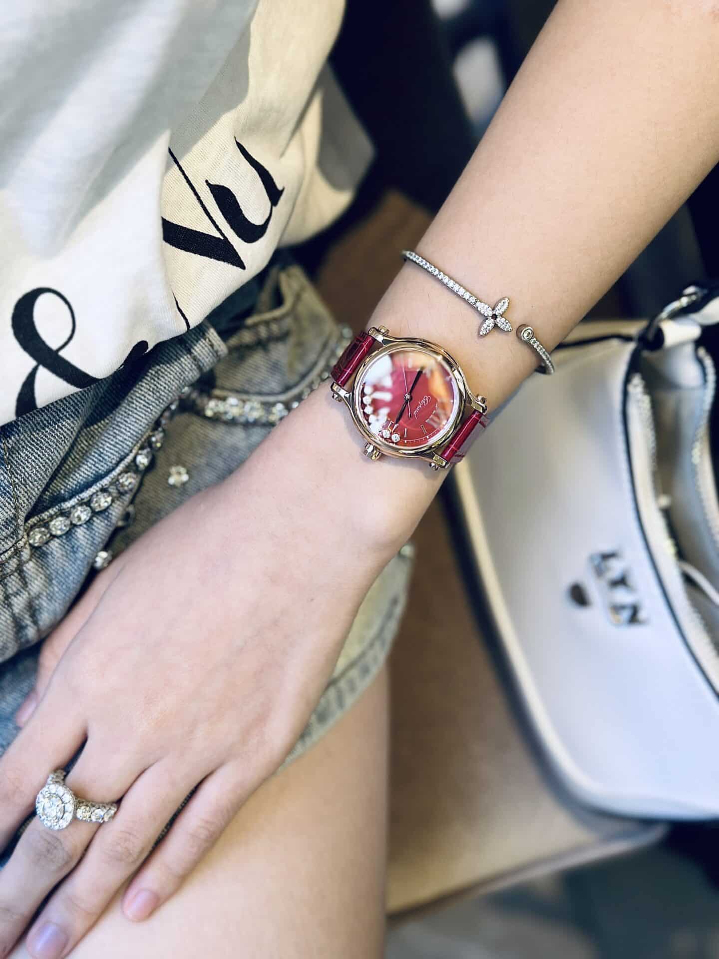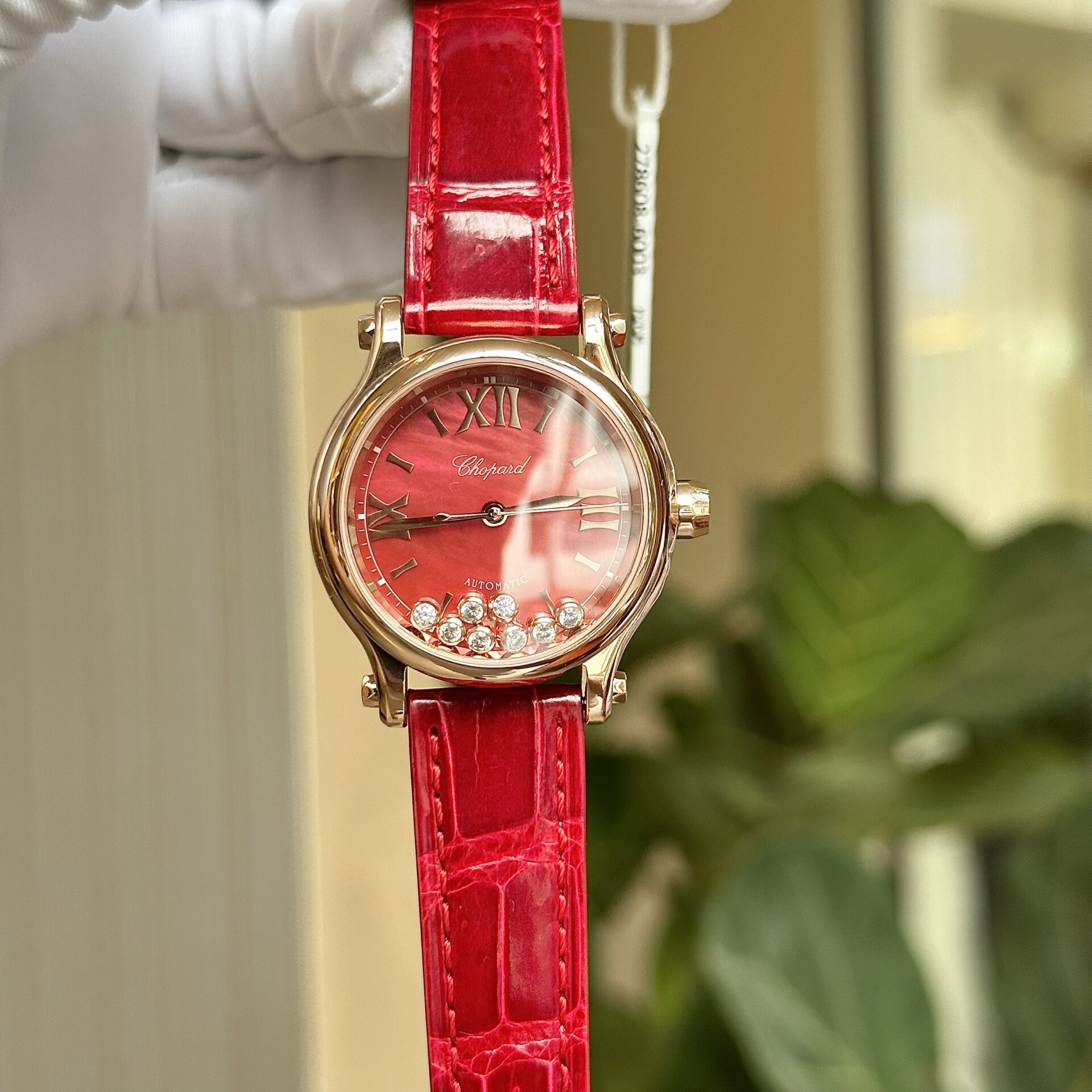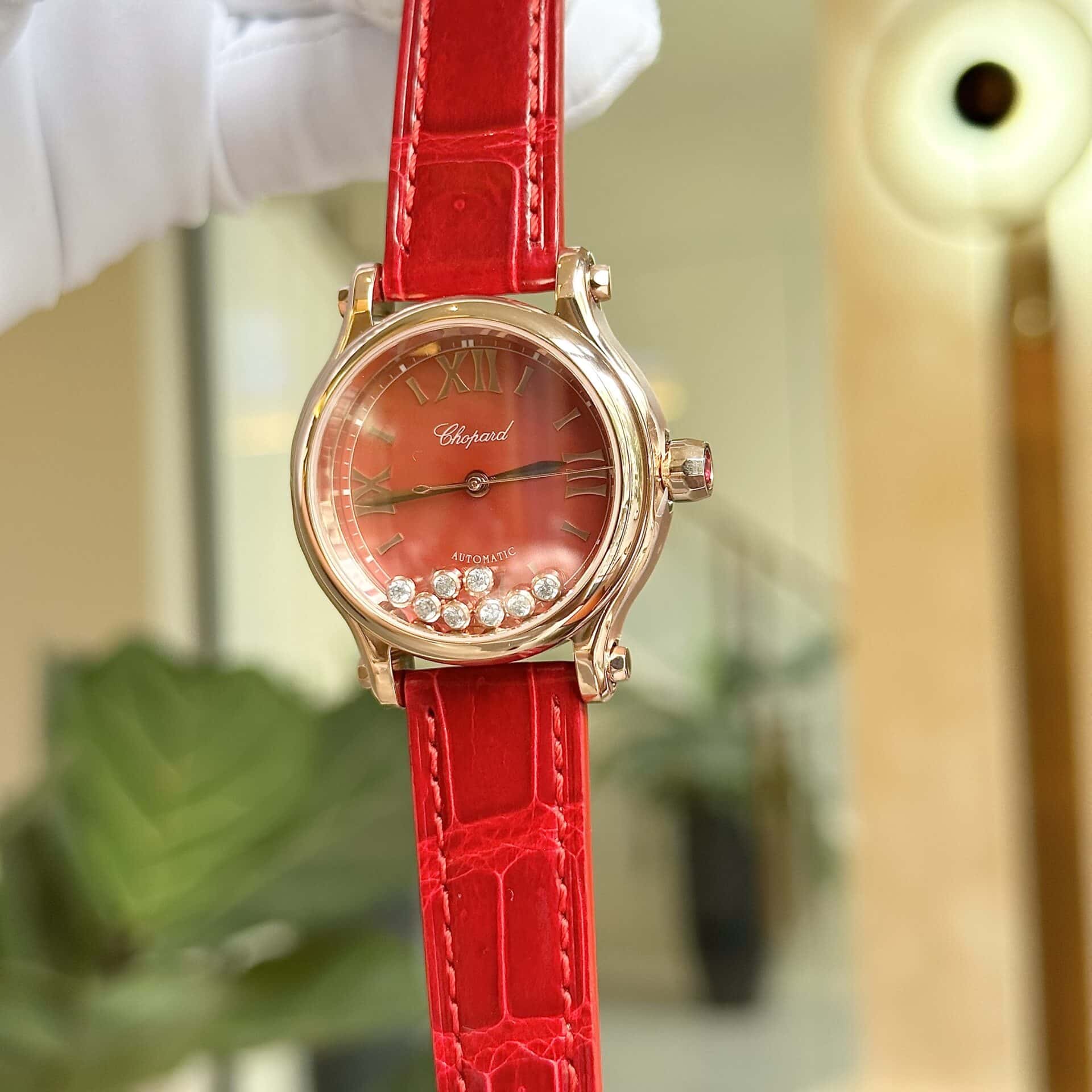 ĐỒNG HỒ NỮ CHOPARD HAPPY SPORT MÀU ĐỎ REPLICA 33MM