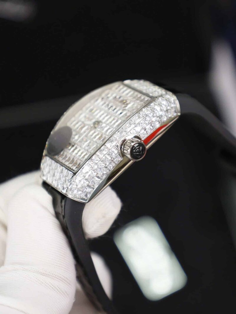 ĐỒNG HỒ NỮ FRANCK MULLER V32 MÀU ĐEN ĐÍNH FULL ĐÁ CZ BAGUETTE MÁY THỤY SĨ ABF 36MM
