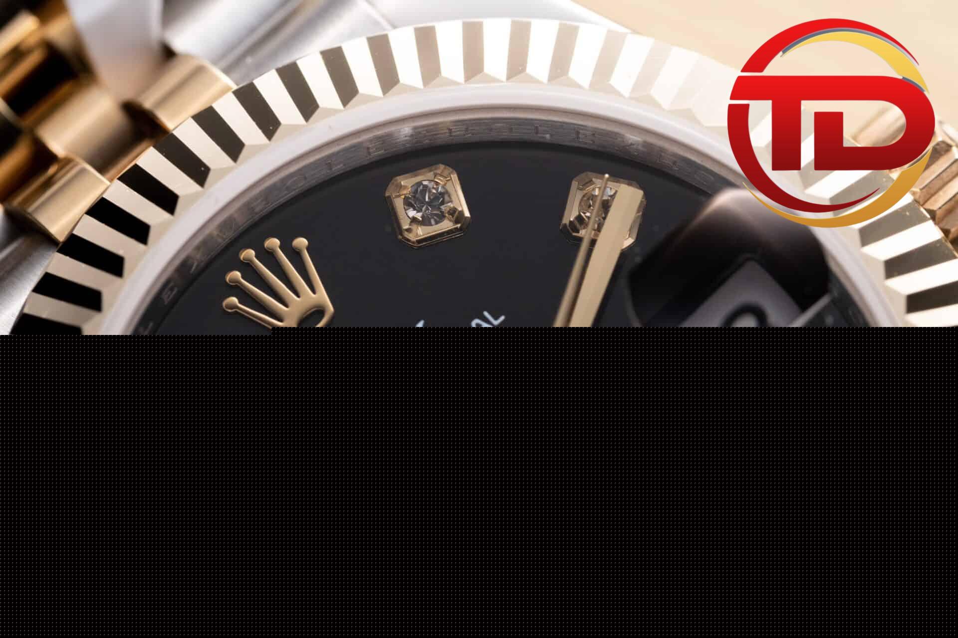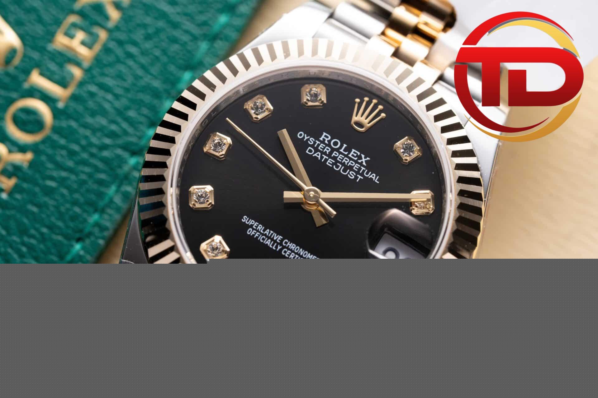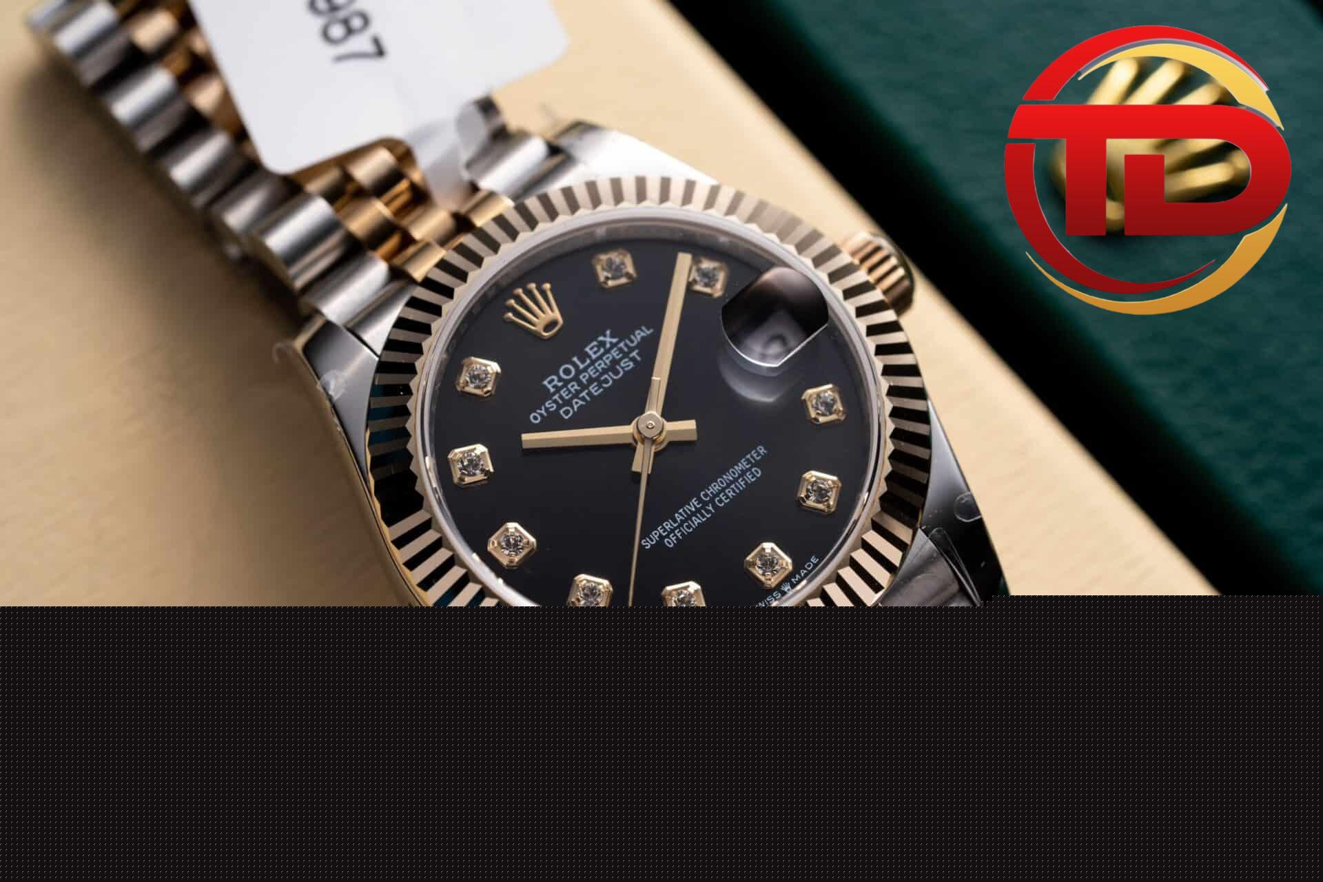 ĐỒNG HỒ NỮ ROLEX DATEJUST MẶT ĐEN CỌC SỐ ĐÍNH ĐÁ BỌC VÀNG GM FACTORY 31MM