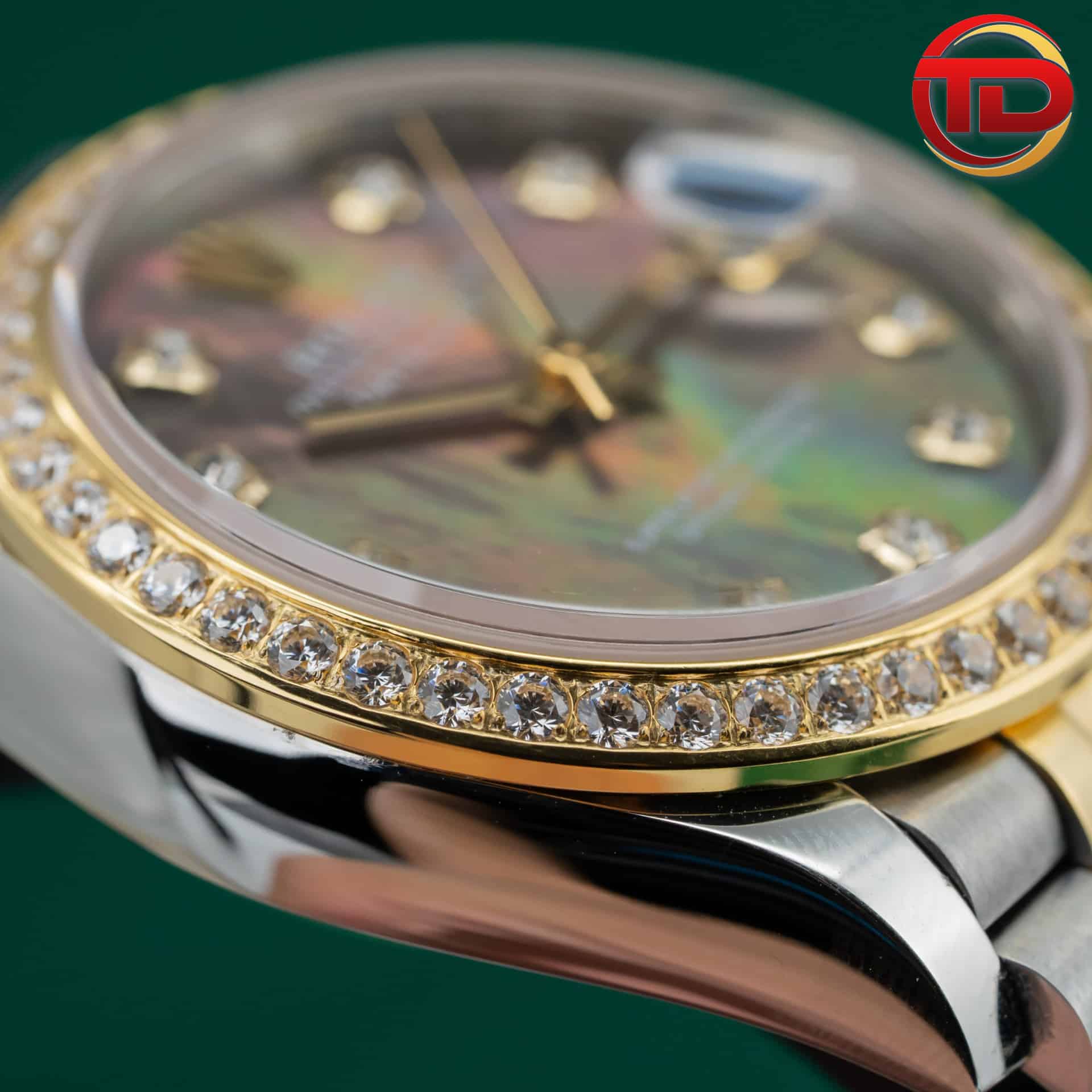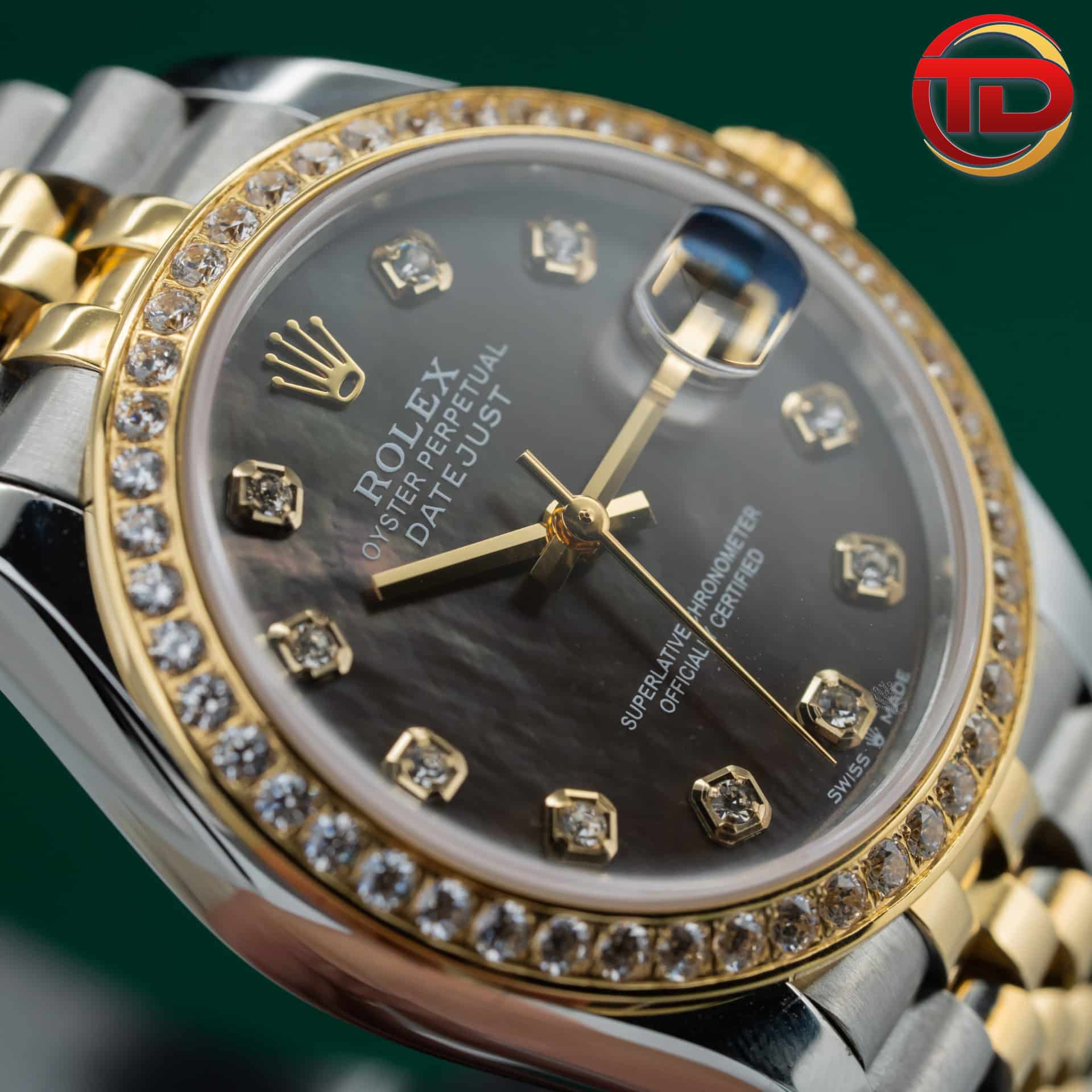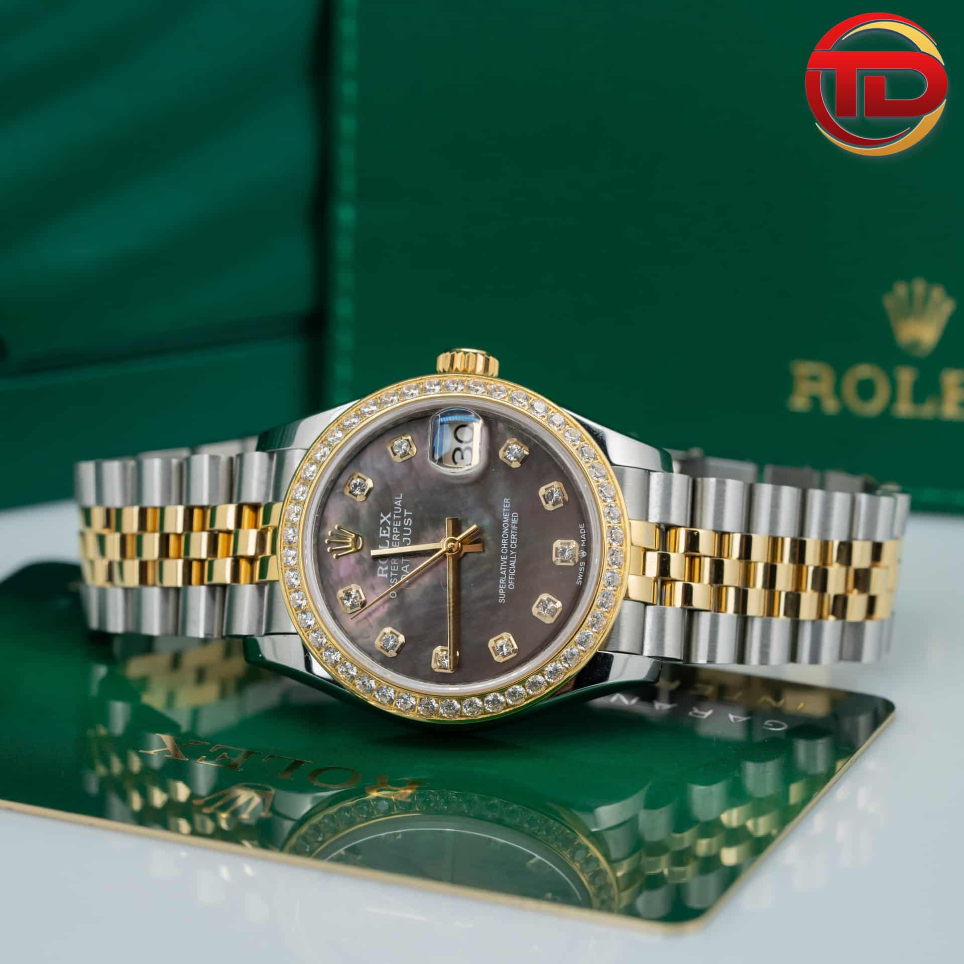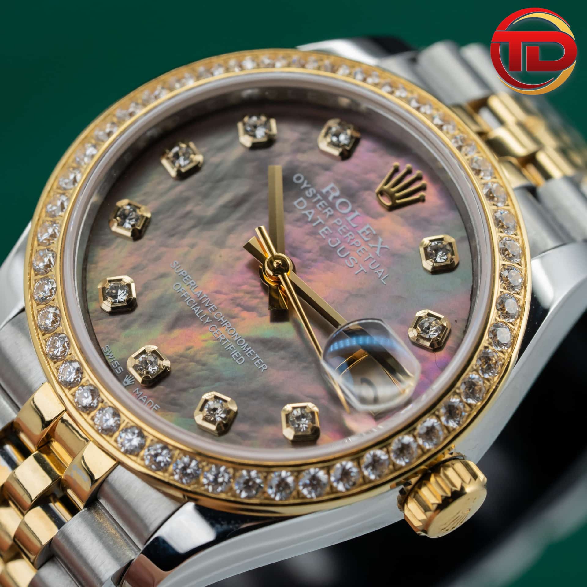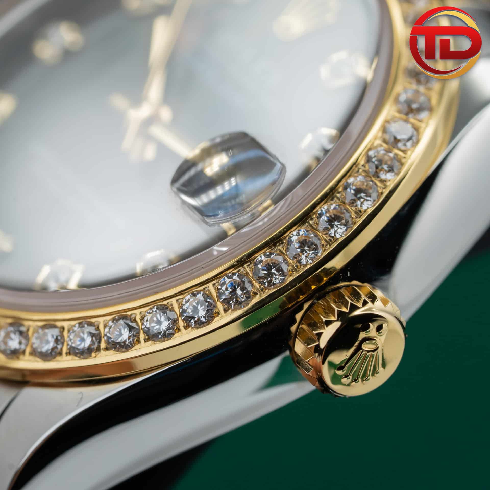 ĐỒNG HỒ NỮ ROLEX DATEJUST REPLICA EW FACTORY MẠ VÀNG MẶT THIÊN THẠCH NIỀNG ĐÁ 31MM