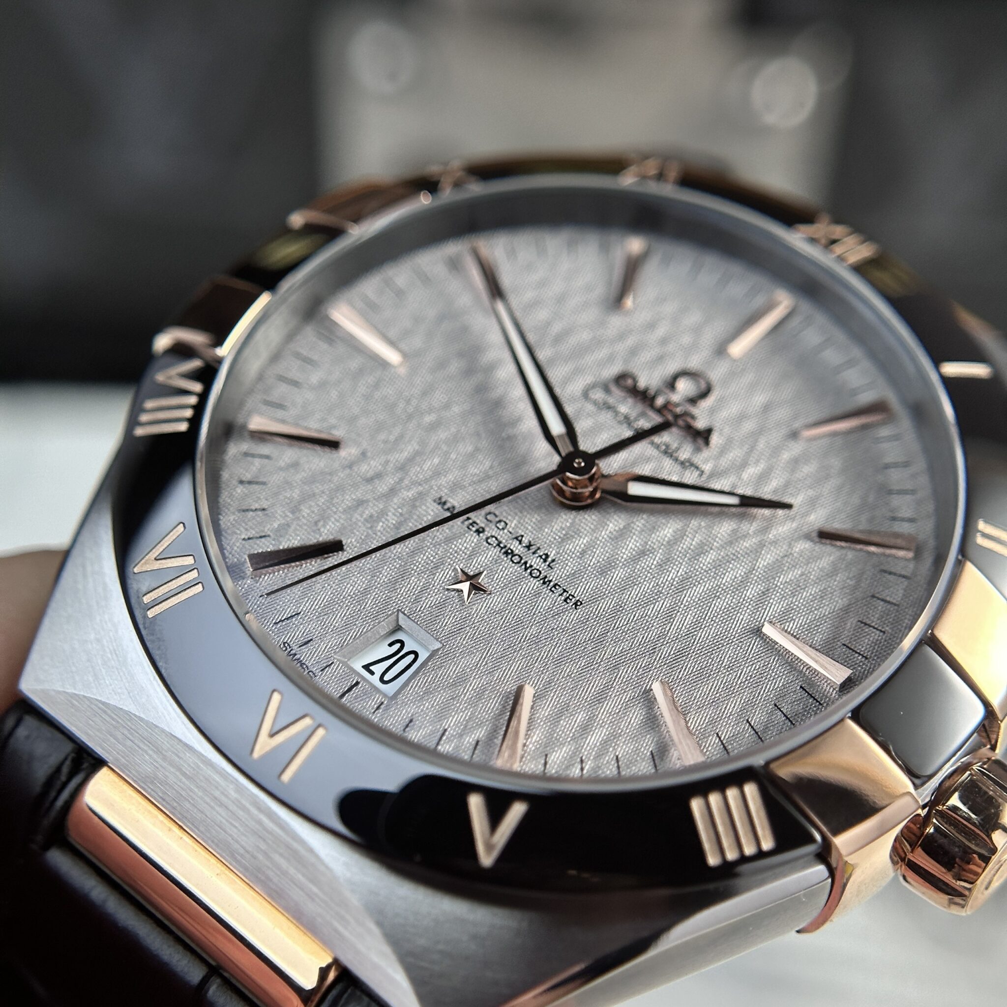 ĐỒNG HỒ OMEGA CONSTELLATION DEMI VÀNG HỒNG MẶT TRẮNG REP 11 VS 41MM