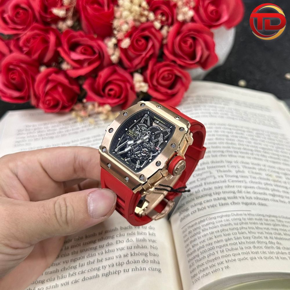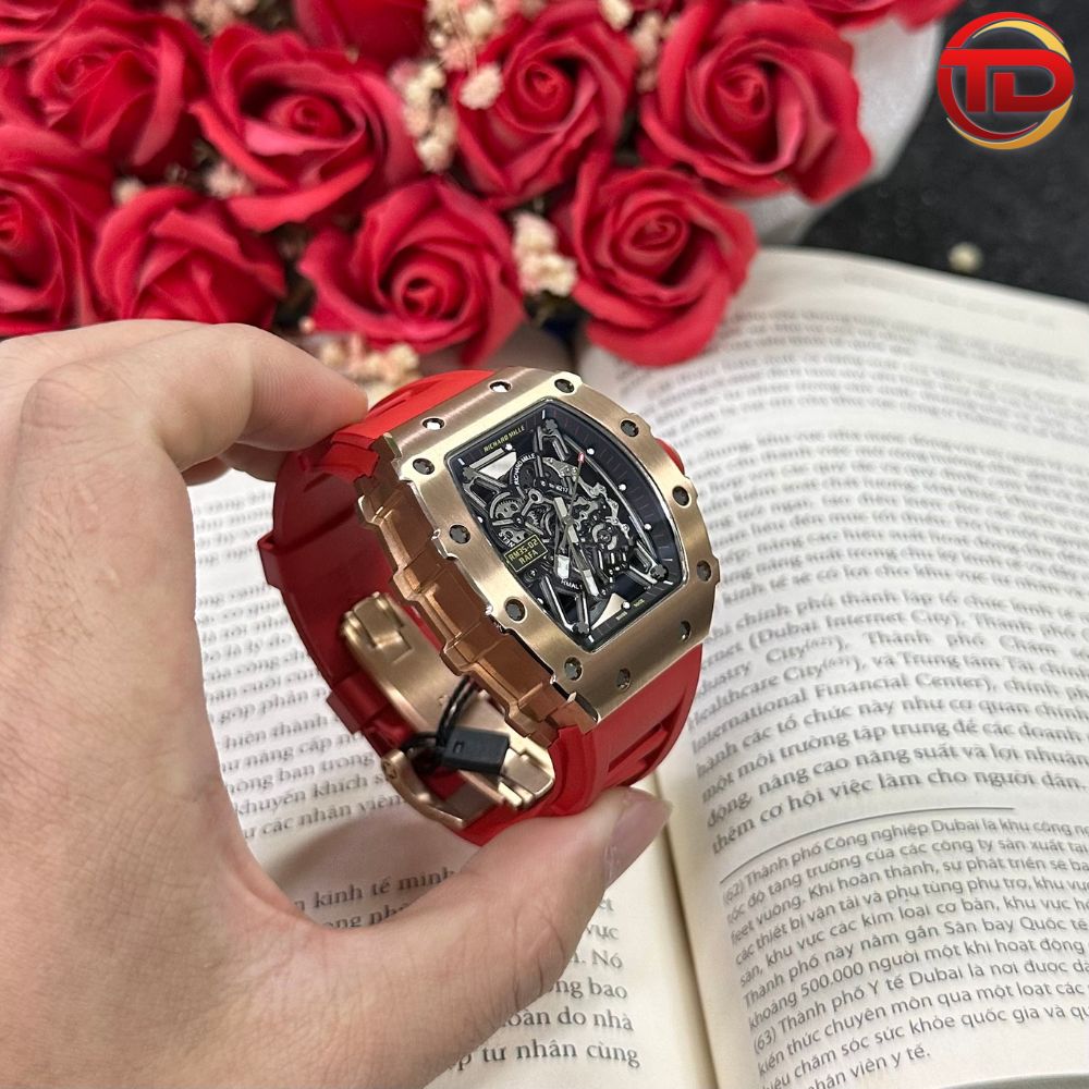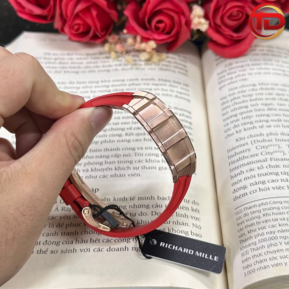 ĐỒNG HỒ RICHARD MILLE REP 11 RM 35-02 ROSE GOLD DÂY CAO SU ĐỎ