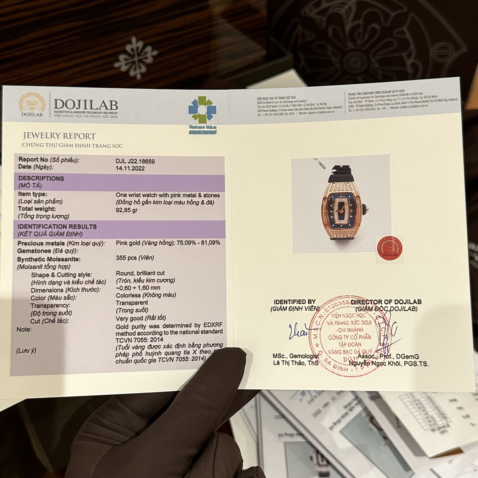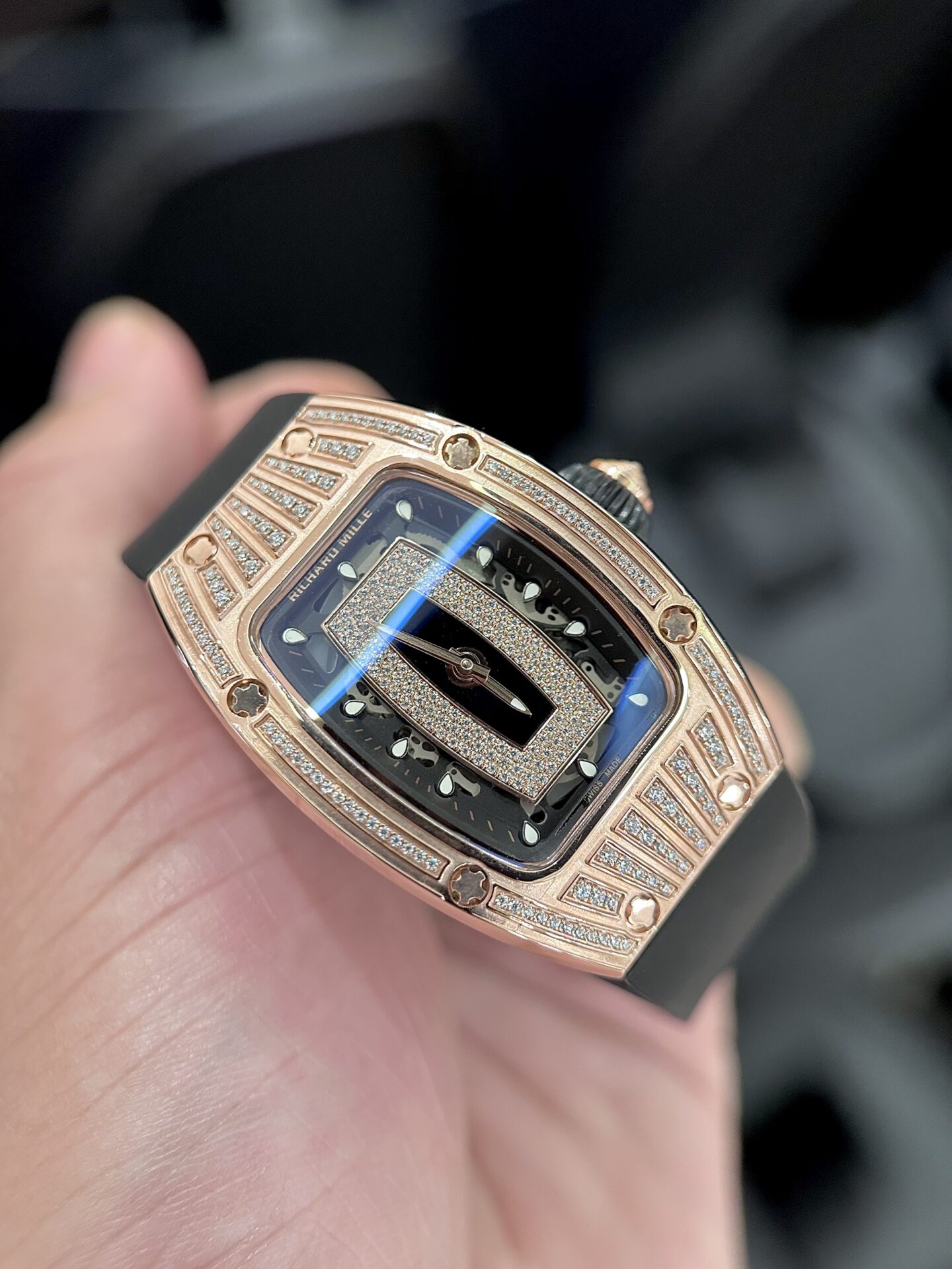 ĐỒNG HỒ RICHARD MILLE RM 007 BỌC VÀNG ĐỘ KIM CƯƠNG MOISSANITE 32MM