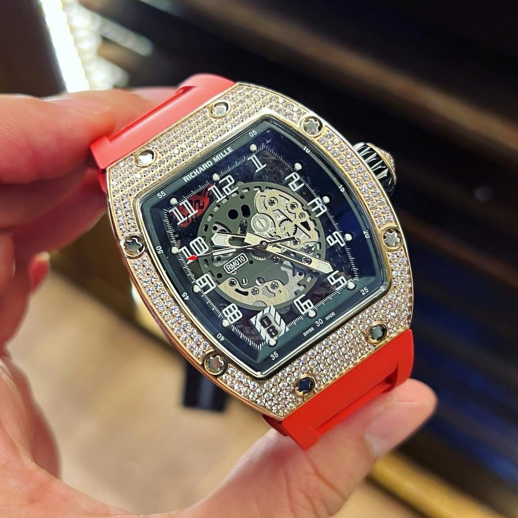 ĐỒNG HỒ RICHARD MILLE RM010 FAKE SIÊU CẤP VÀNG HỒNG ĐÍNH ĐÁ 39MM