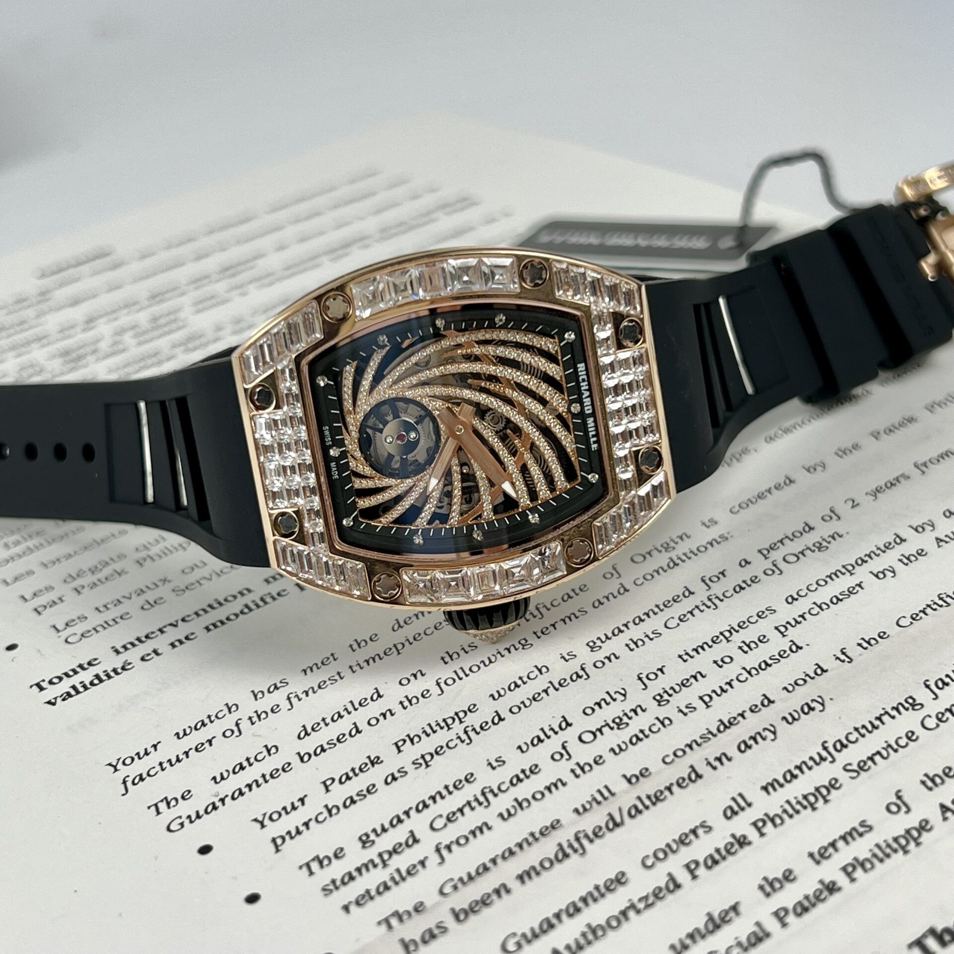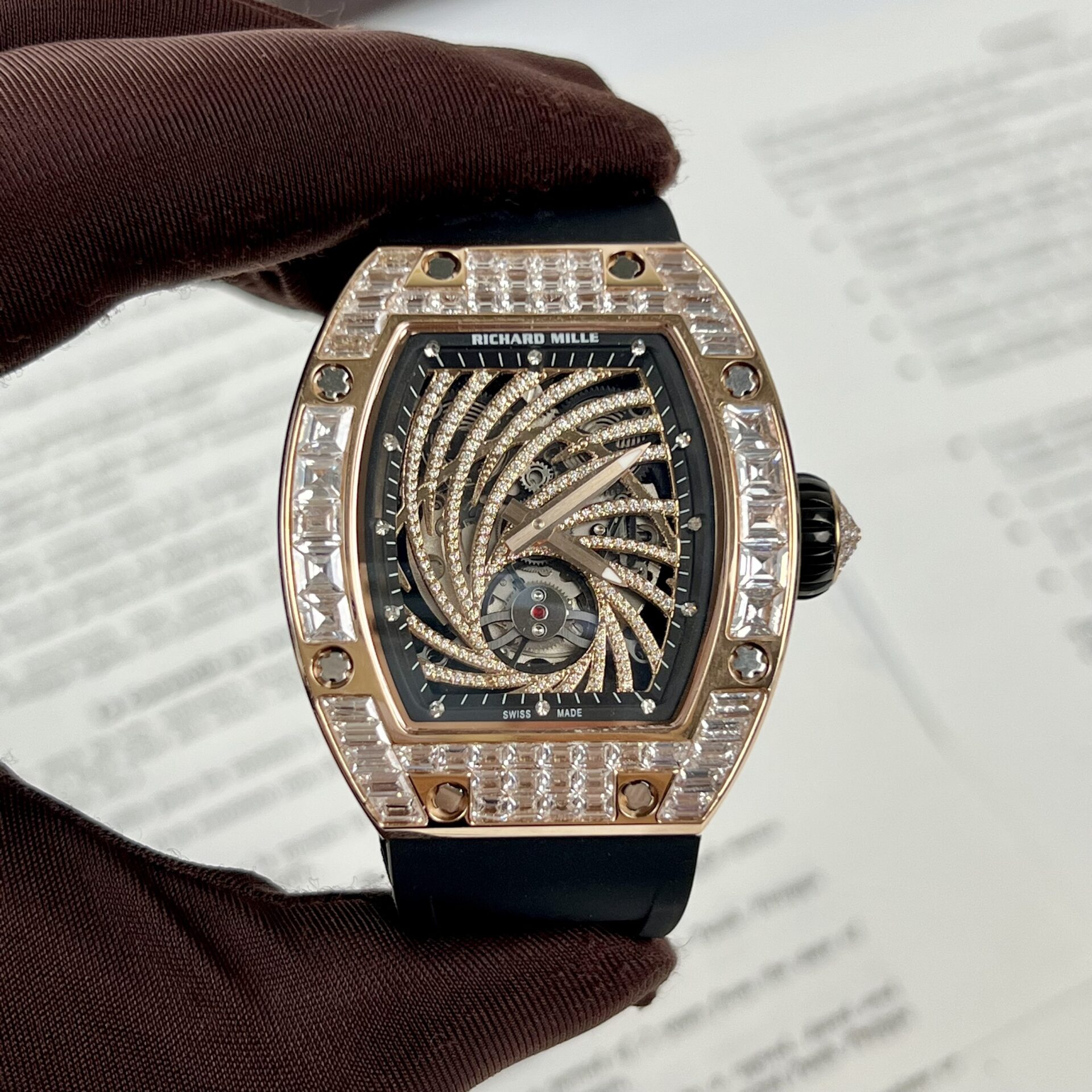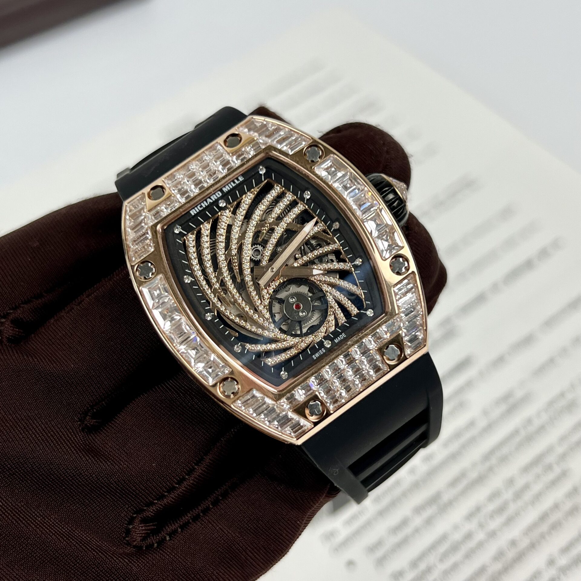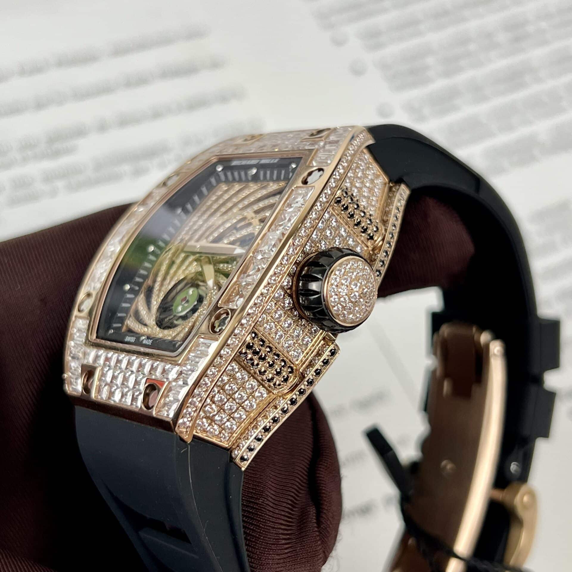 ĐỒNG HỒ RICHARD MILLE RM51-02 ROSEGOLD ĐÍNH ĐÁ BAGUETTE REPLICA 11 44MM