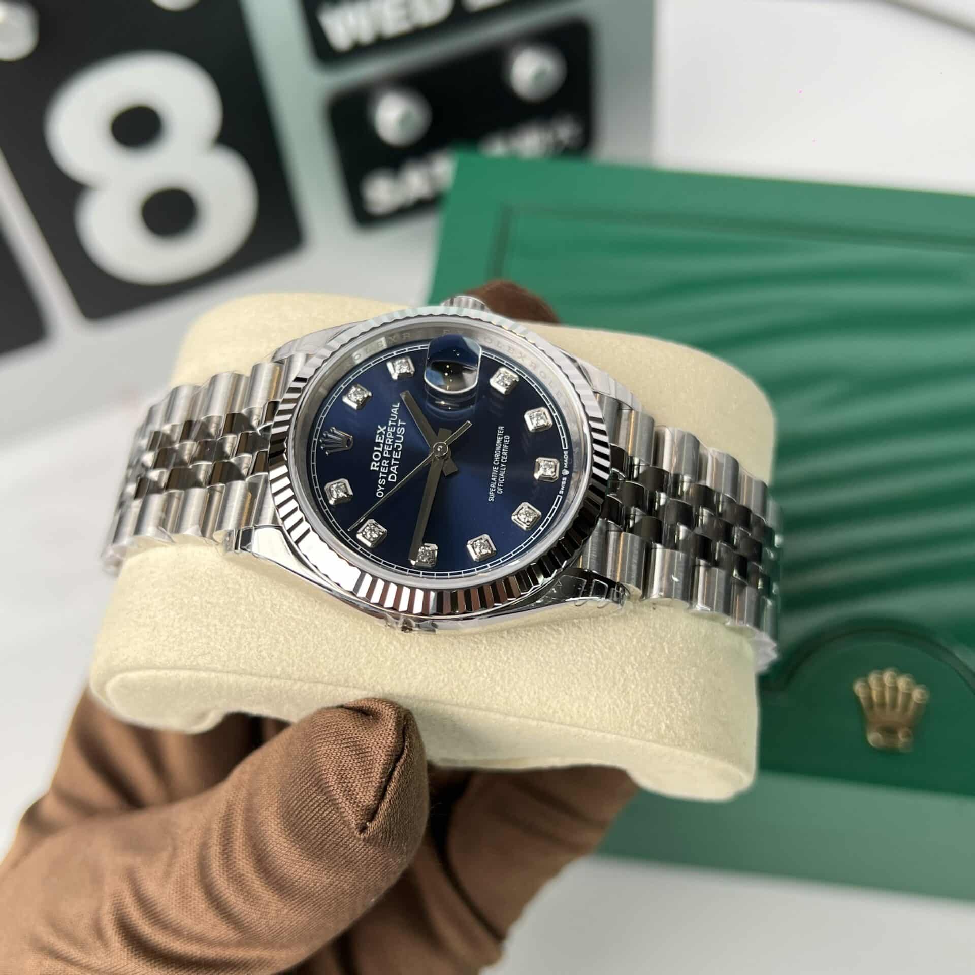 ĐỒNG HỒ ROLEX DATEJUST 126234 REP 11 CAO CẤP NHẤT MẶT SỐ XANH 36MM