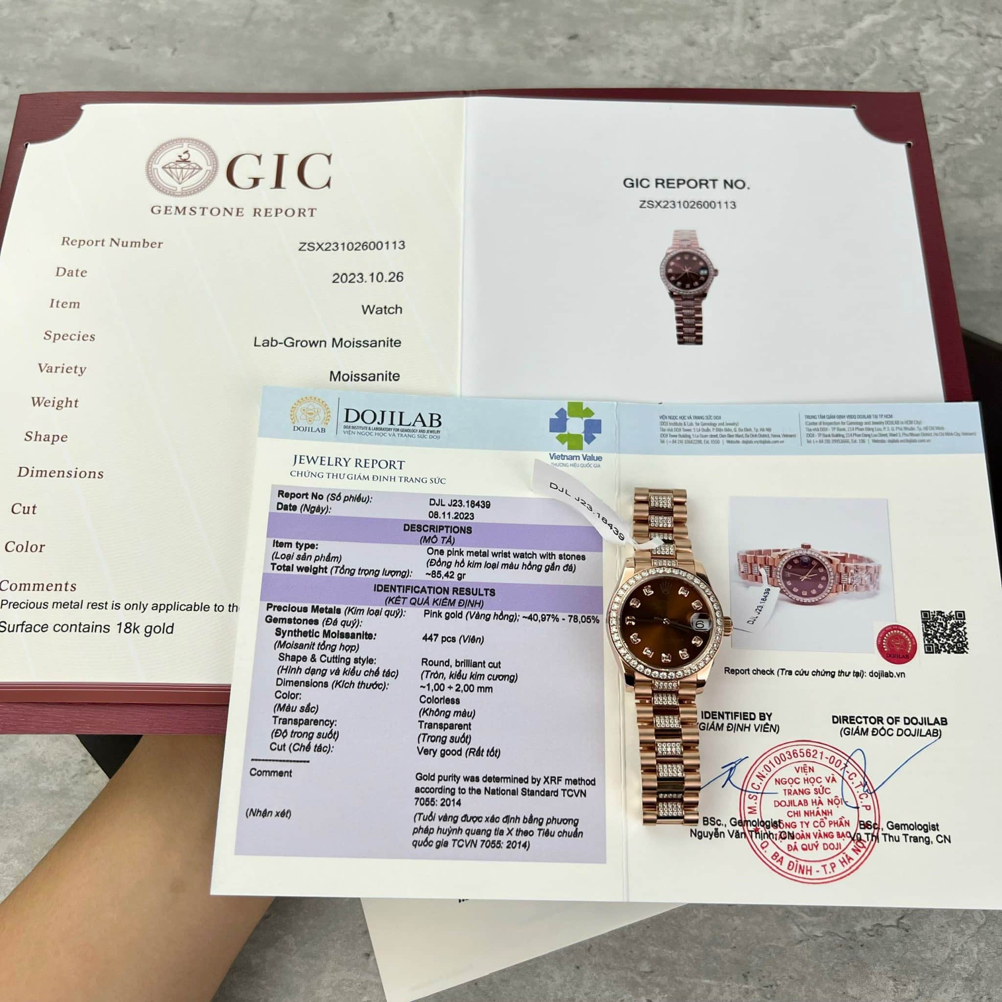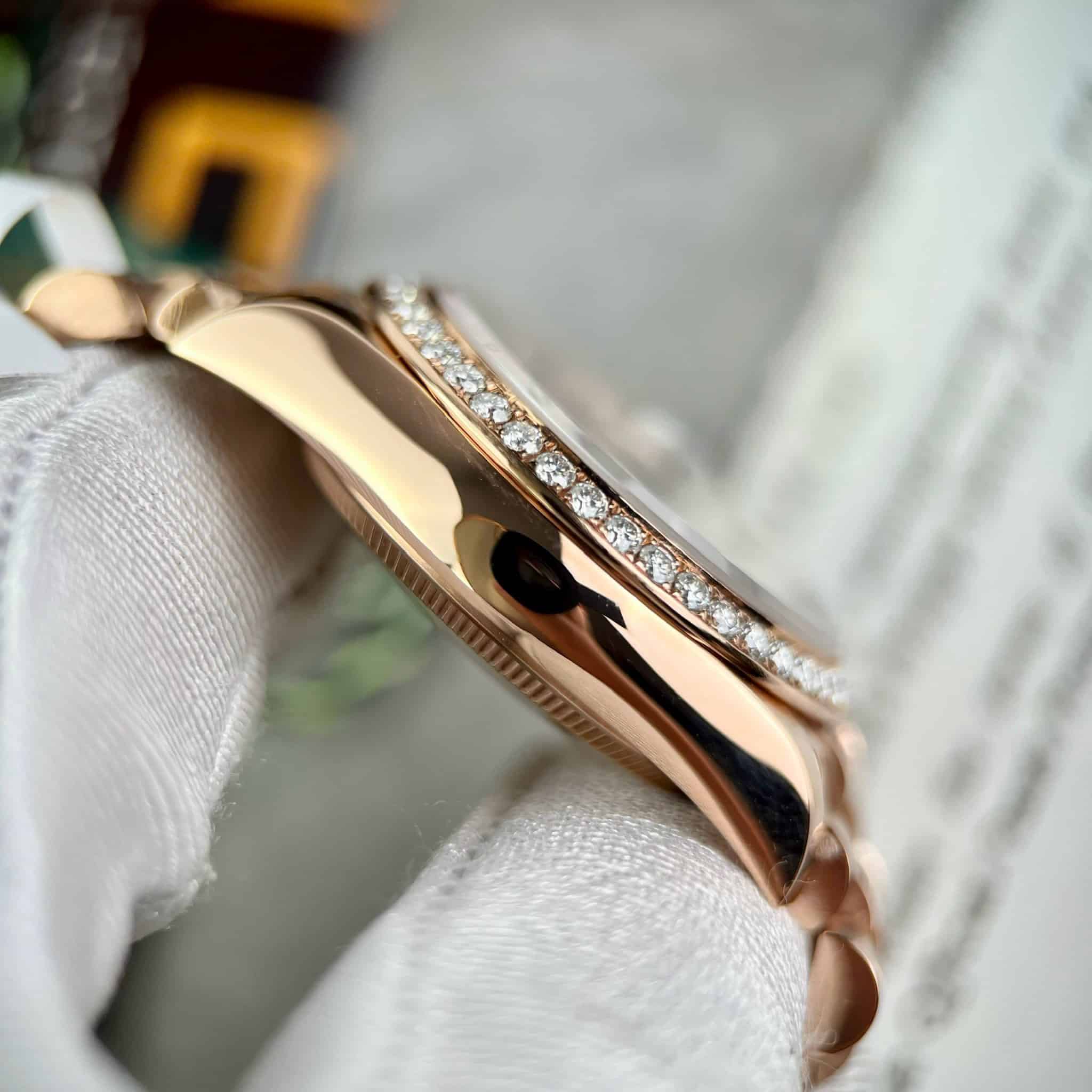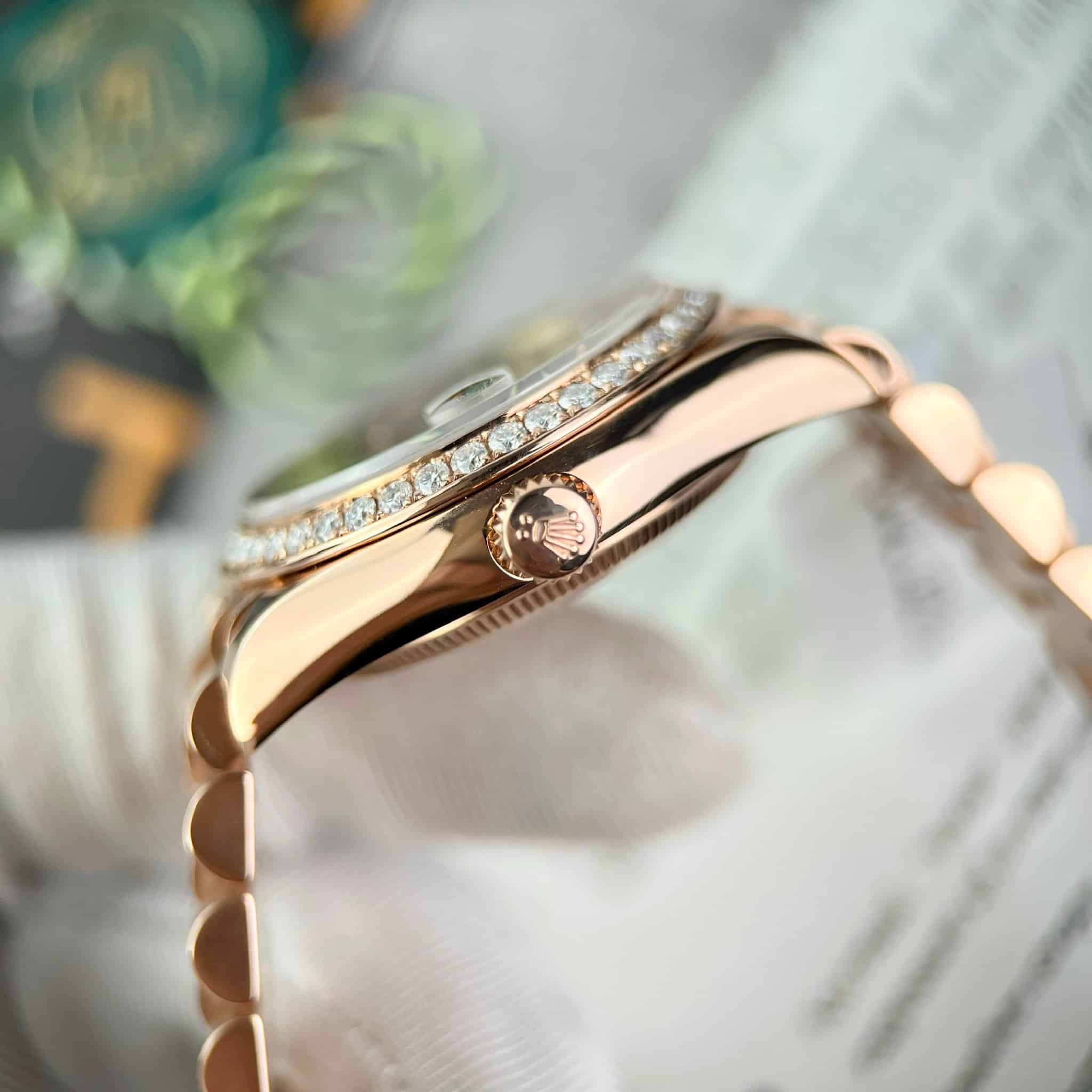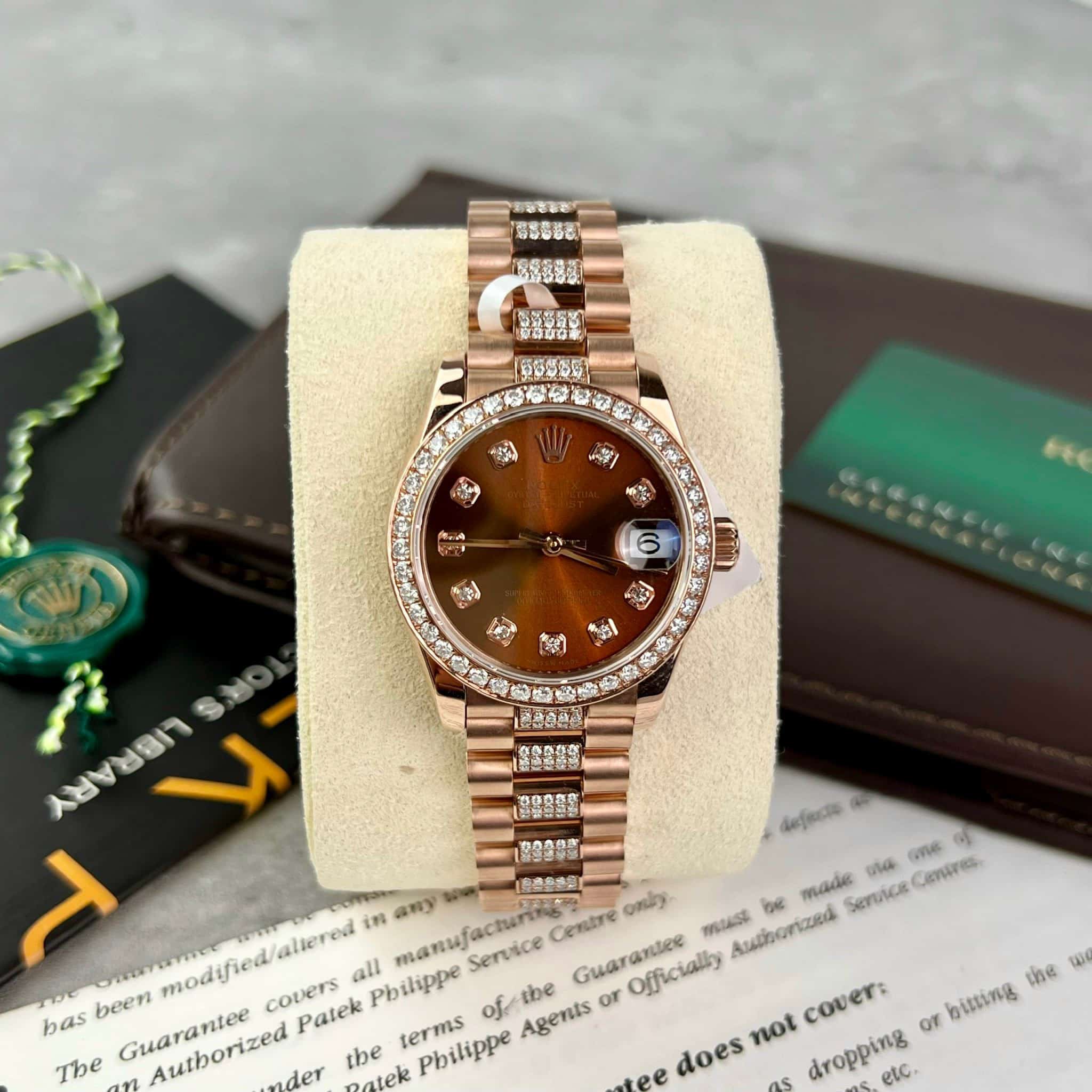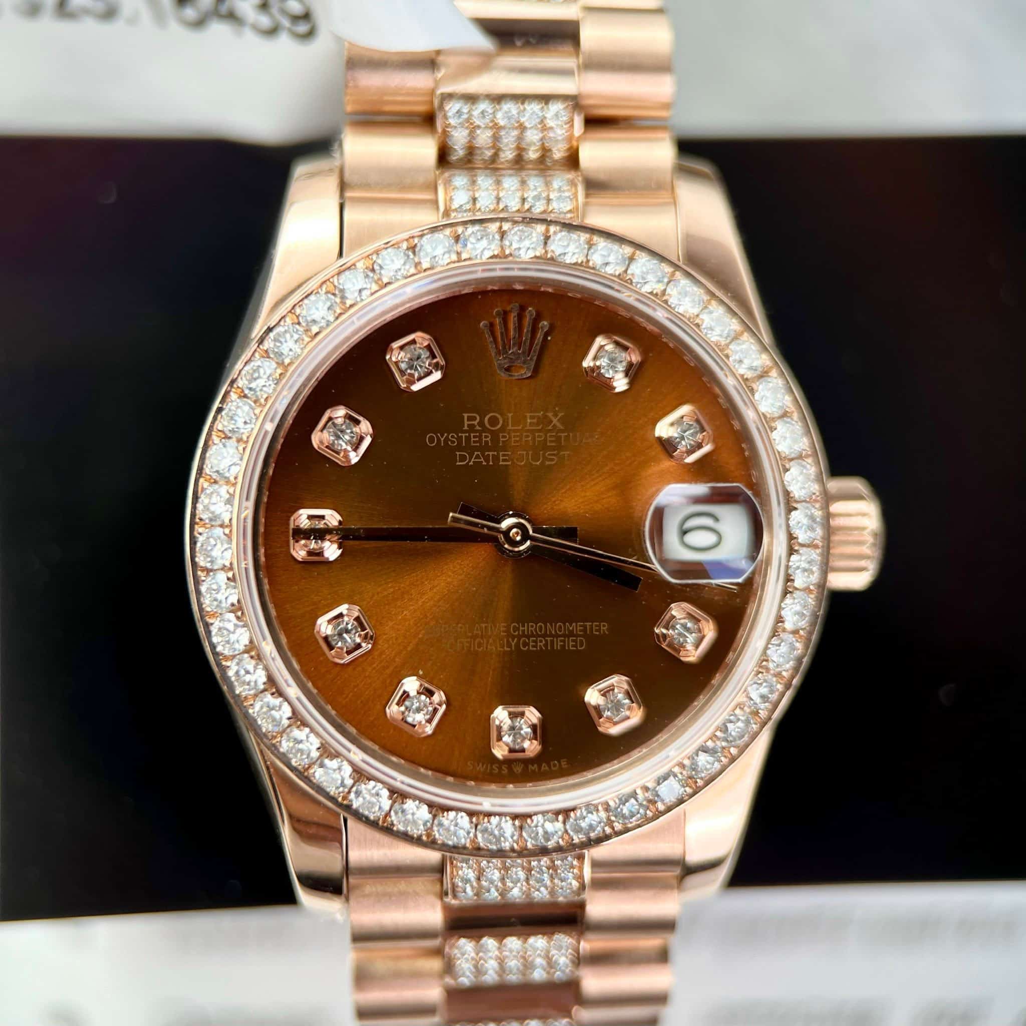 ĐỒNG HỒ ROLEX DATEJUST BỌC VÀNG 18K MẶT NÂU ĐỘ MOISSANITE 31MM