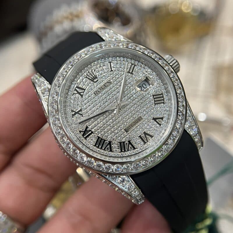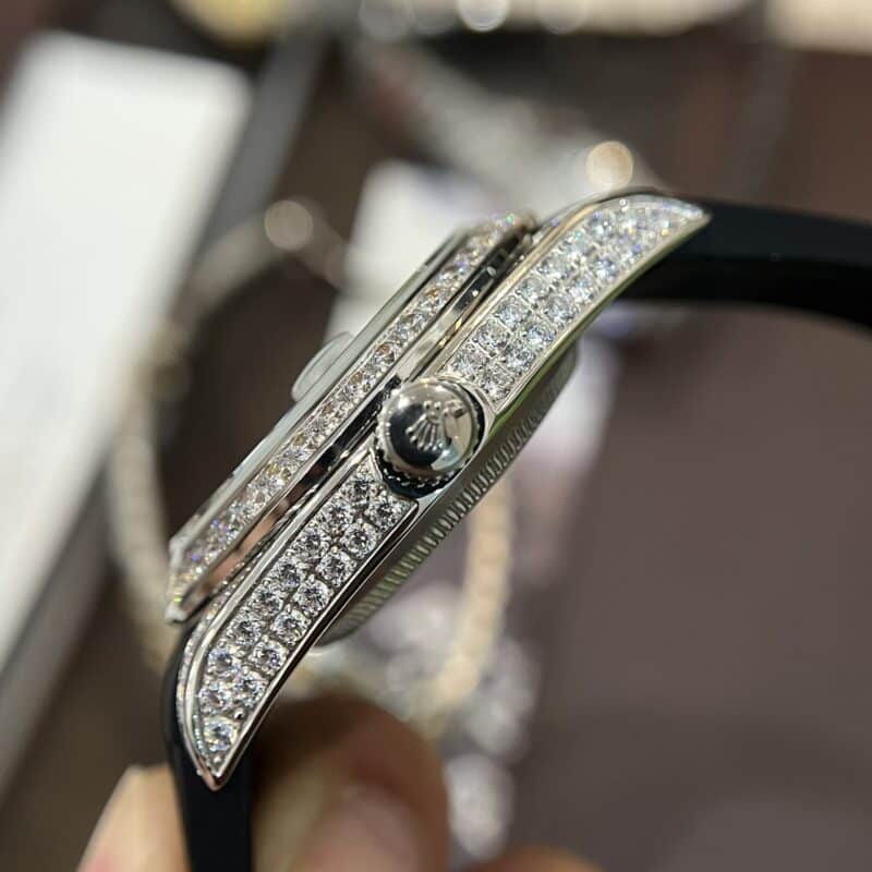 ĐỒNG HỒ ROLEX DATEJUST FULL DIAMOND STEEL REPLICA 1:1 NAM 41MM