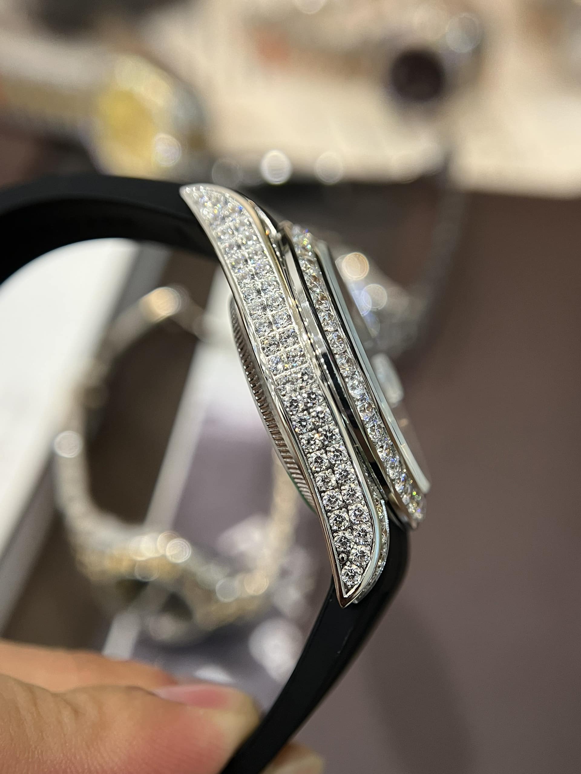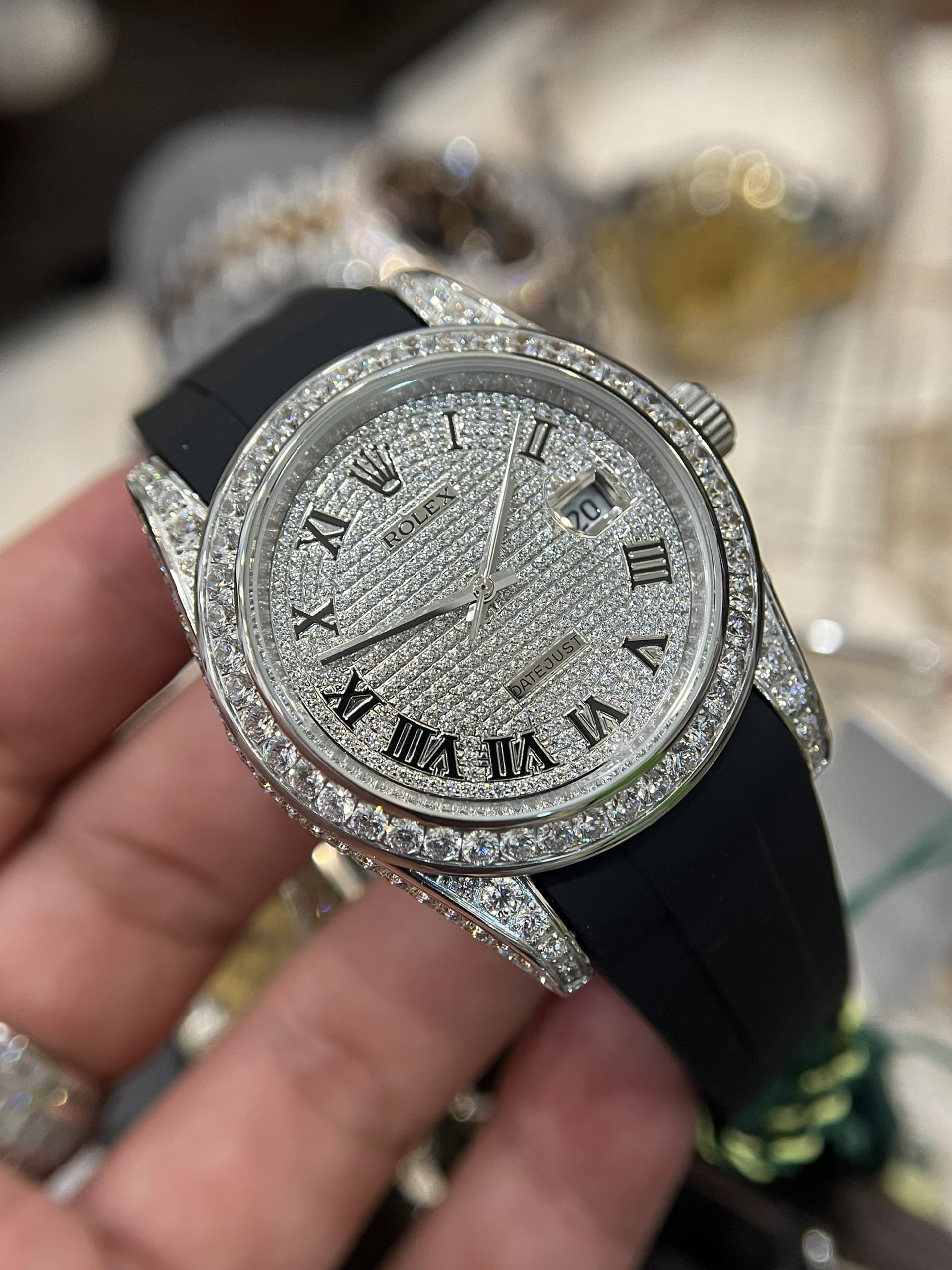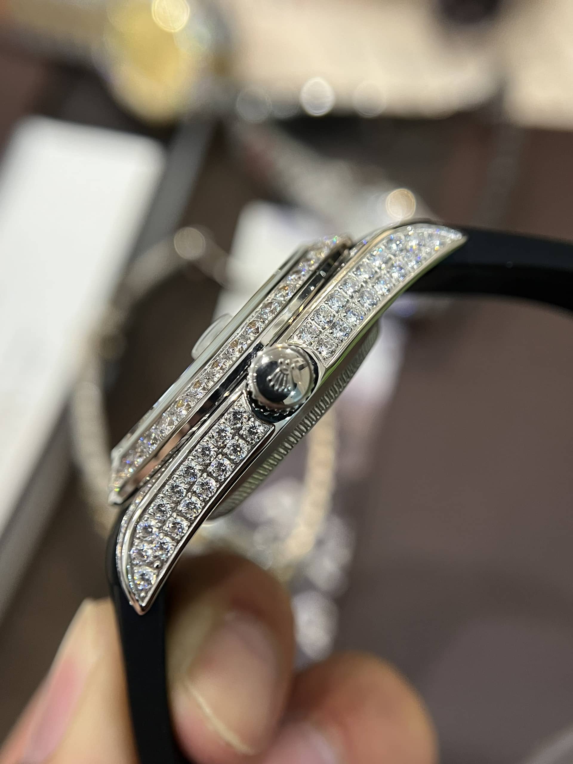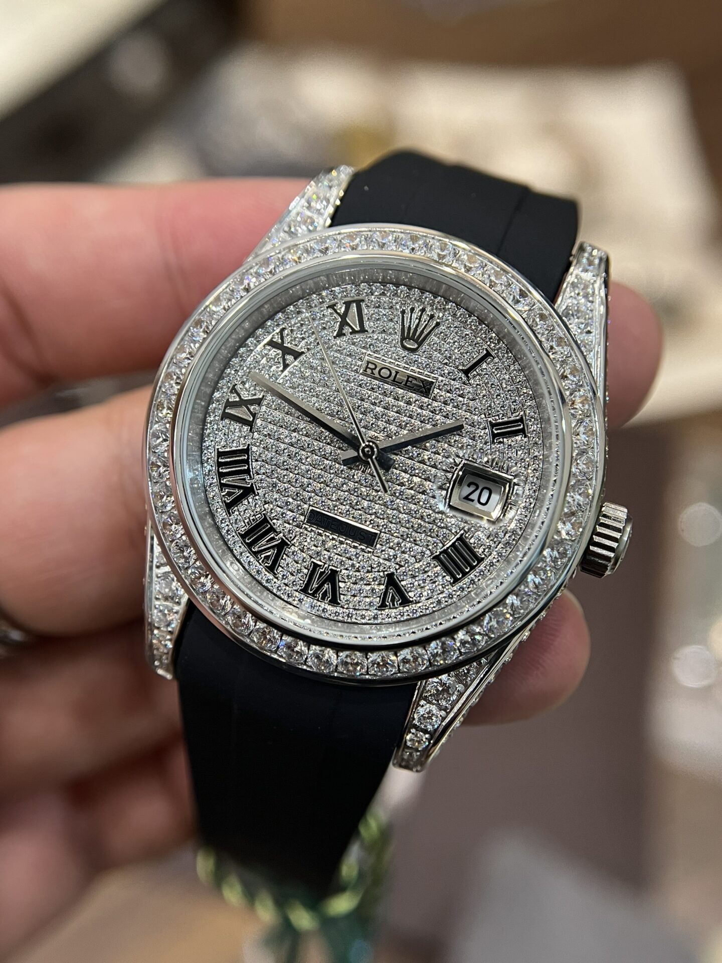 ĐỒNG HỒ ROLEX DATEJUST FULL DIAMOND STEEL REPLICA 1:1 NAM 41MM