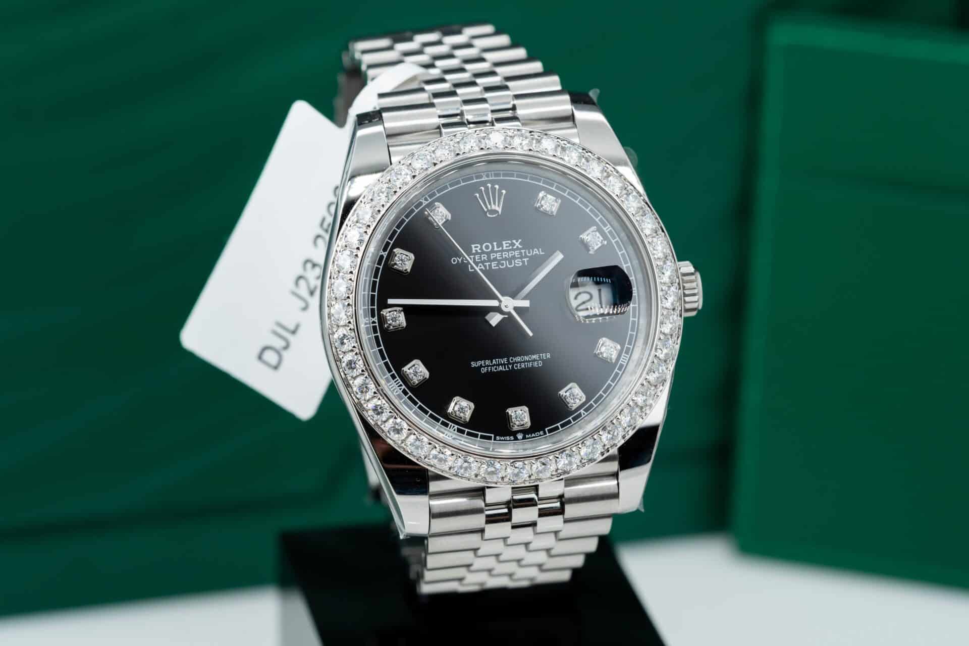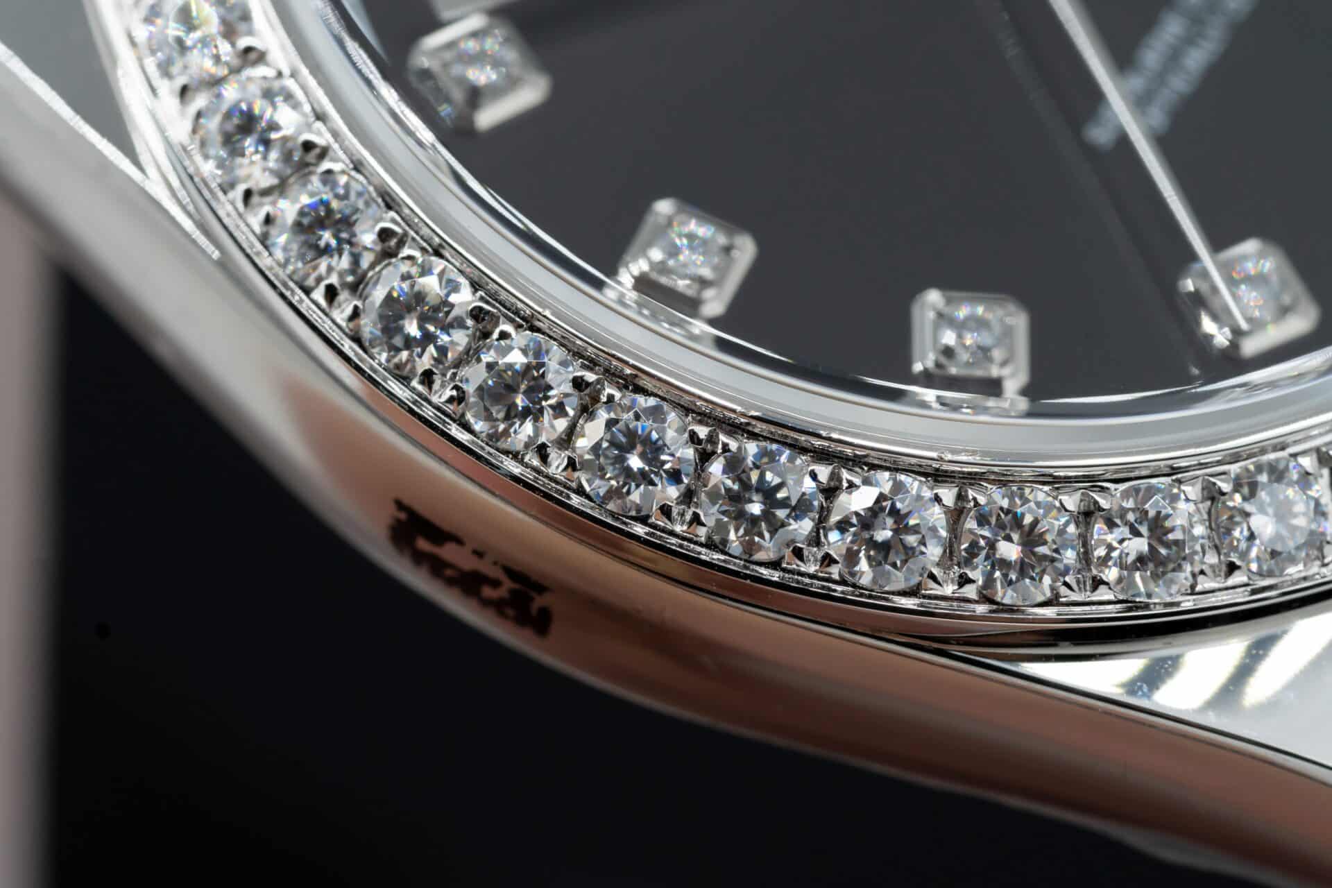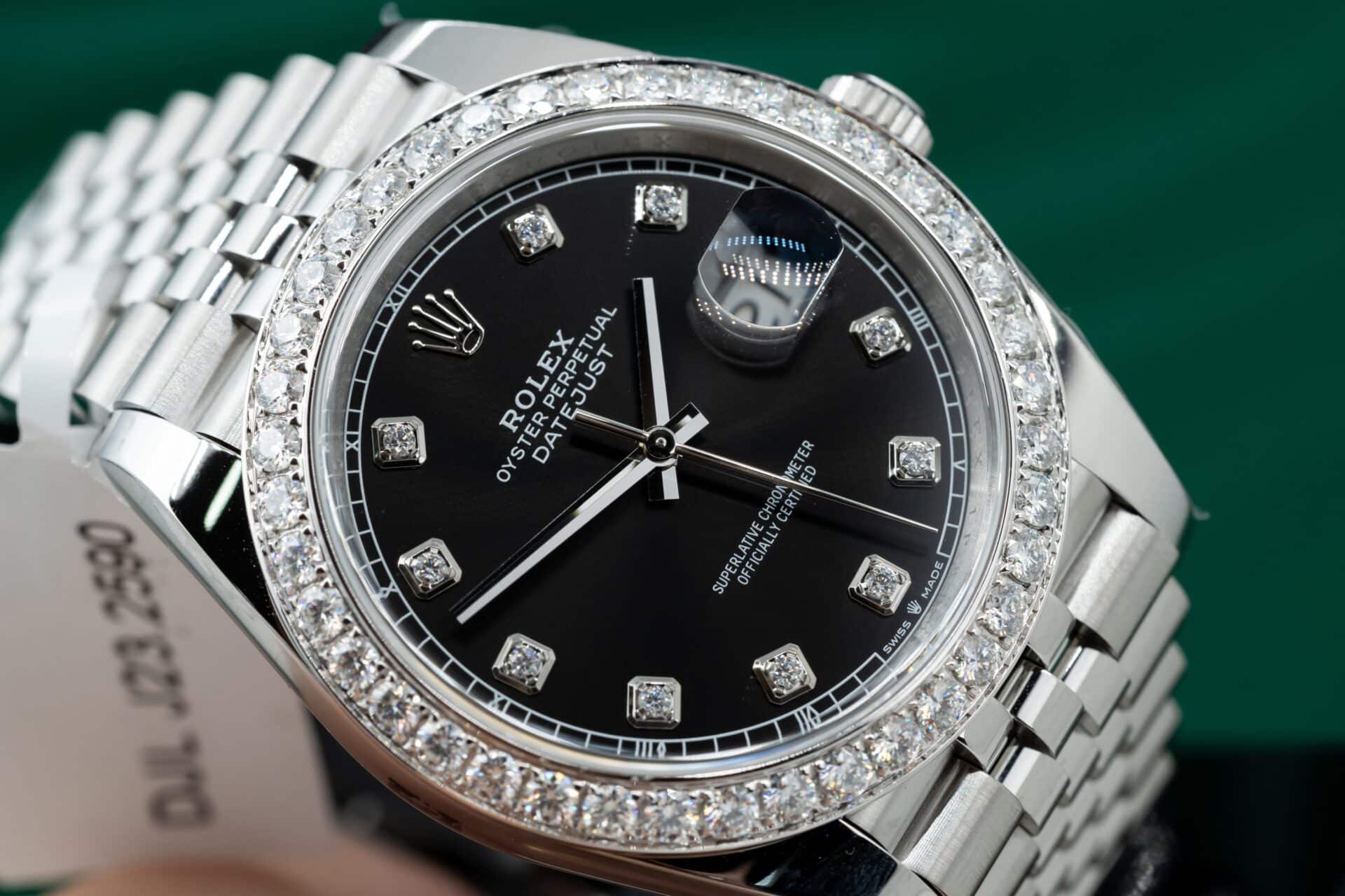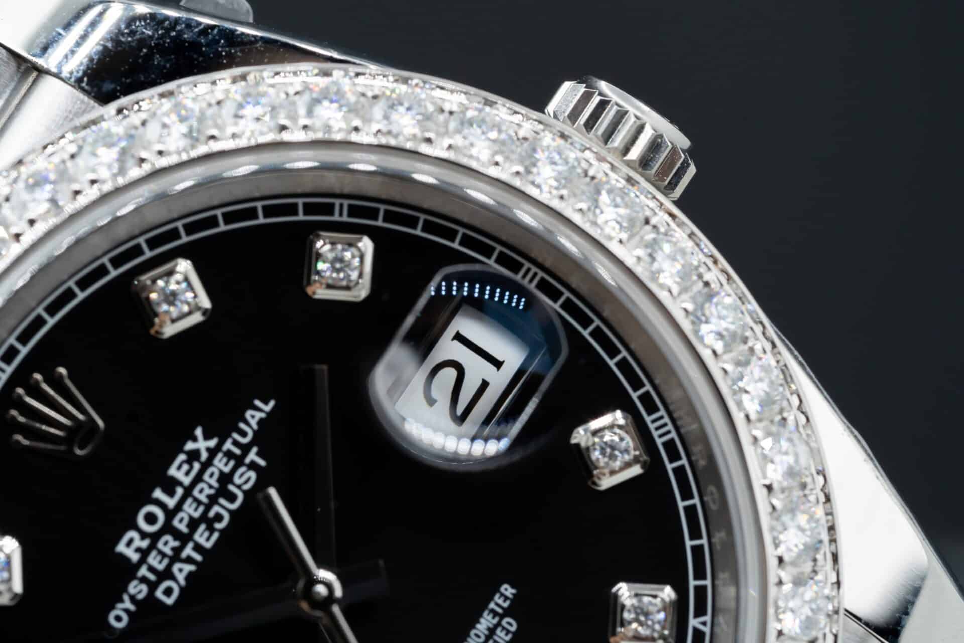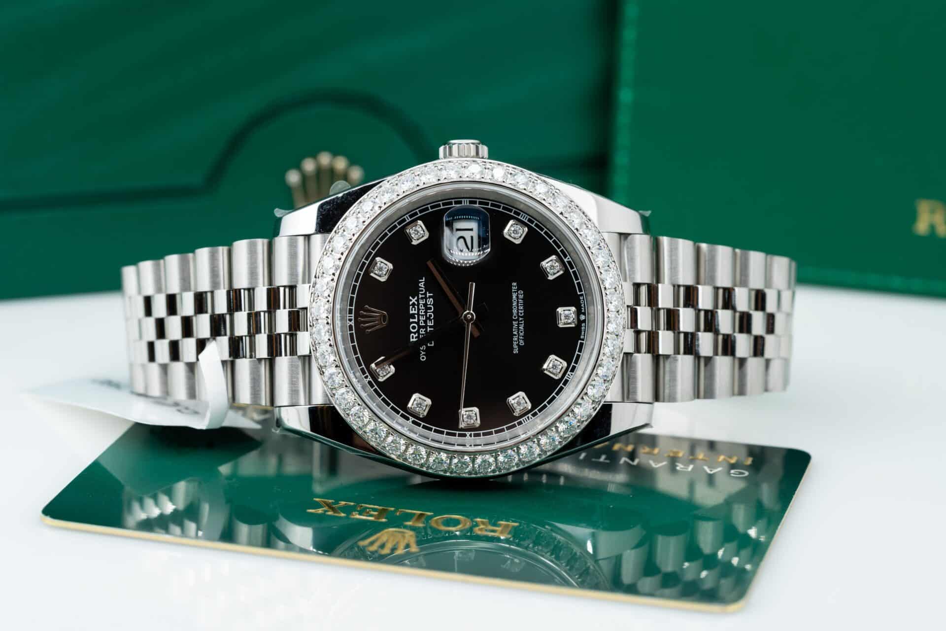 ĐỒNG HỒ ROLEX DATEJUST REP 11 MẶT ĐEN NIỀNG KIM CƯƠNG MOISSANITE CLEAN FACTORY 41MM