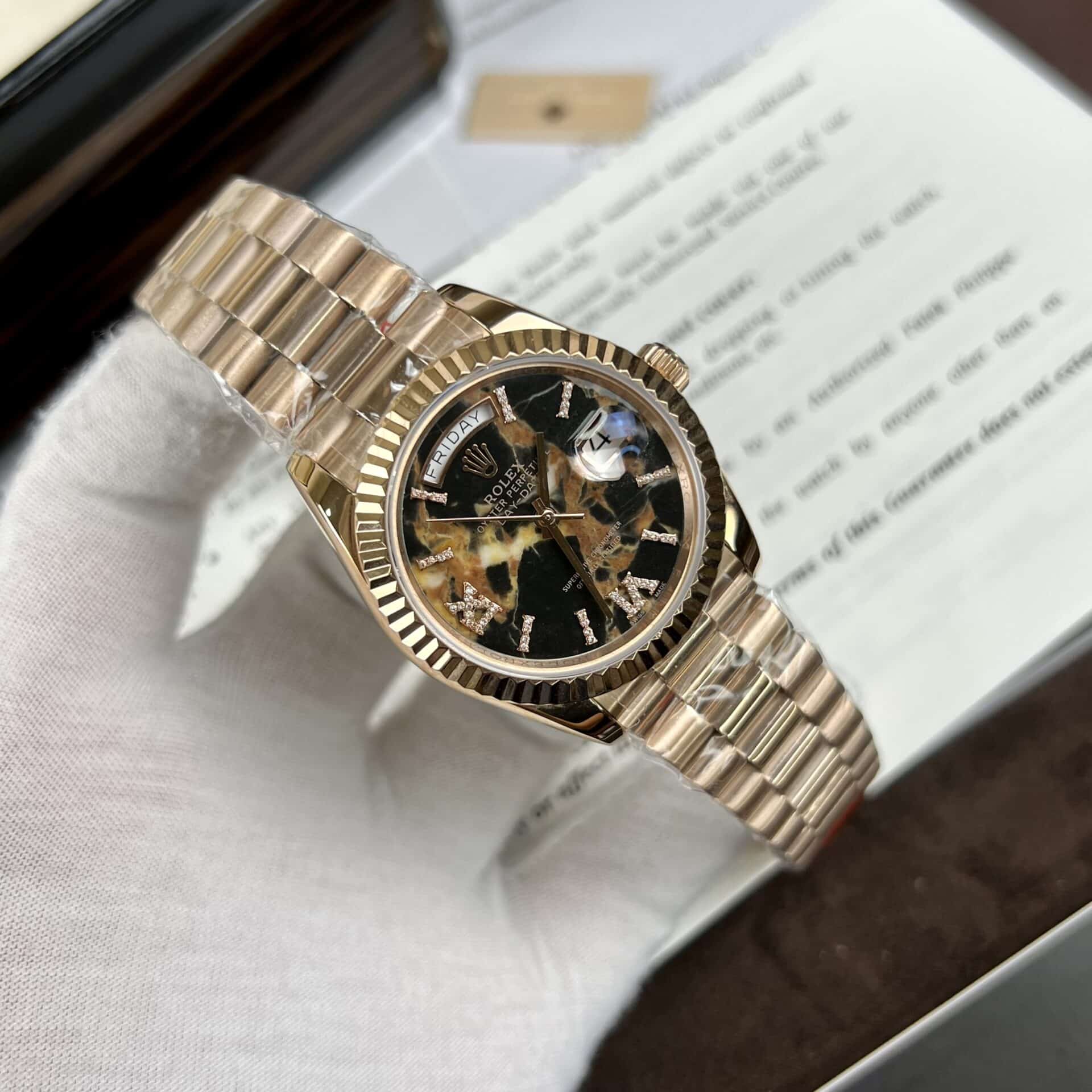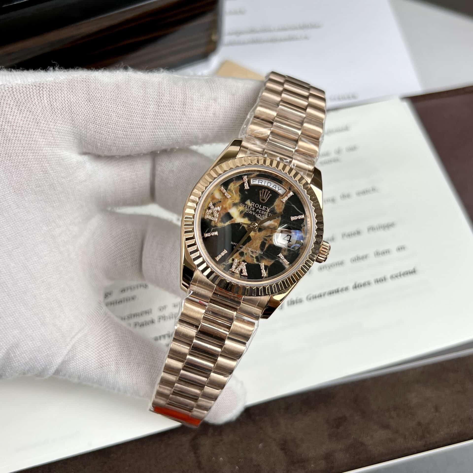 ĐỒNG HỒ ROLEX DAY-DATE 128345 MẶT THIÊN THẠCH REPLICA 36MM