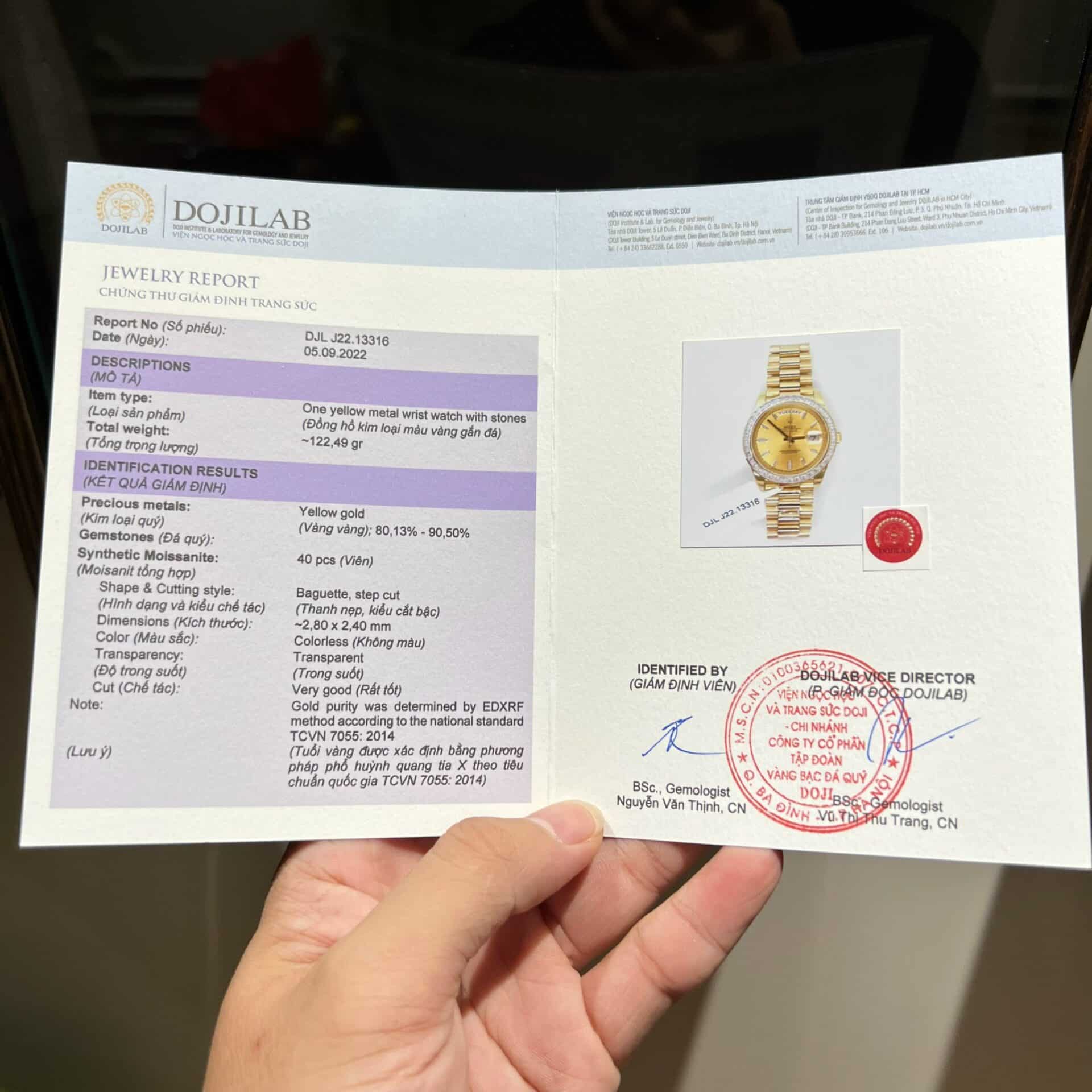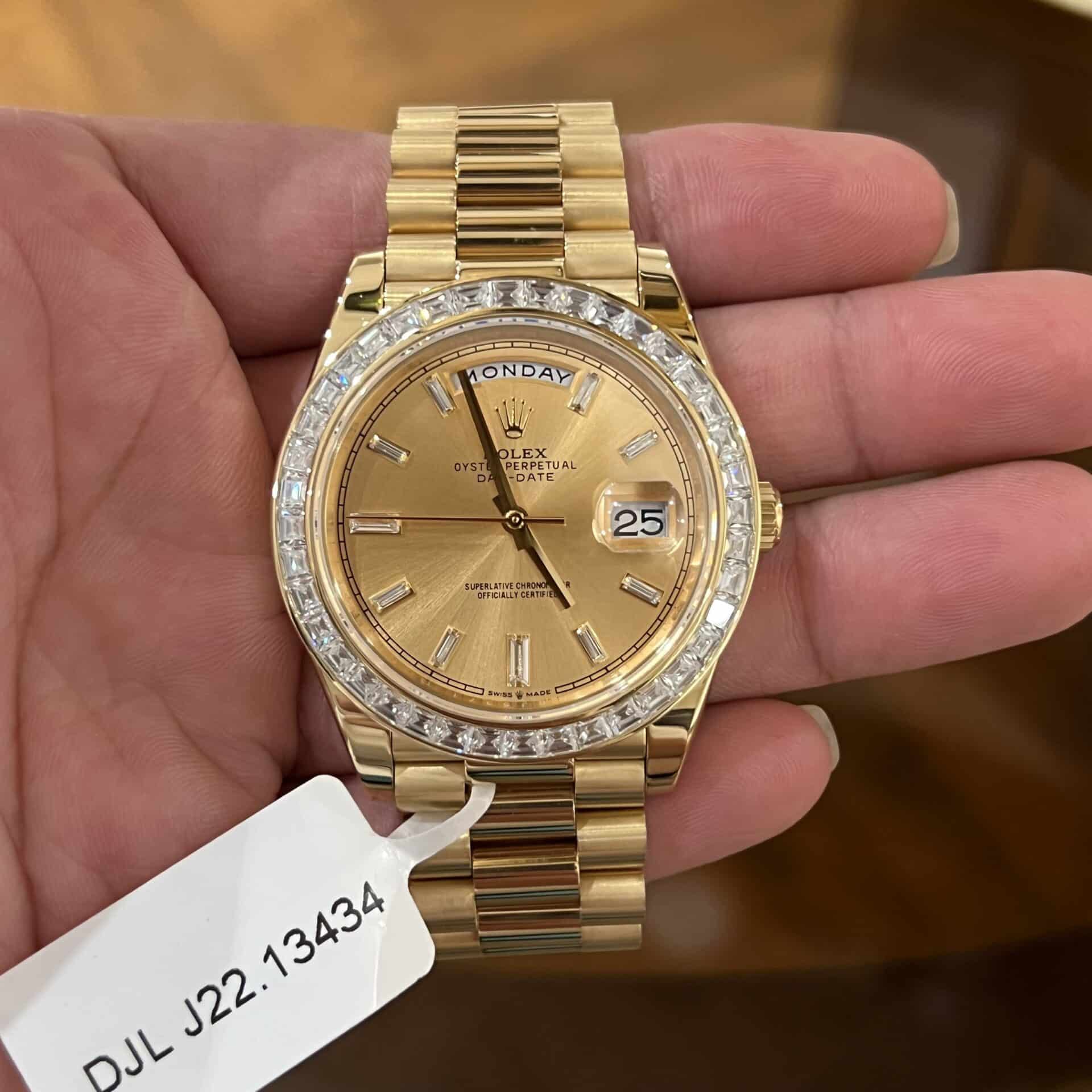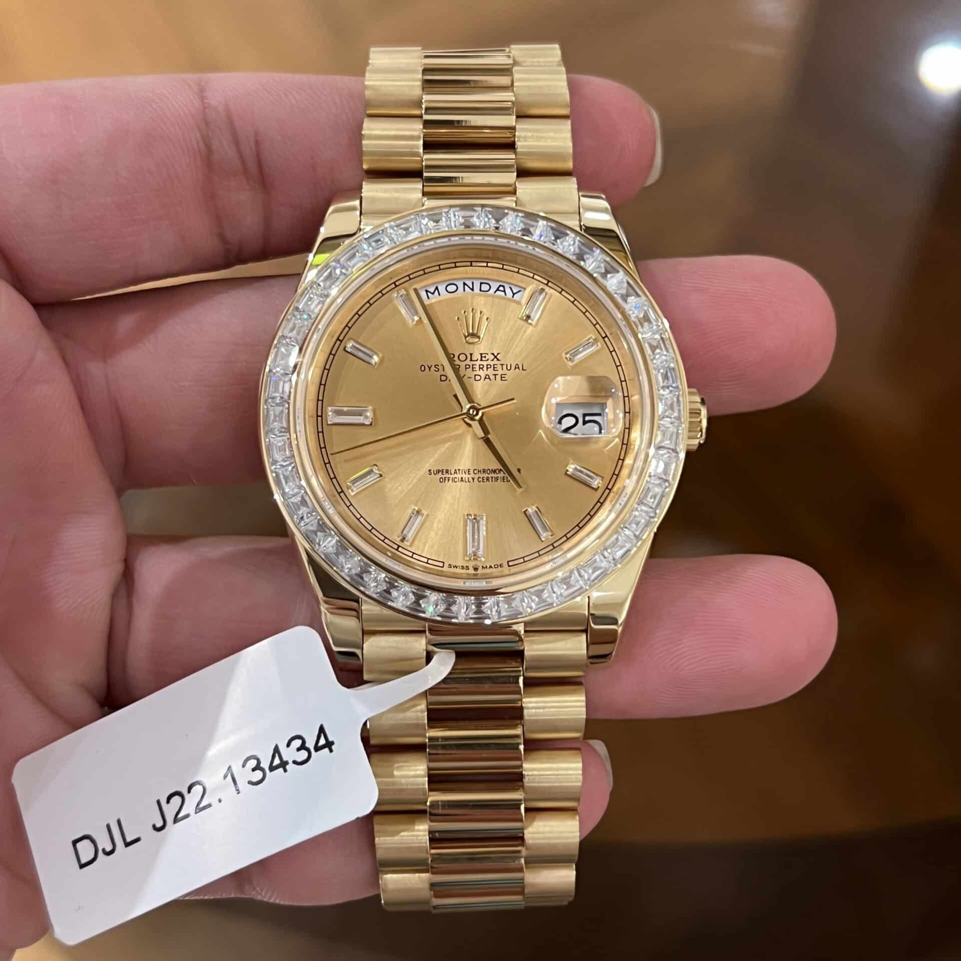 ĐỒNG HỒ ROLEX DAY-DATE SUPER FAKE BỌC VÀNG NIỀNG KIM CƯƠNG MOISSANITE 40MM