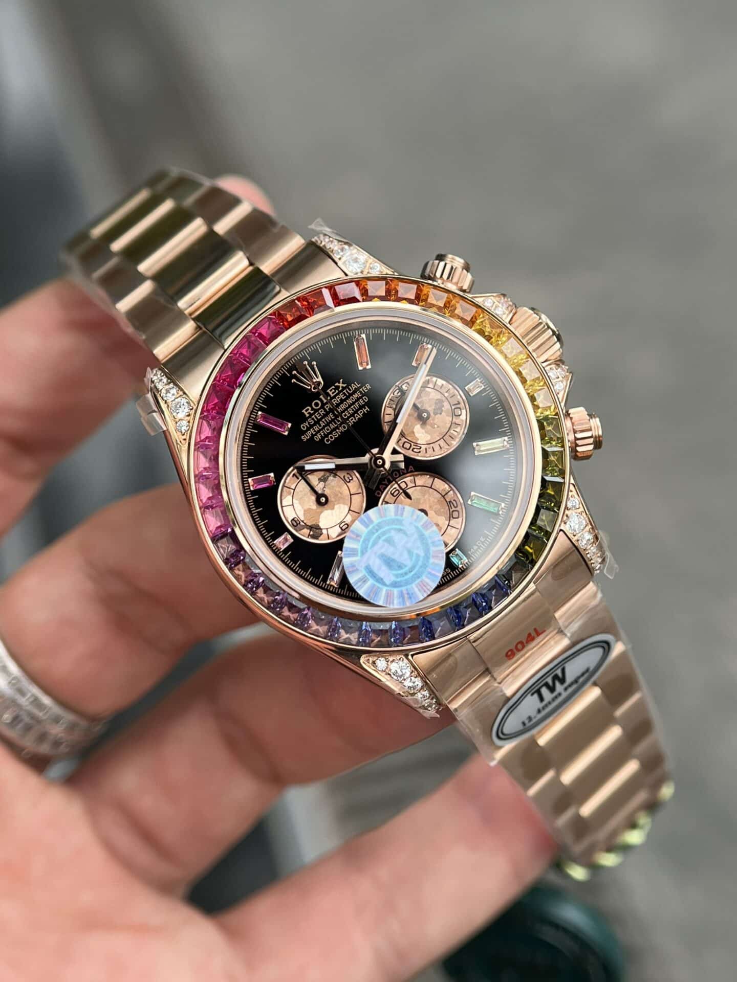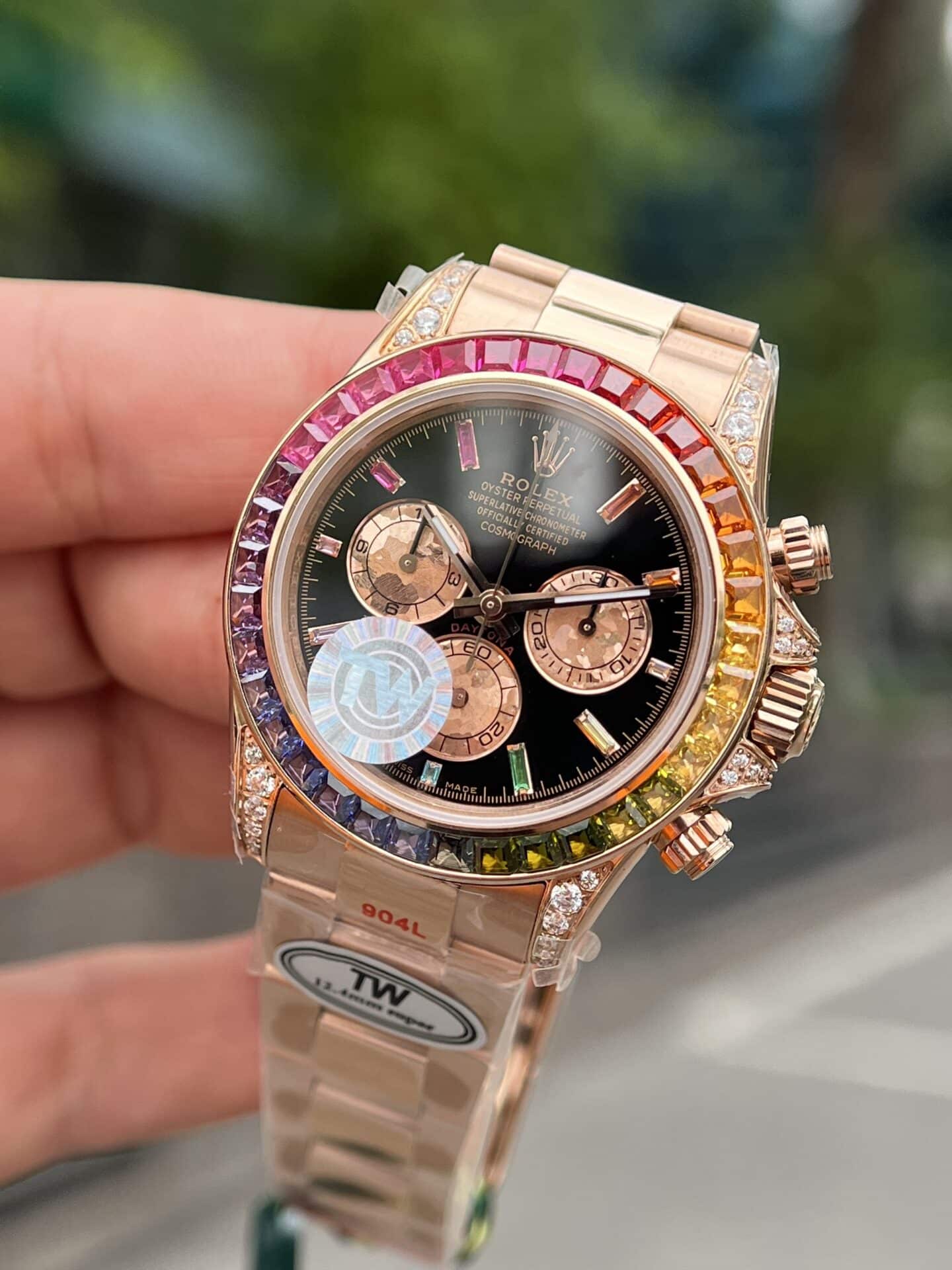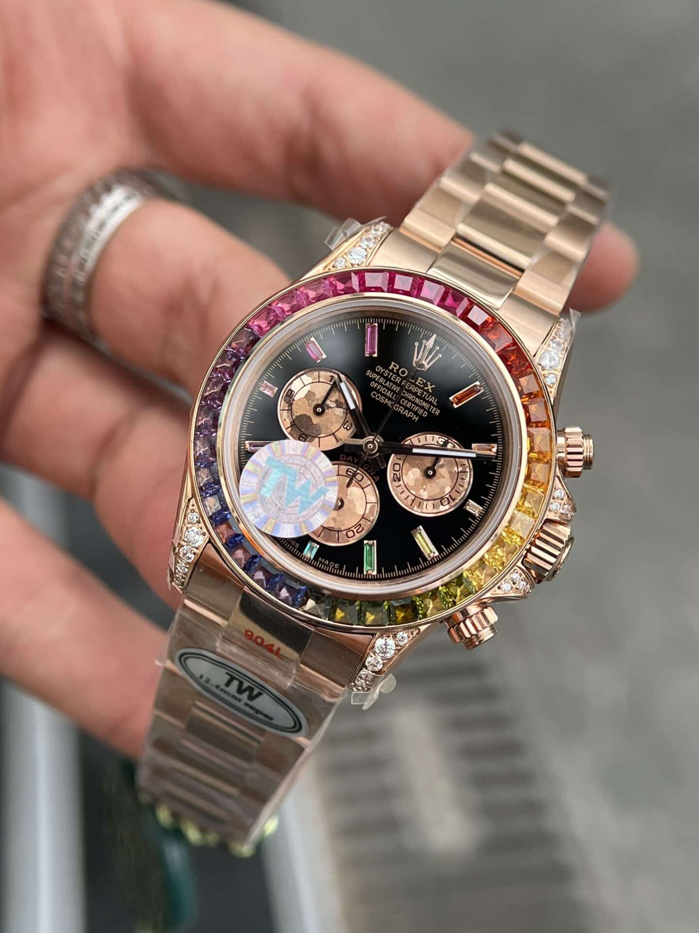 ĐỒNG HỒ ROLEX DAYTONA RAINBOW VỎ VÀNG HỒNG REP 11 TW FACTORY 40MM