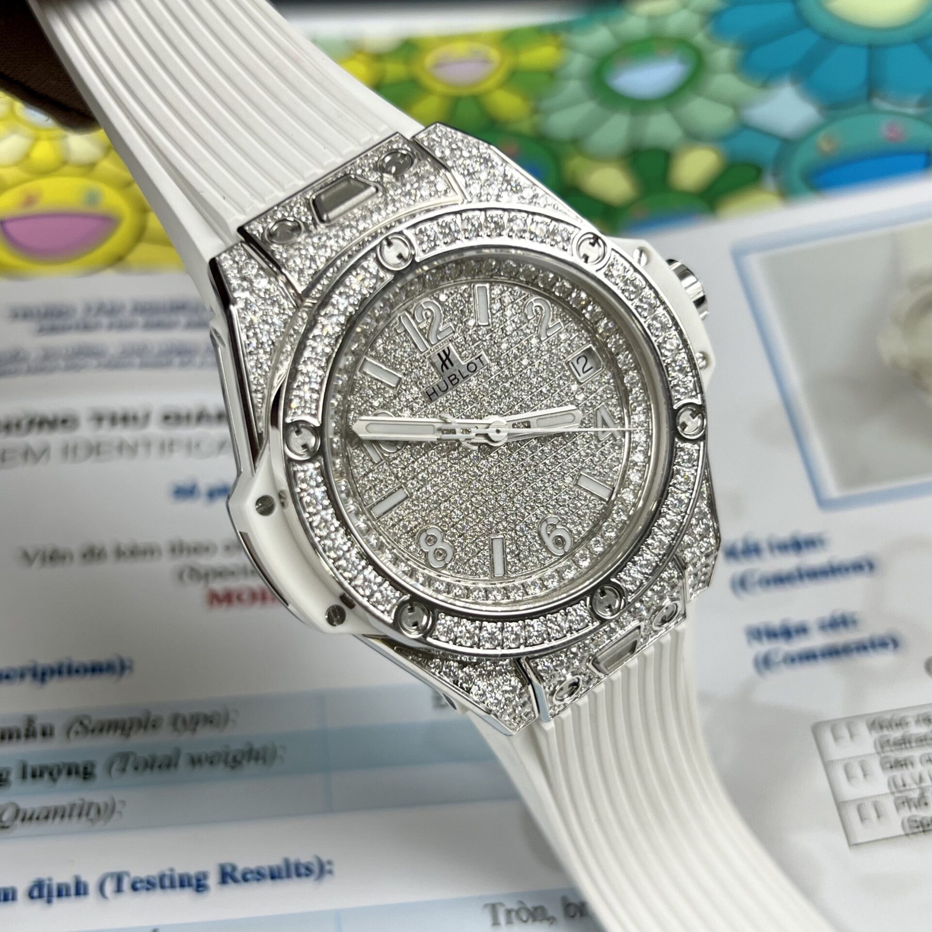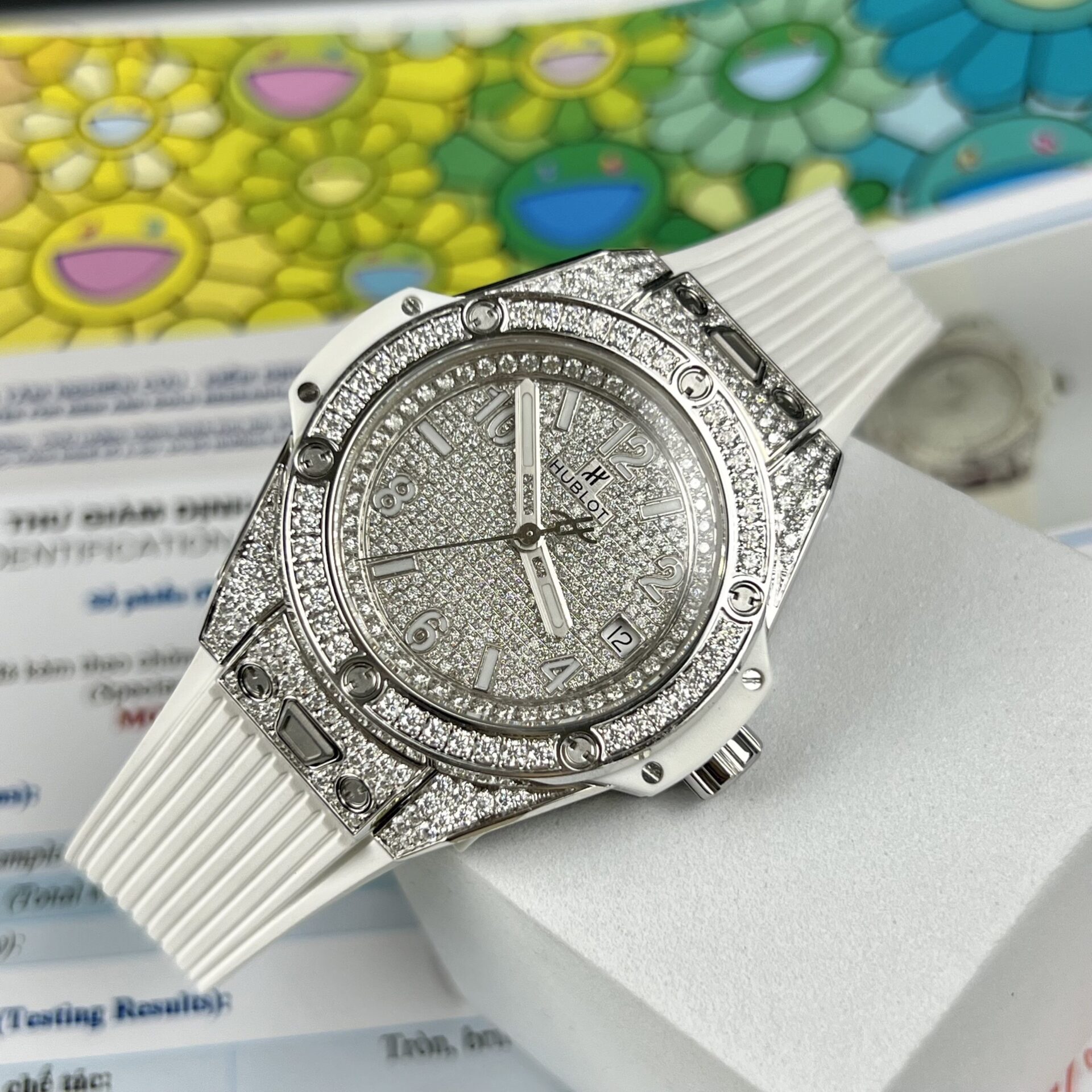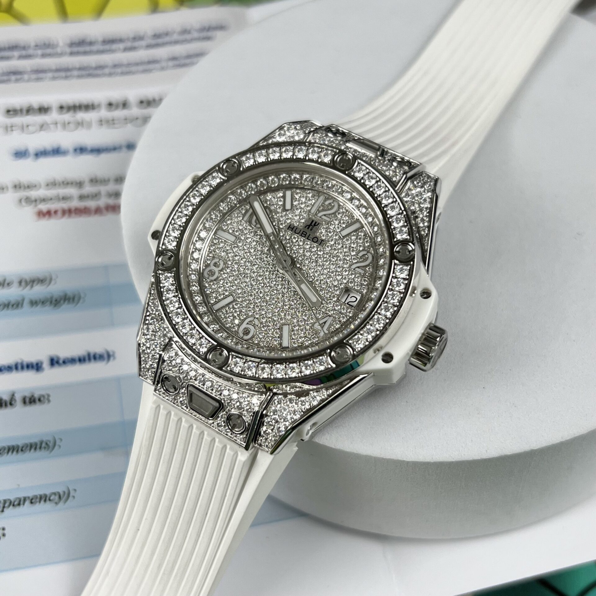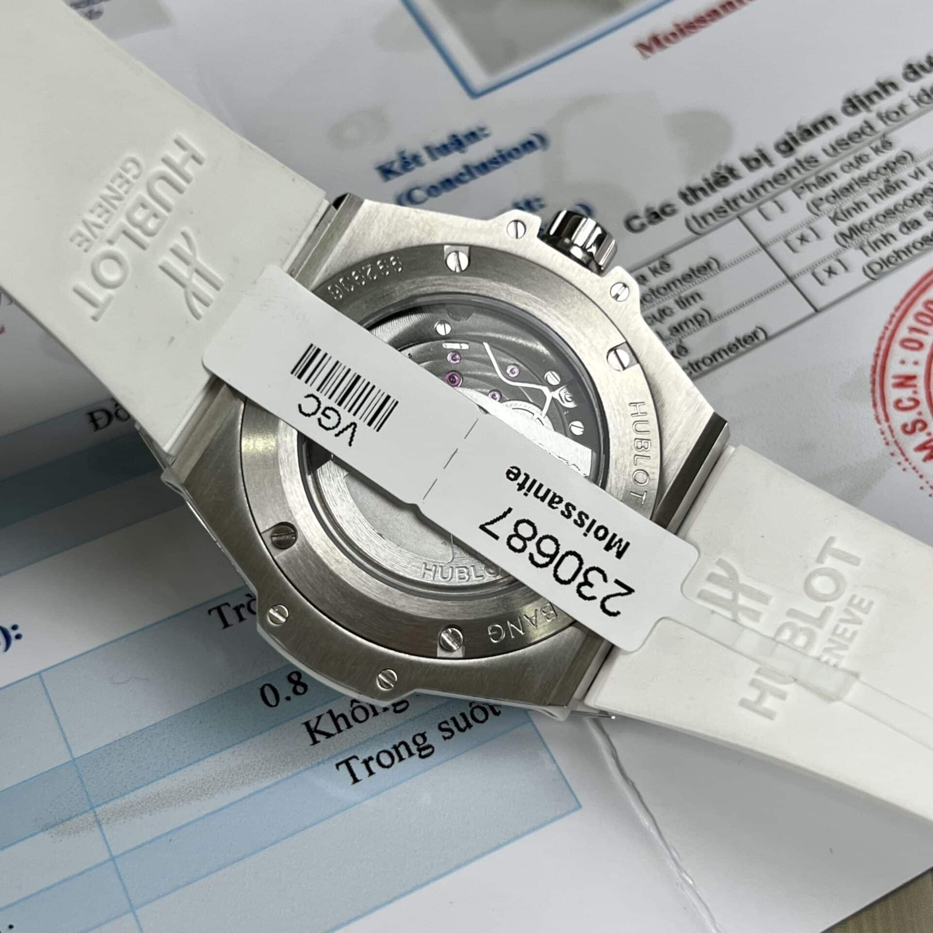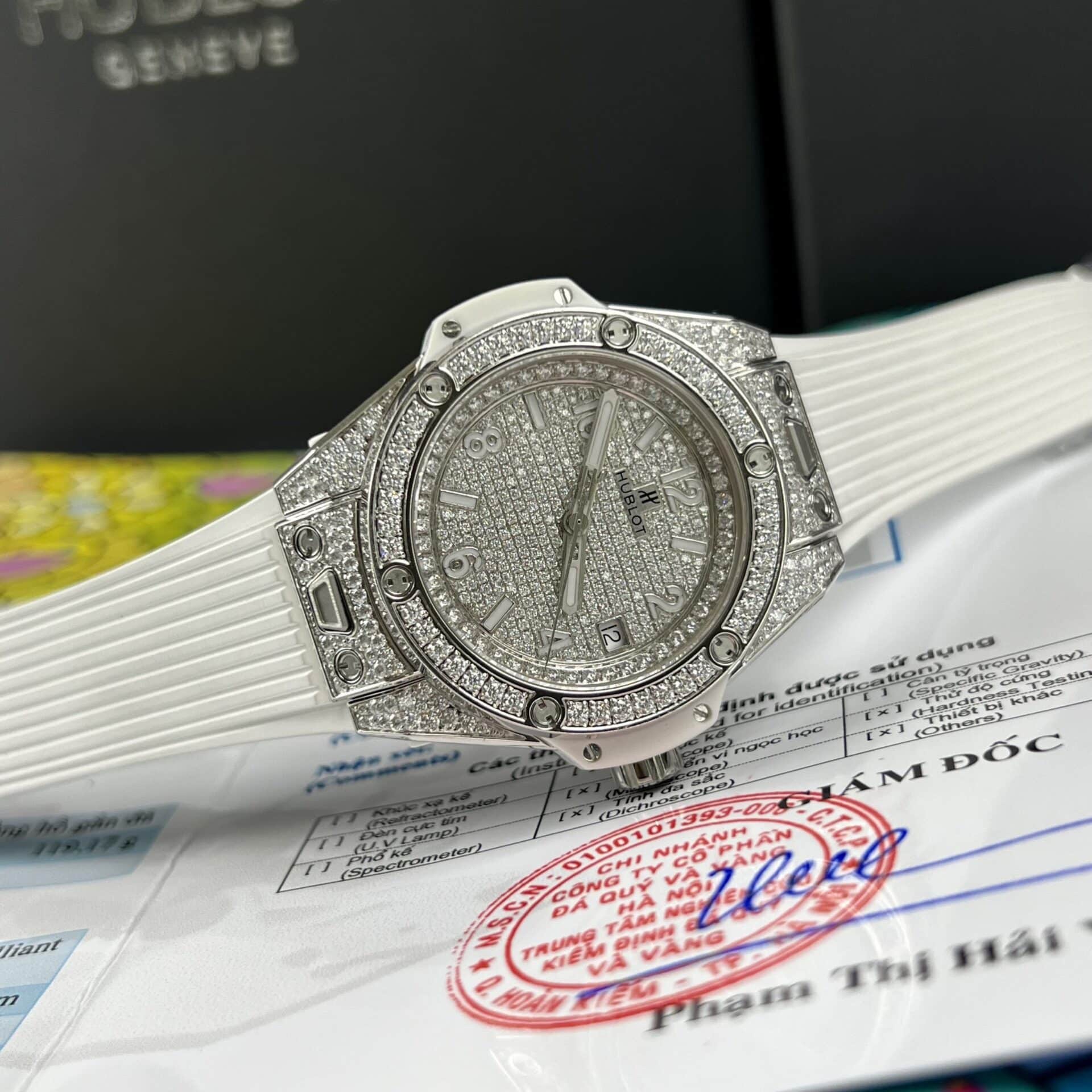 HUBLOT BIGBANG ONE CLICK MÀU TRẮNG REP 1:1 ĐỘ FULL KIM CƯƠNG MOISSANITE 39MM