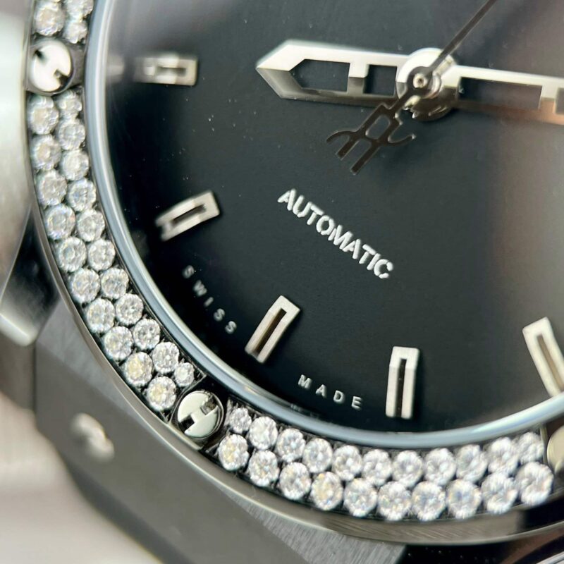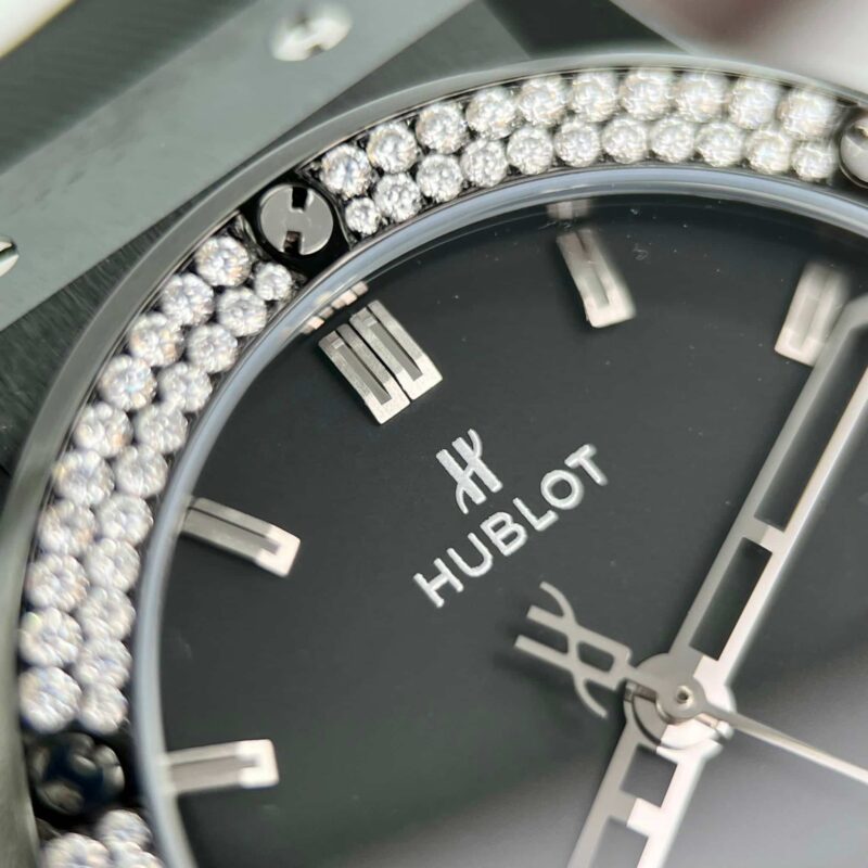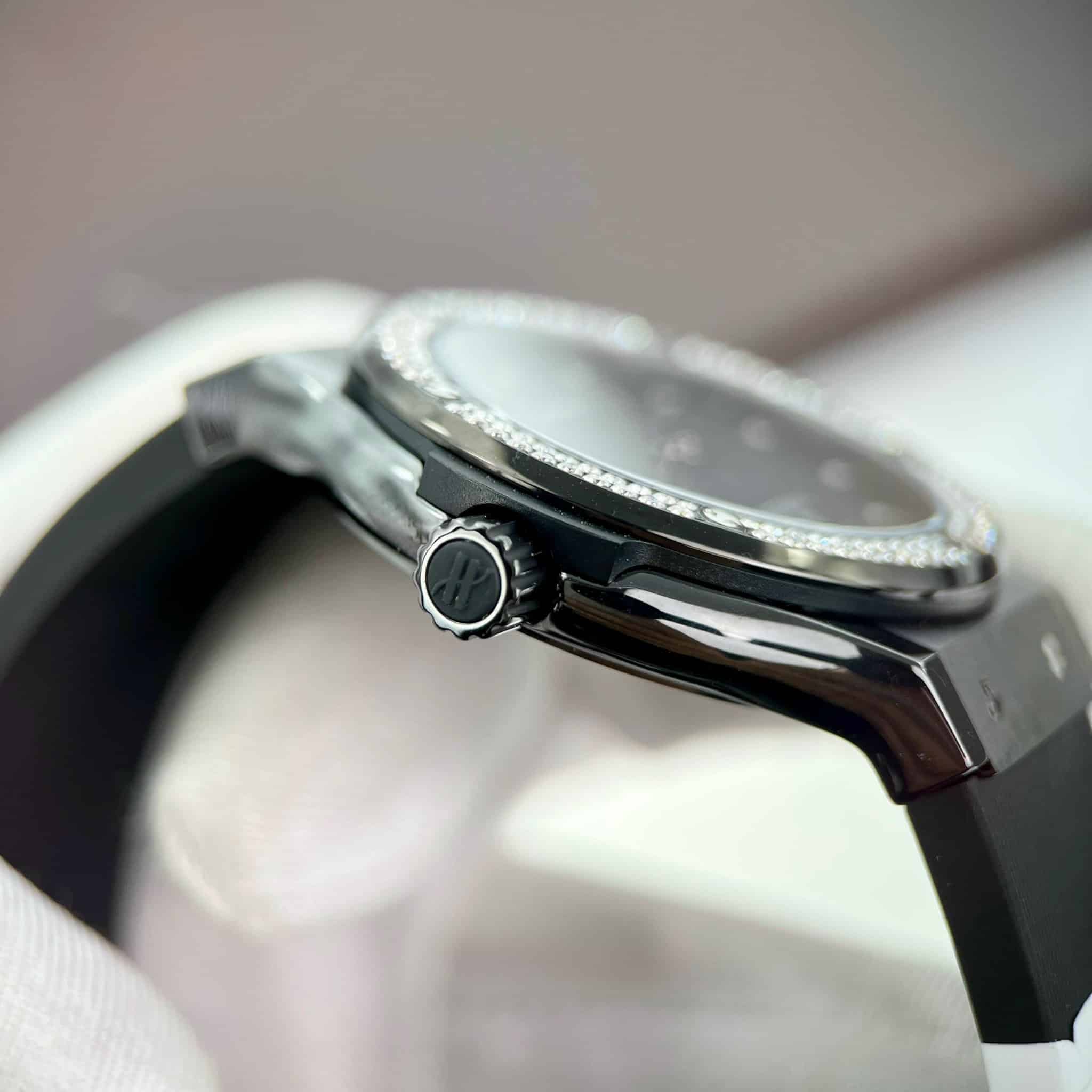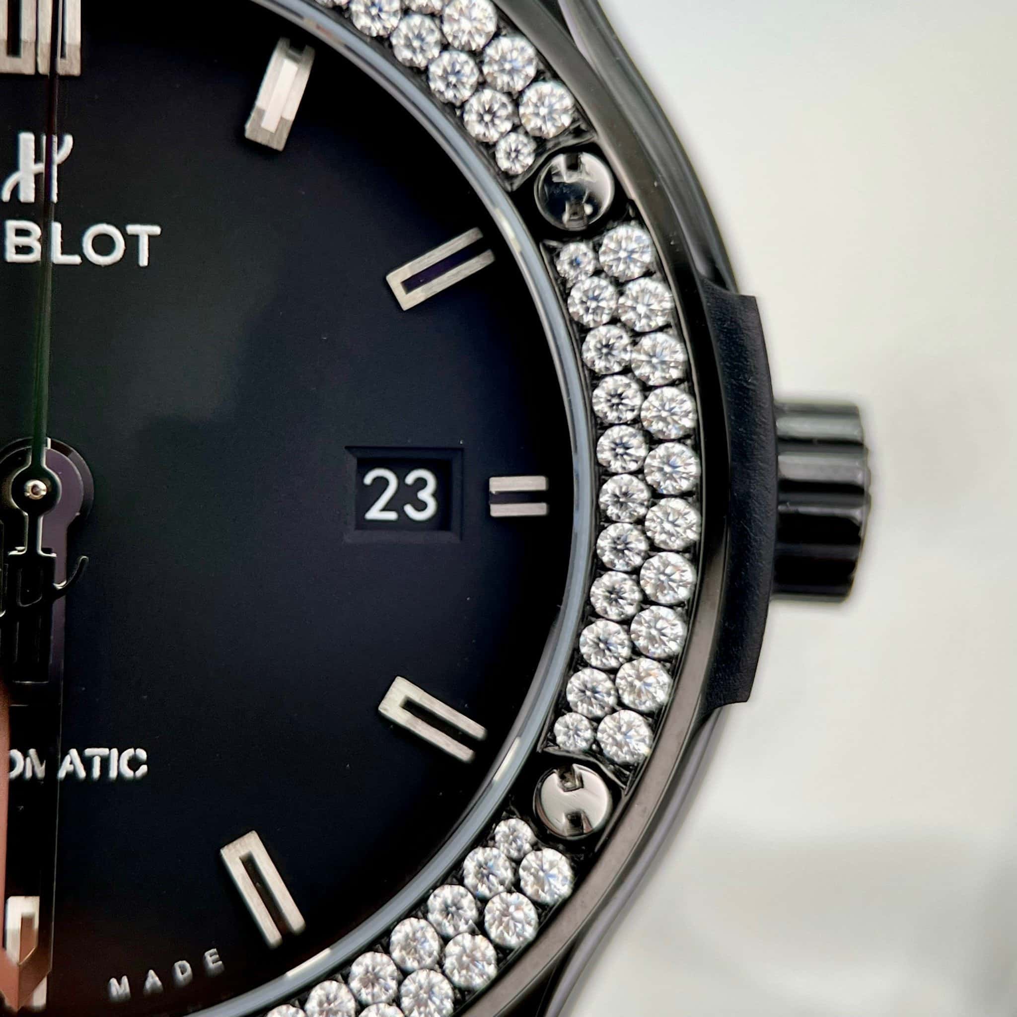 HUBLOT CLASSIC FUSION BLACK CERAMIC BLACK DIAL MOISSANITE BEZEL 42MM