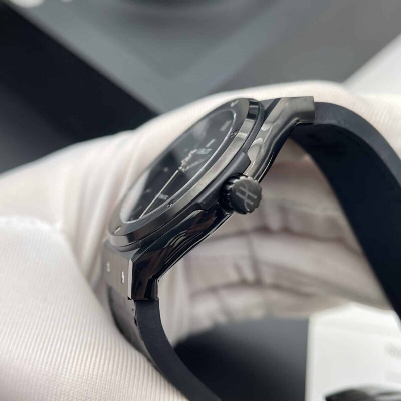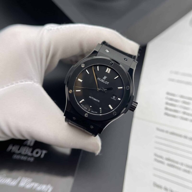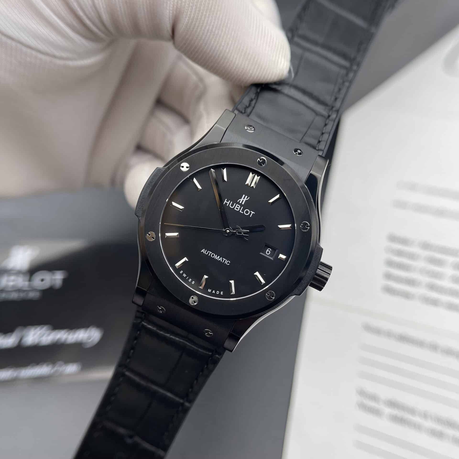 HUBLOT CLASSIC FUSION CERAMIC FULL BLACK LEATHER STRAP REPLICA 42MM