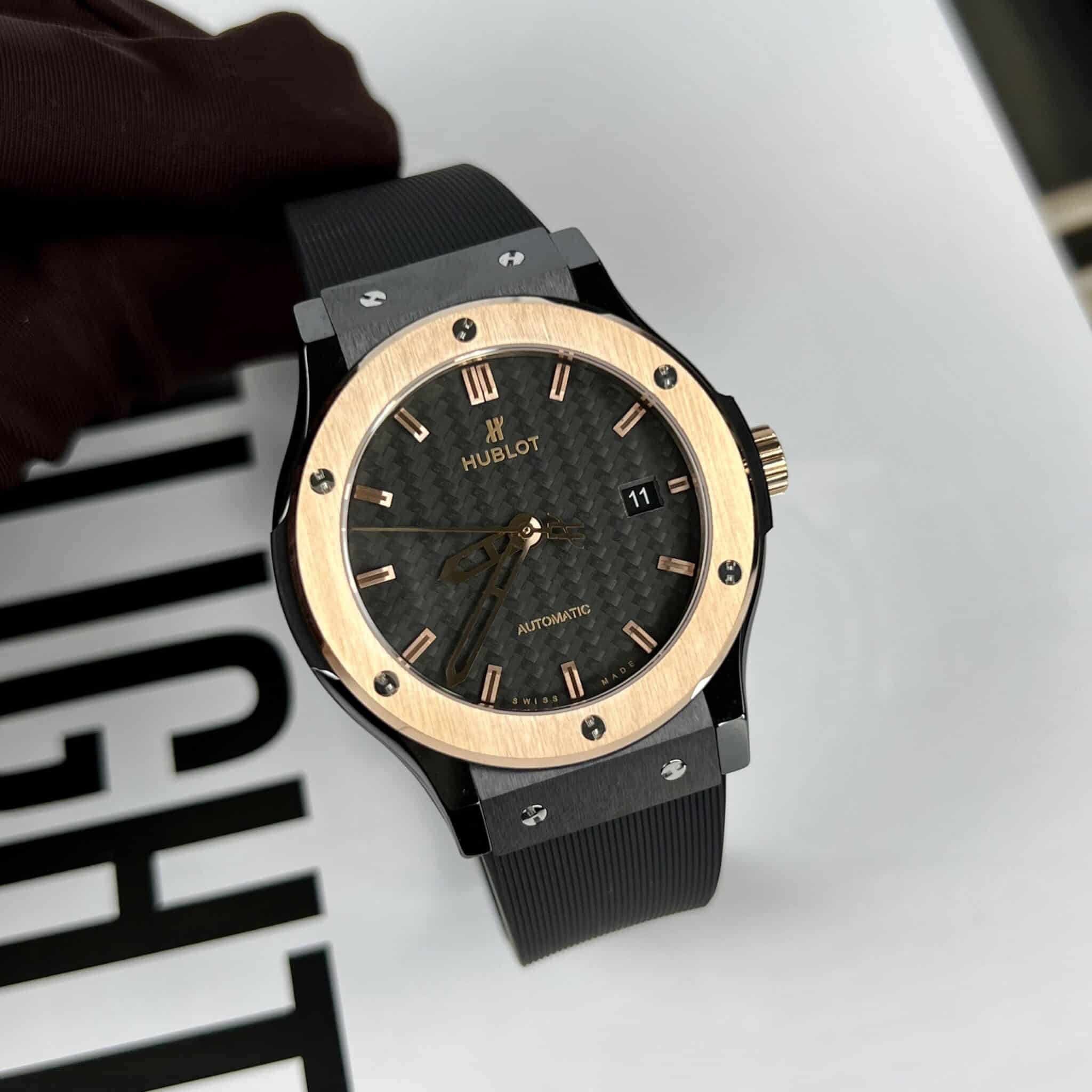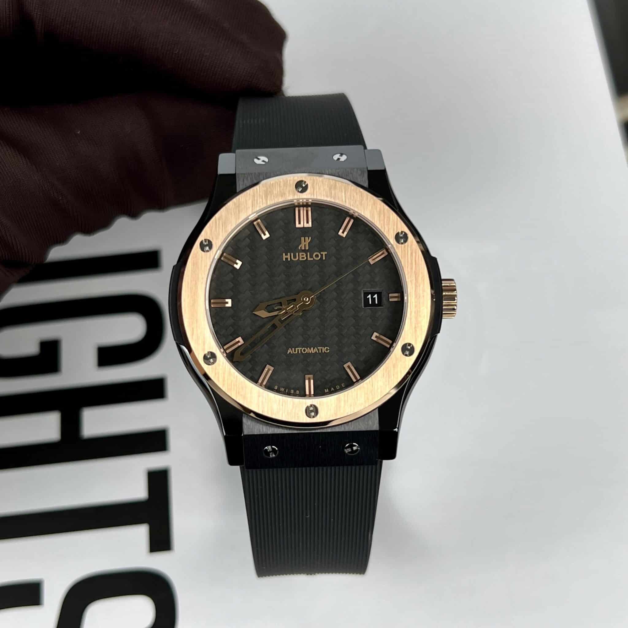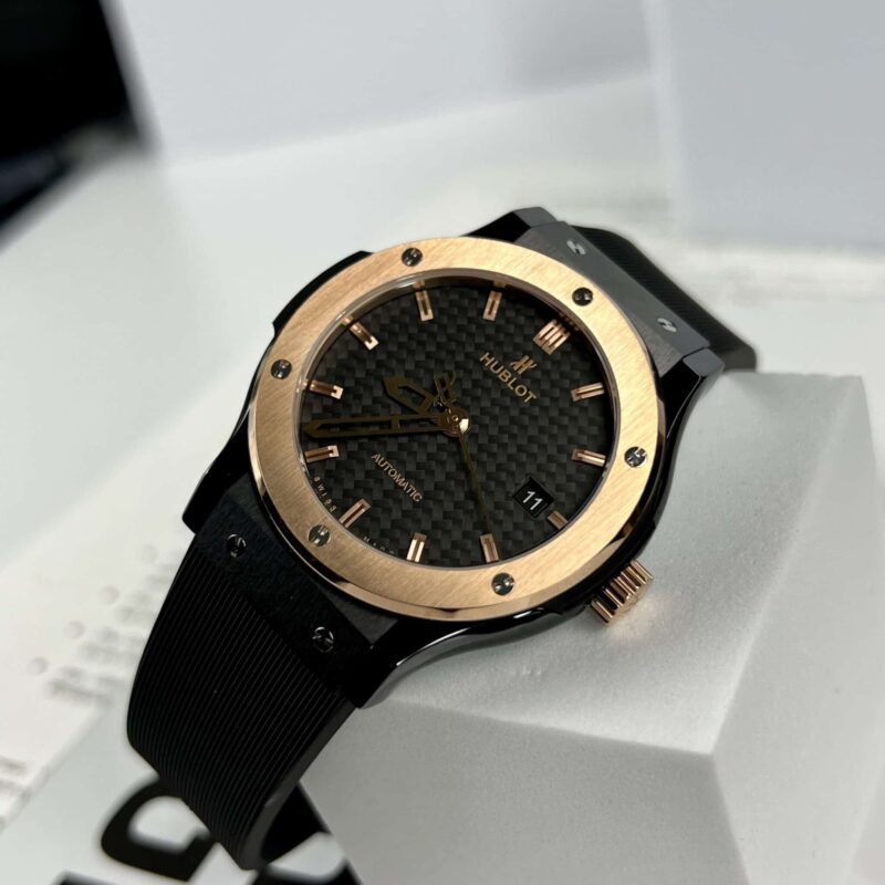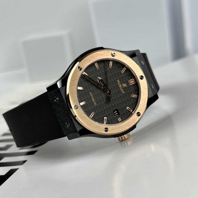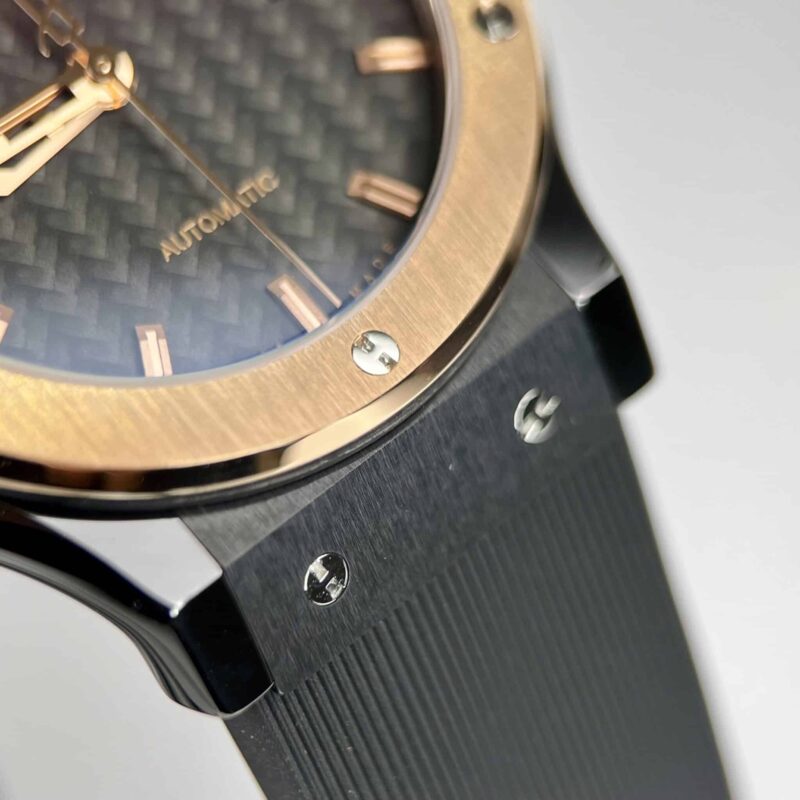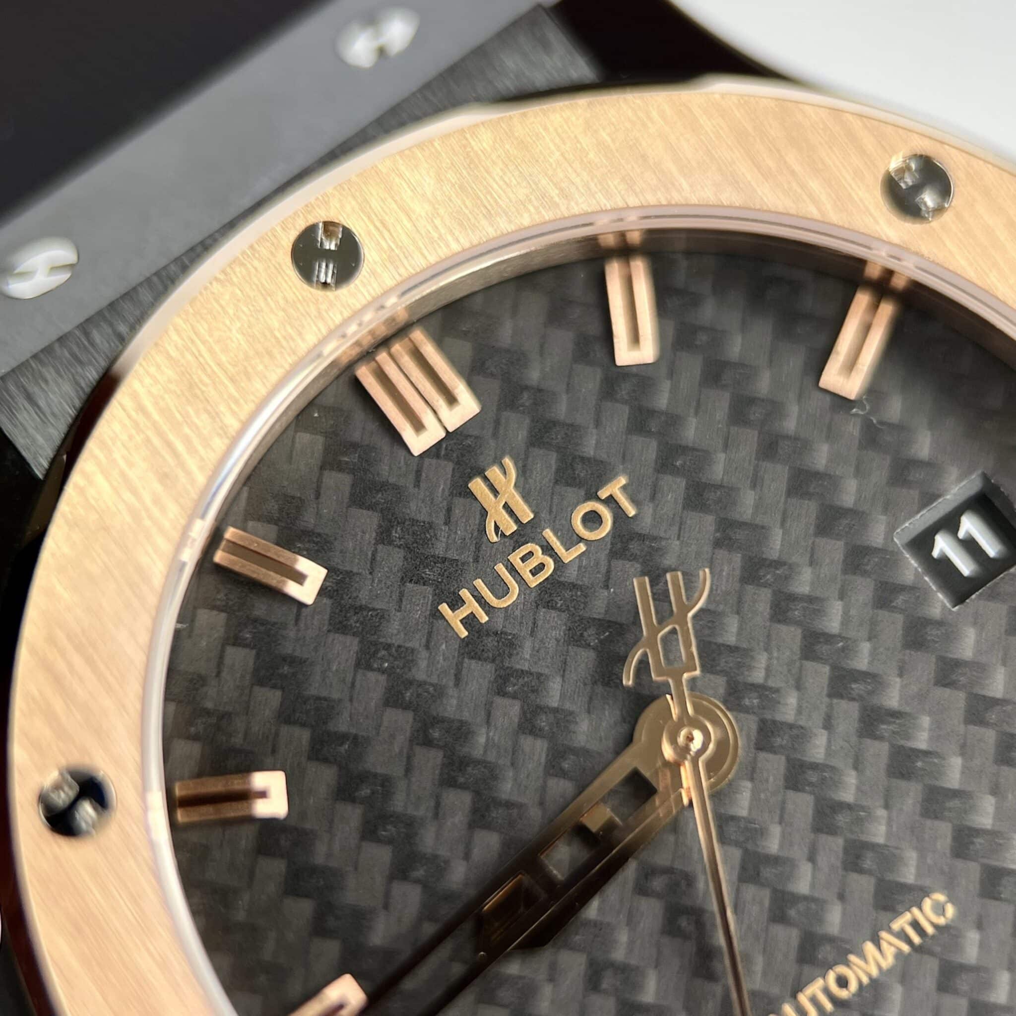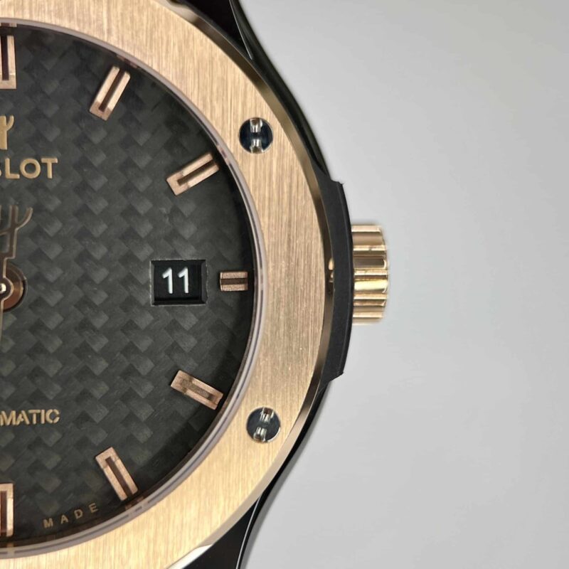 DETAILS OF THE HUBLOT CLASSIC FUSION CERAMIC KING GOLD BEZEL CARBON DIAL BEST REPLICA 42MM AT THẾ GIỚI ĐỒNG HỒ ĐẸP