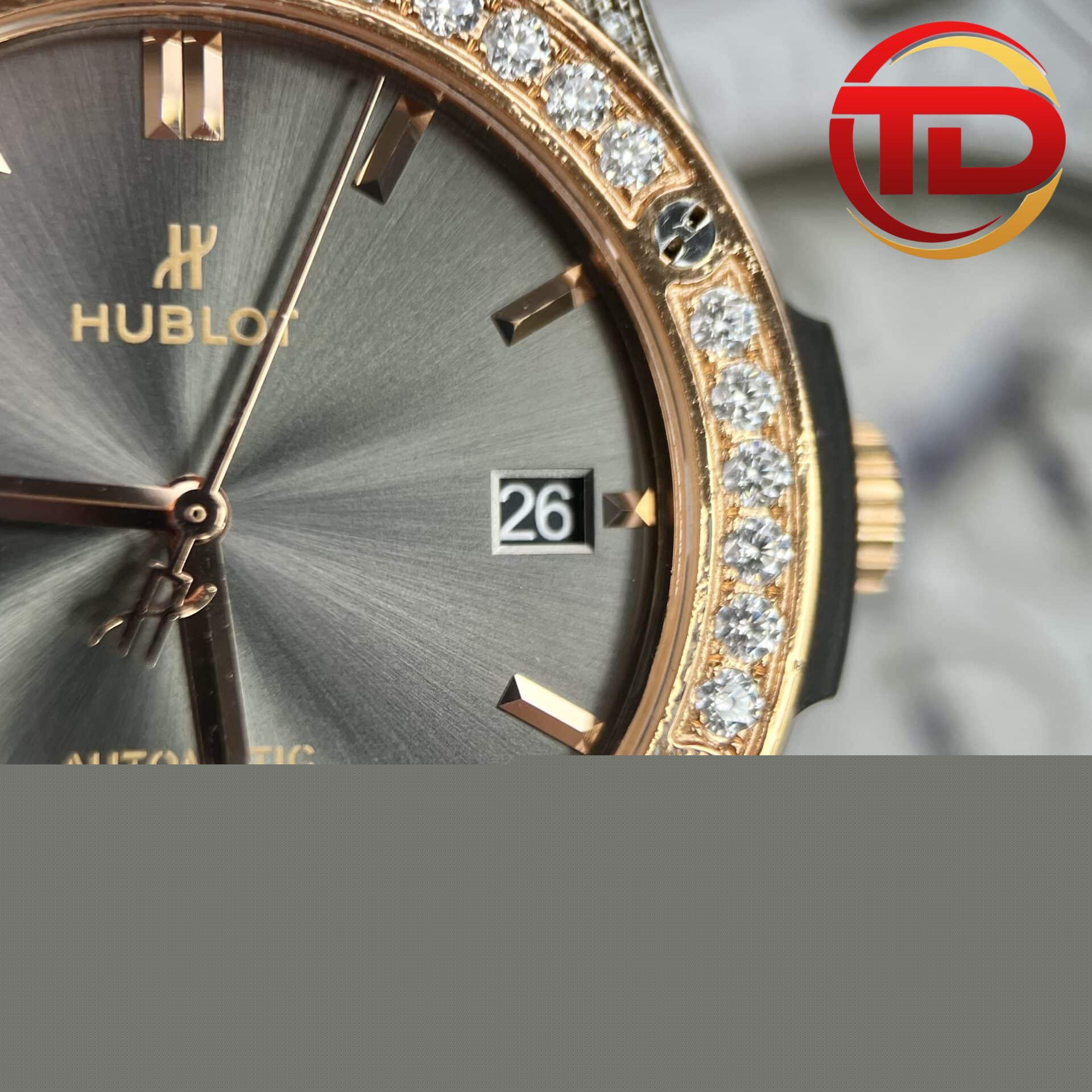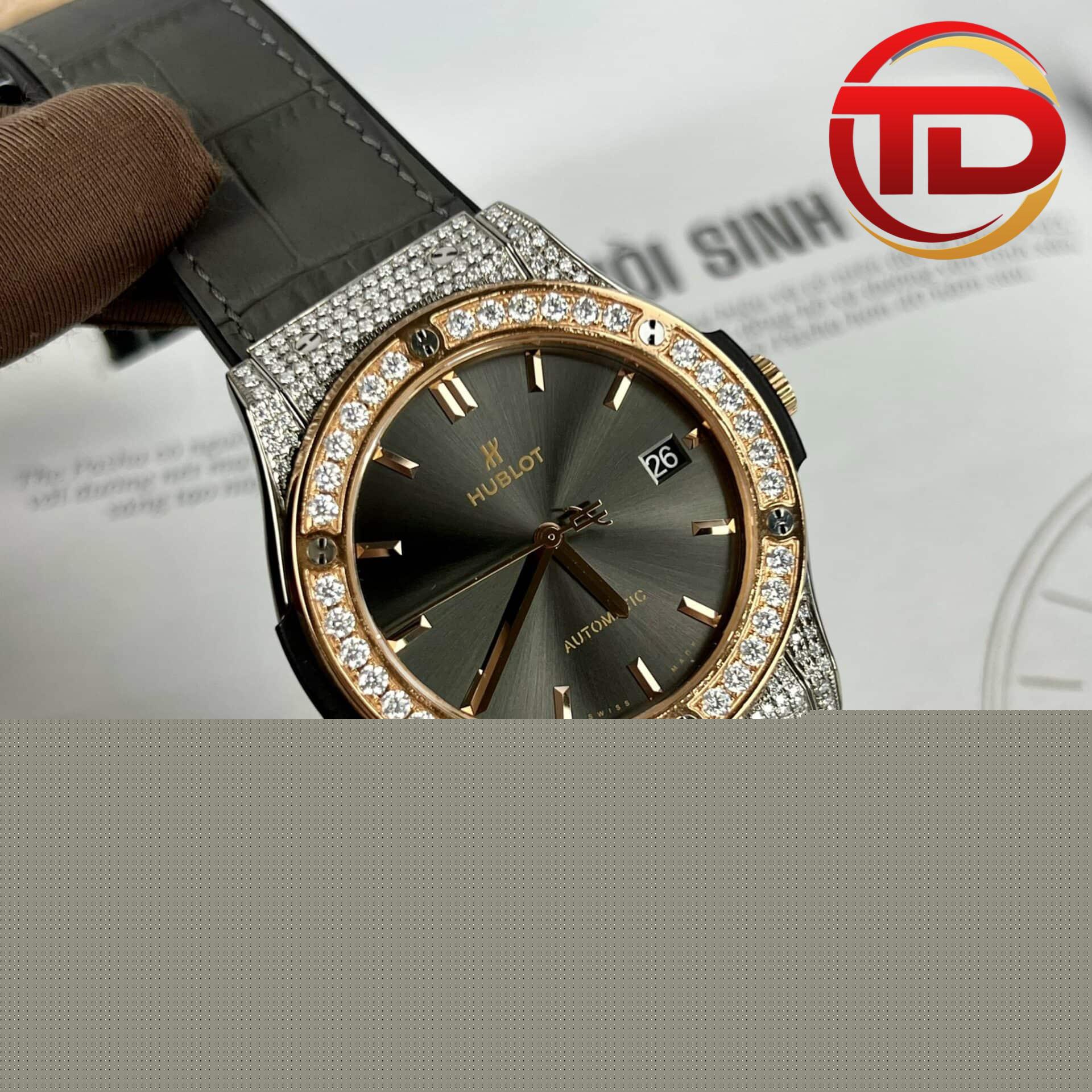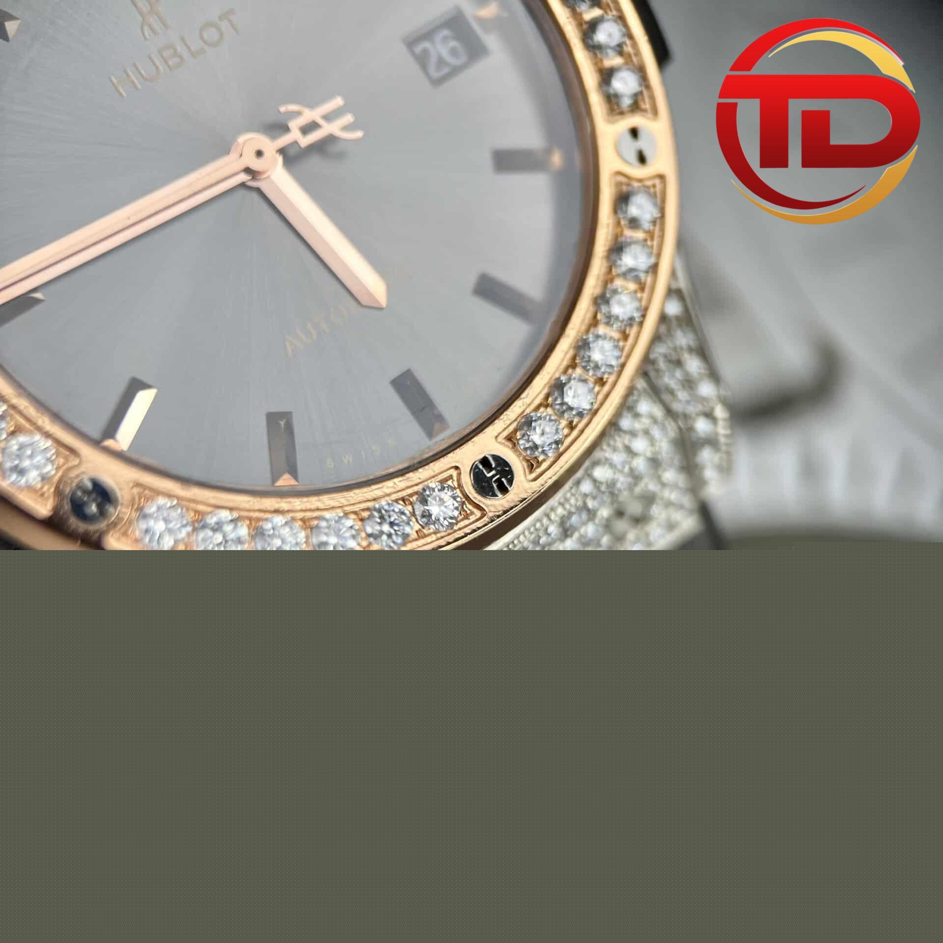 HUBLOT CLASSIC FUSION GREY DIAL MOISSANITE DIAMOND BEST REPLICA 42MM