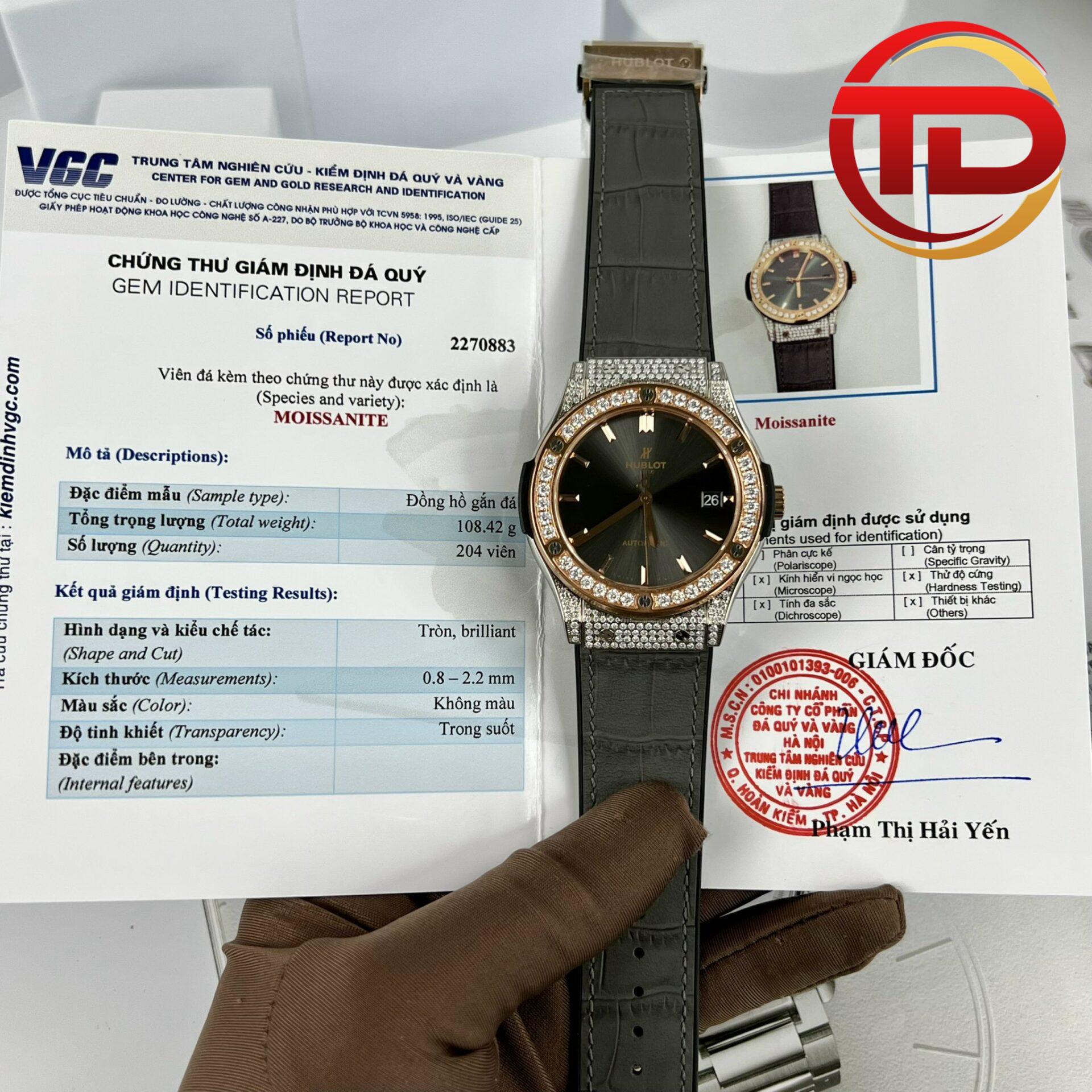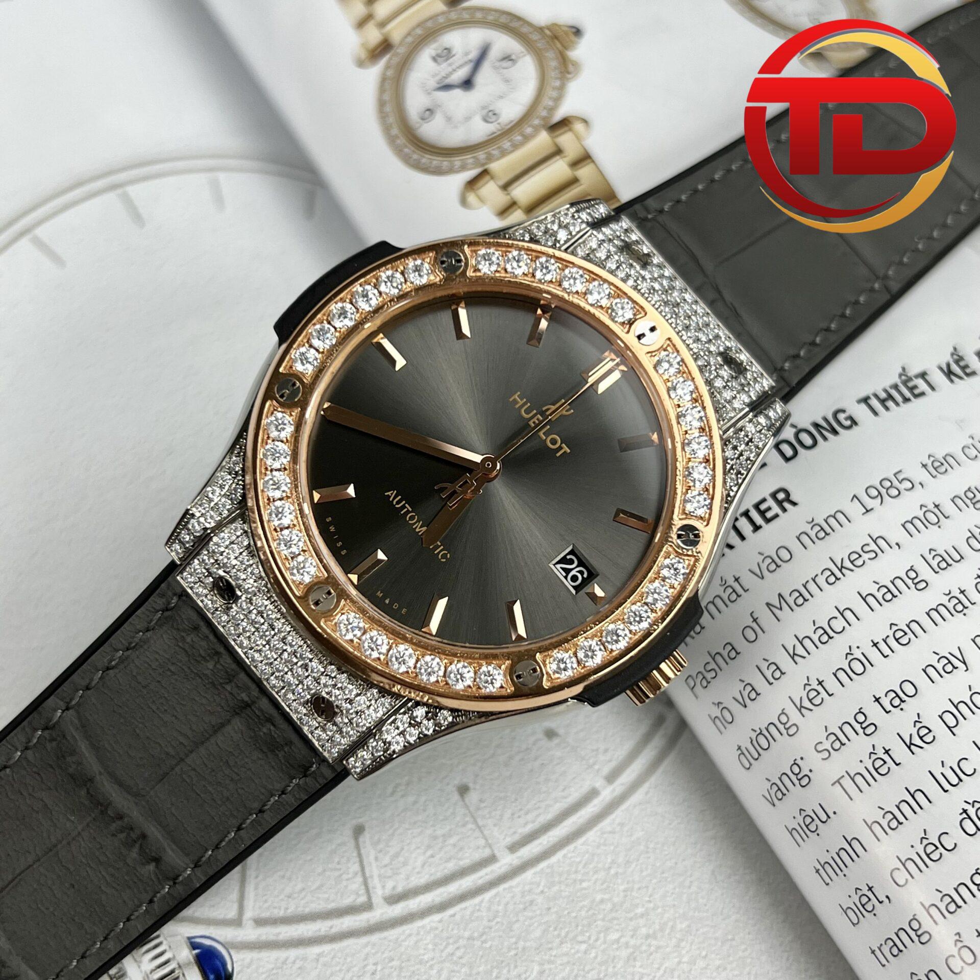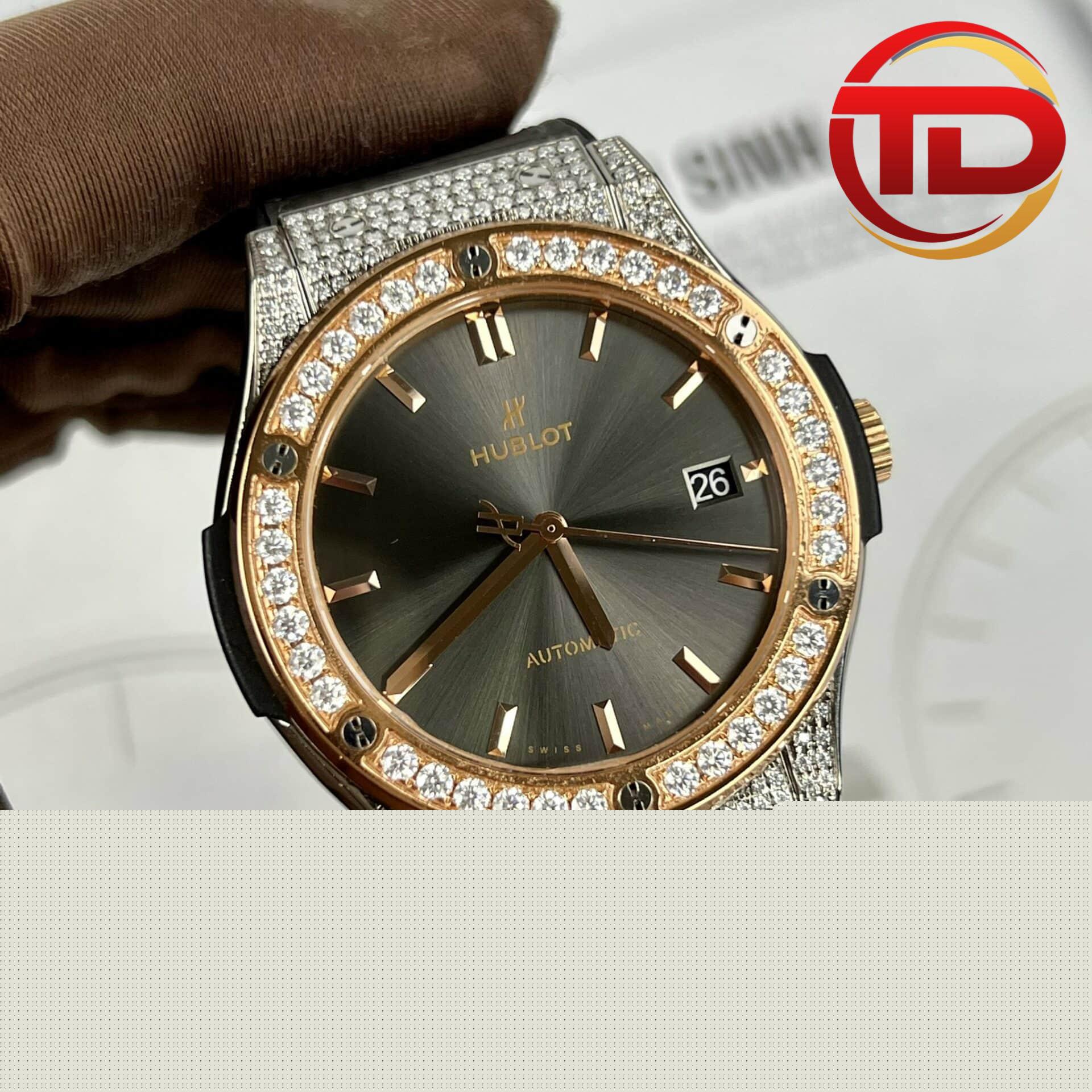 HUBLOT CLASSIC FUSION GREY DIAL MOISSANITE DIAMOND BEST REPLICA 42MM