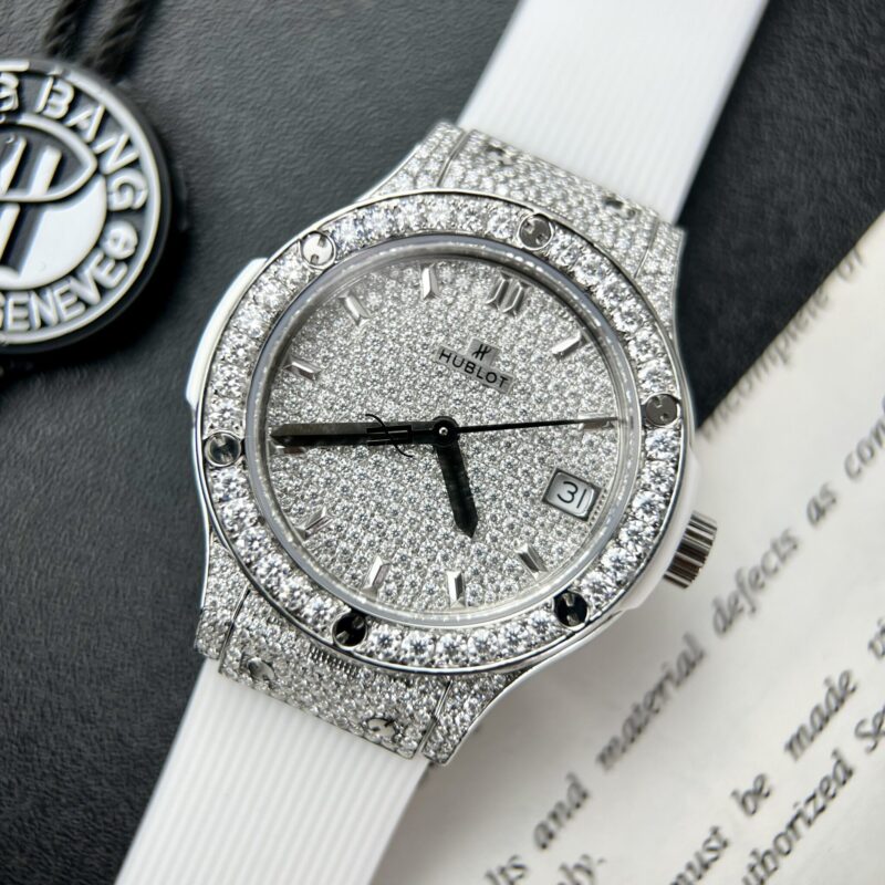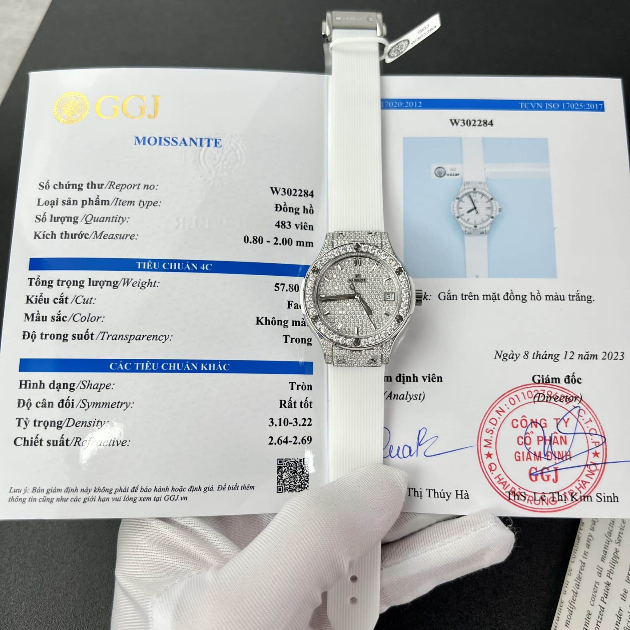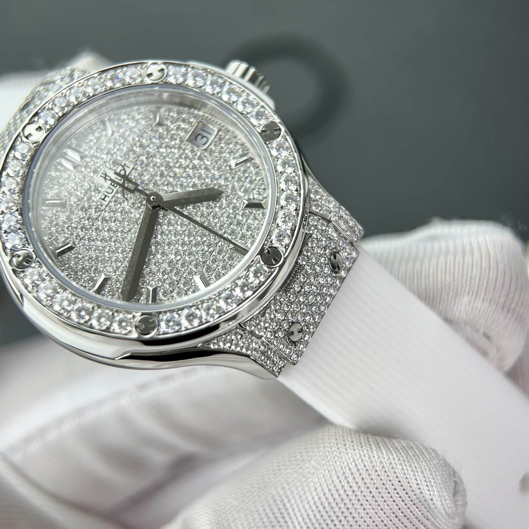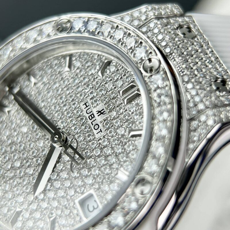 HUBLOT CLASSIC FUSION LADY WHITE ICED OUT MOISSANITE REPLICA 33MM