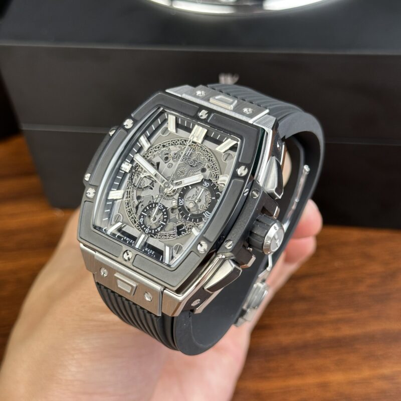 HUBLOT SPIRIT OF BIG BANG TITANIUM GREY DIAL BLACK BEZEL REPLICA 42MM