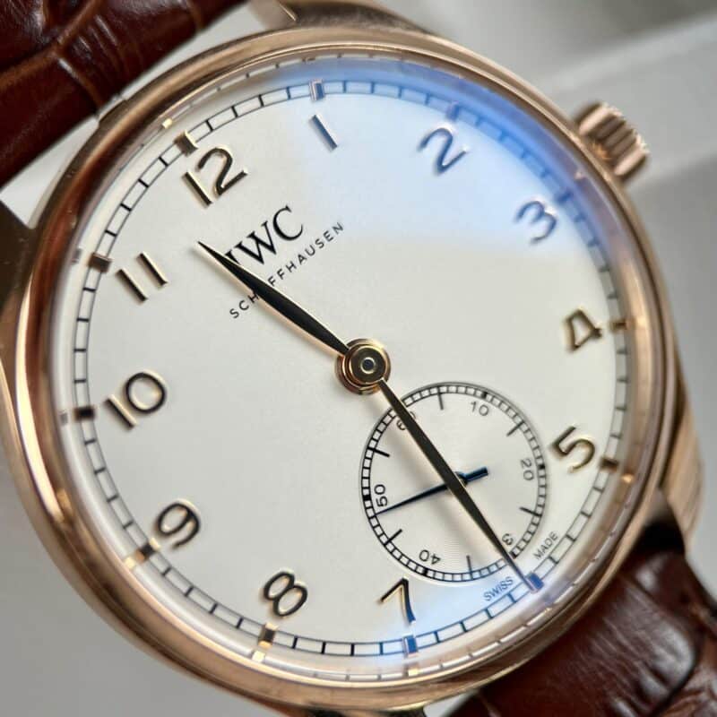 Với xuất phát điểm từ đơn đặt hàng kỳ lạ của hai doanh nhân người Bồ Đào Nha, bộ sưu tập Portugieser đã có những bước phát triển ấn tượng và trở thành dòng sản phẩm mũi nhọn của IWC. Kể từ đó, IWC đã cho ra đời rất nhiều thiết kế đẹp mắt và không thể không nhắc tới phiên bản replica 1:1 đồng hồ IWC Portugieser IW358306 vỏ vàng hồng dây da mà PyGlow mang tới cho quý khách hàng hôm nay.