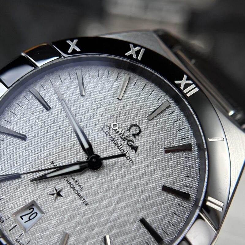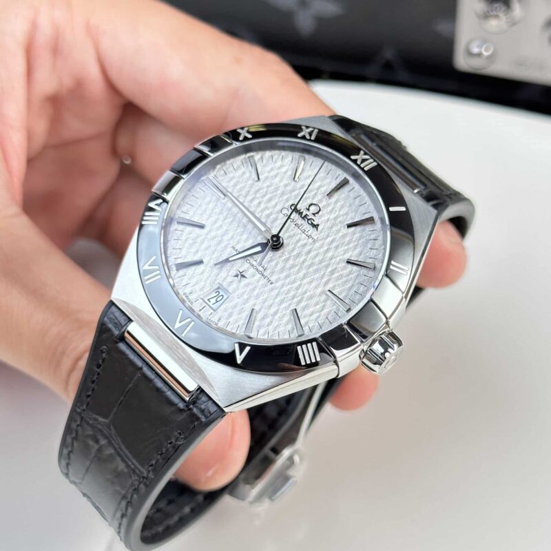 OMEGA CONSTELLATION STEEL & CERAMIC BEZEL WHITE DIAL RUBBER STRAP BEST REPLICA 41MM