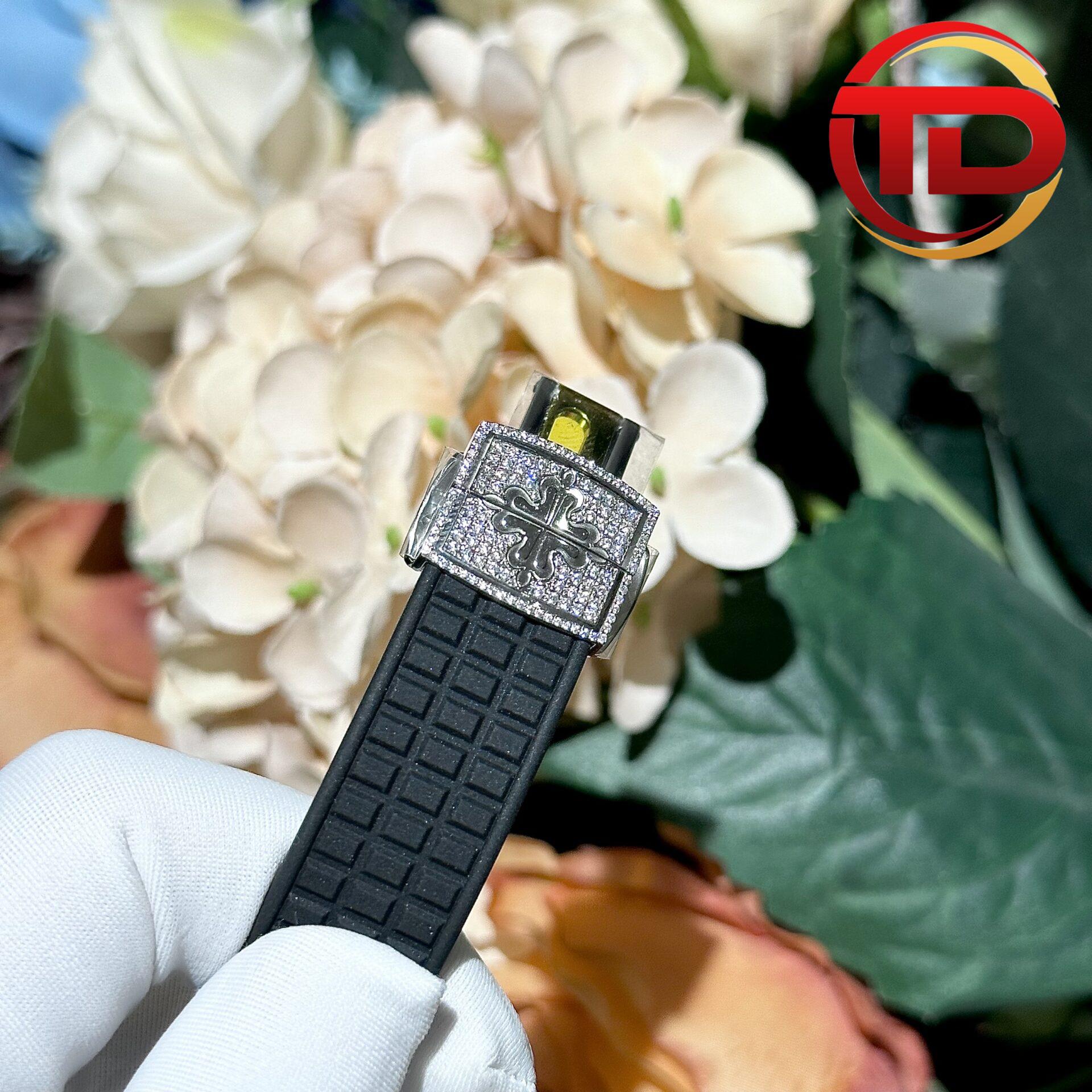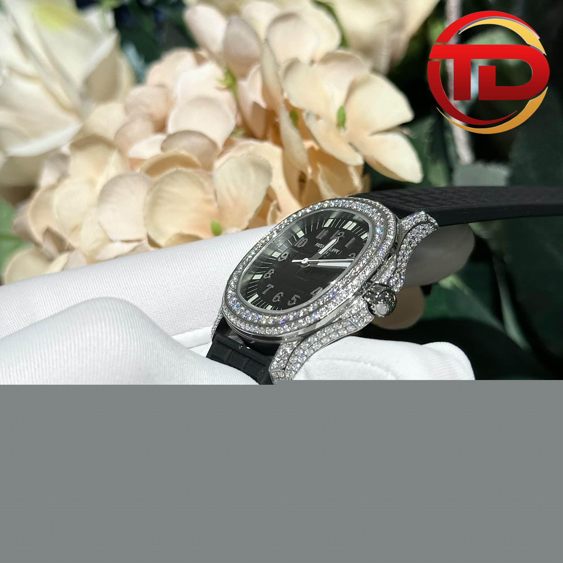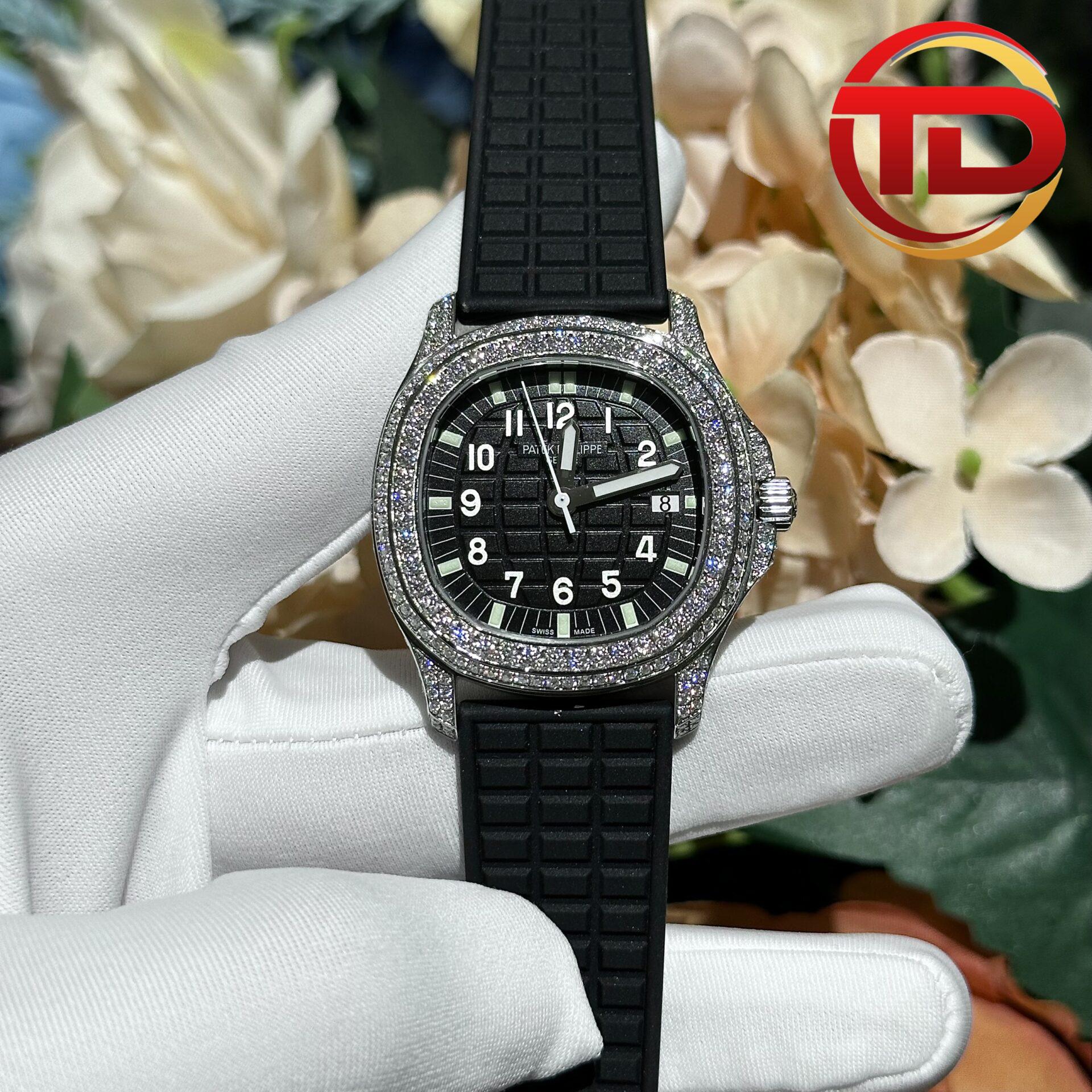 Beautiful Watch World is introducing the exquisite replica Patek Philippe Aquanaut 5067 women’s watch in black, with a full moissanite diamond encrusted case, specifically designed for sophisticated ladies.