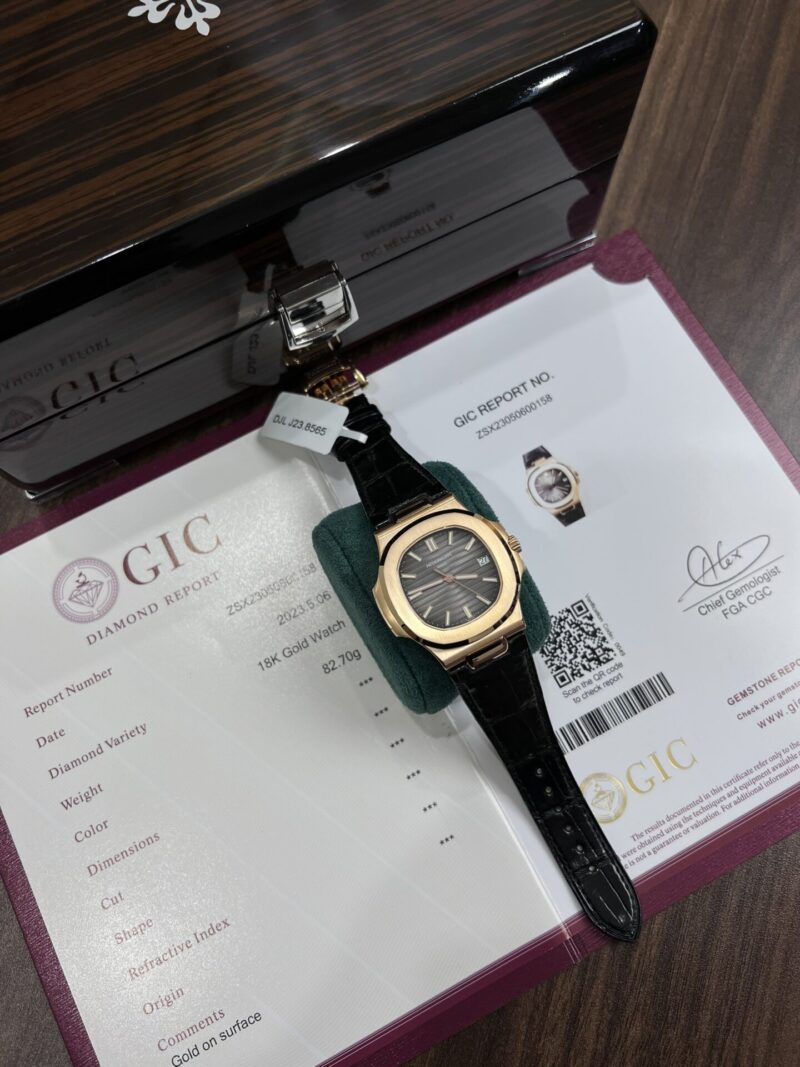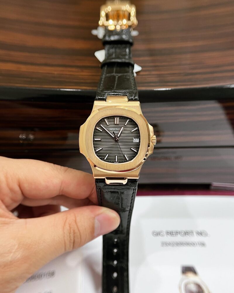 Let’s view the best replica Patek Philippe in the market, the Patek Philippe Nautilus 5711R-001 Rose Gold Wrapped grey dial with the Caliber 324 S C Super Clone 1:1.