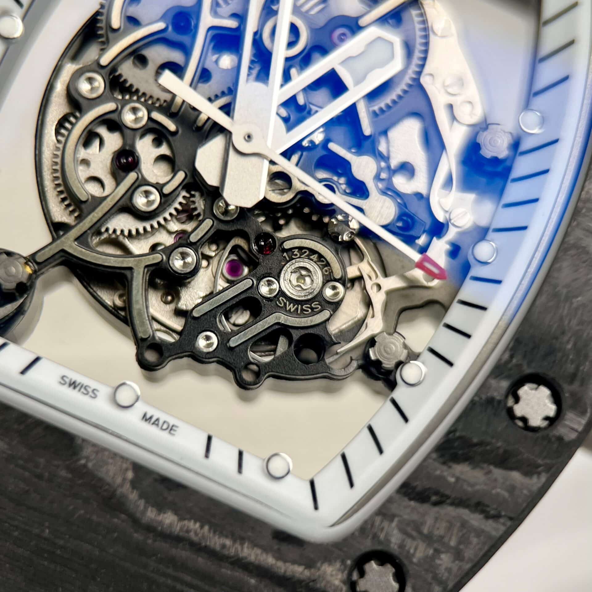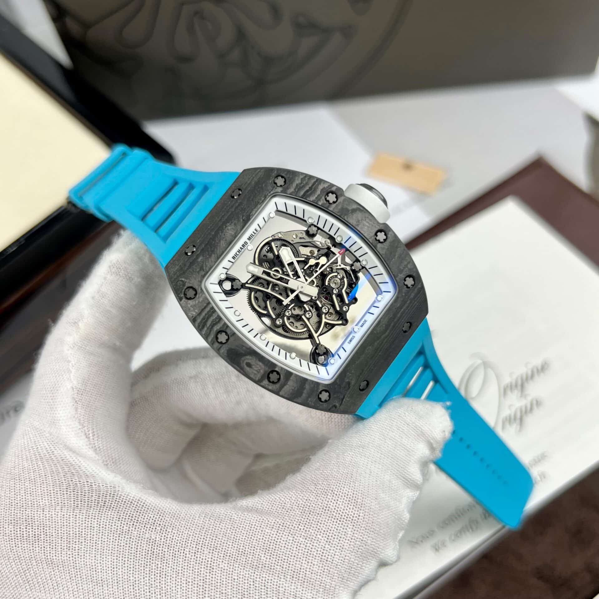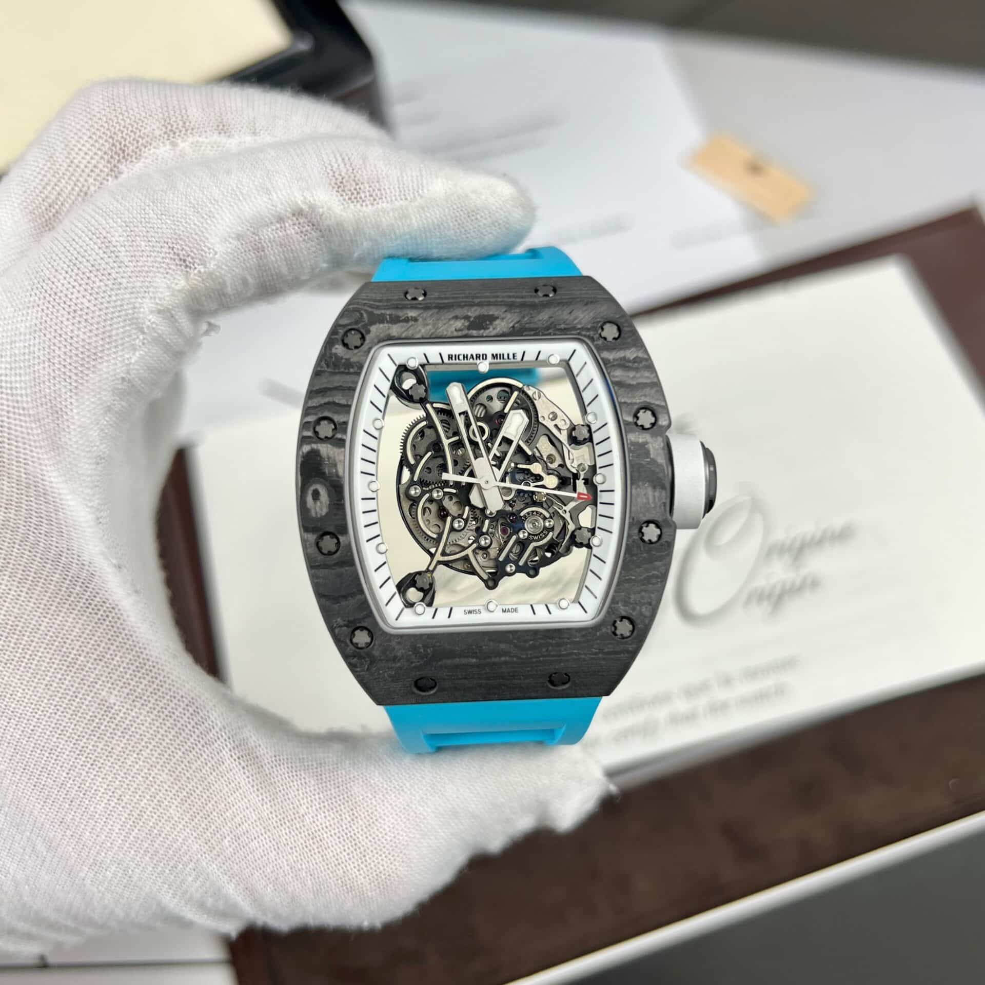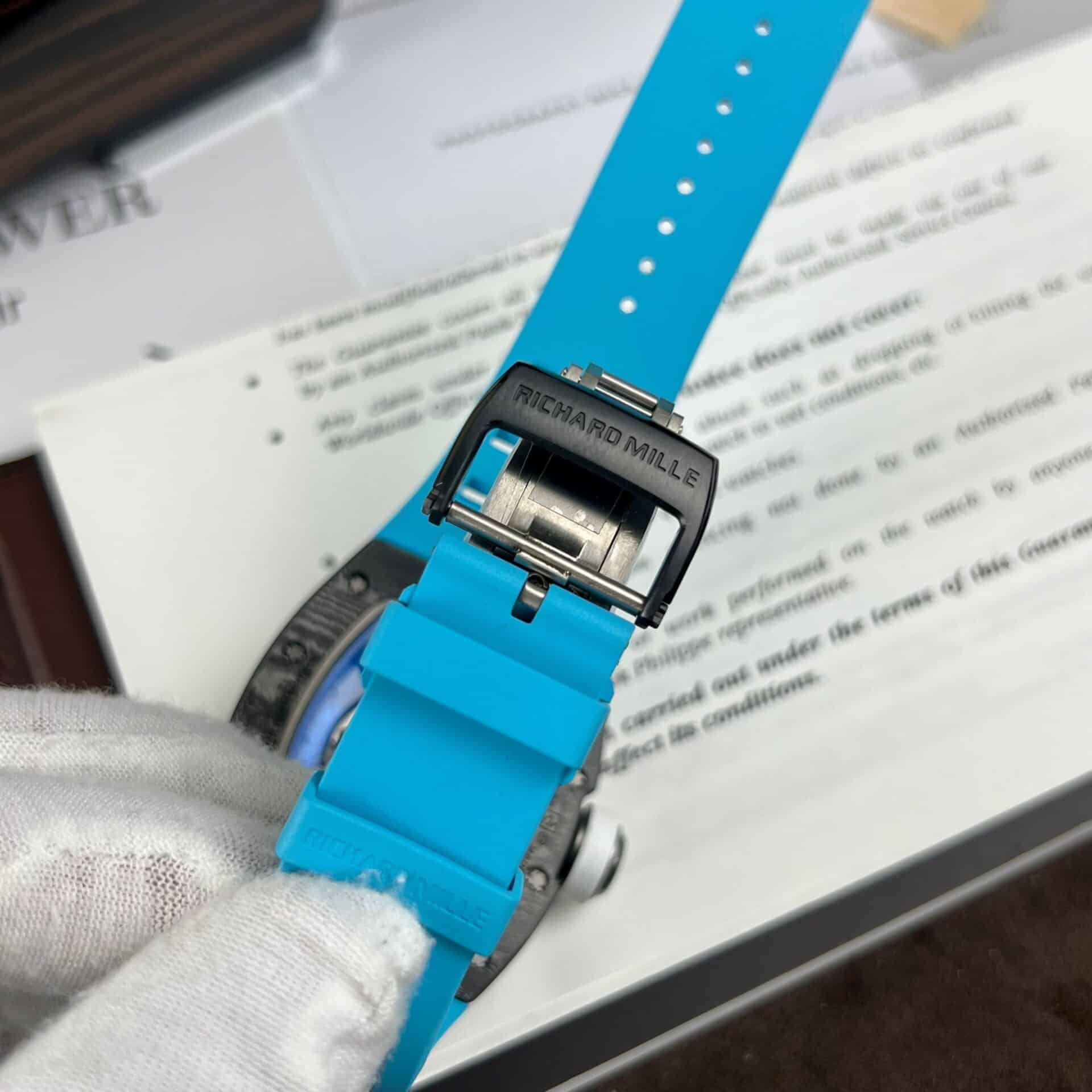 RICHARD MILLE RM055 BLUE RUBBER STRAP CARBON CASE BEST REPLICA 42.7MM