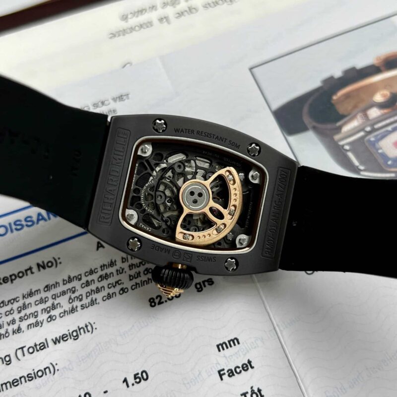 RICHARD MILLE RM07-01 BLACK CERAMIC CUSTOM MOISSANITE REPLICA 32.3MM