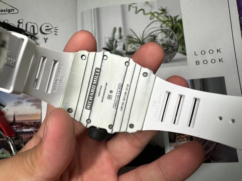 We are pleased to introduce the best swiss replica watches – Richard Mille RM 12-01 Tourbillon White Quartz NTPT 40 x 39.3mm. This is the highest quality of RM 12-01 Tourbillon Quartz NTPT available in the market with the manual winding, tourbillon movement from VVS Factory.