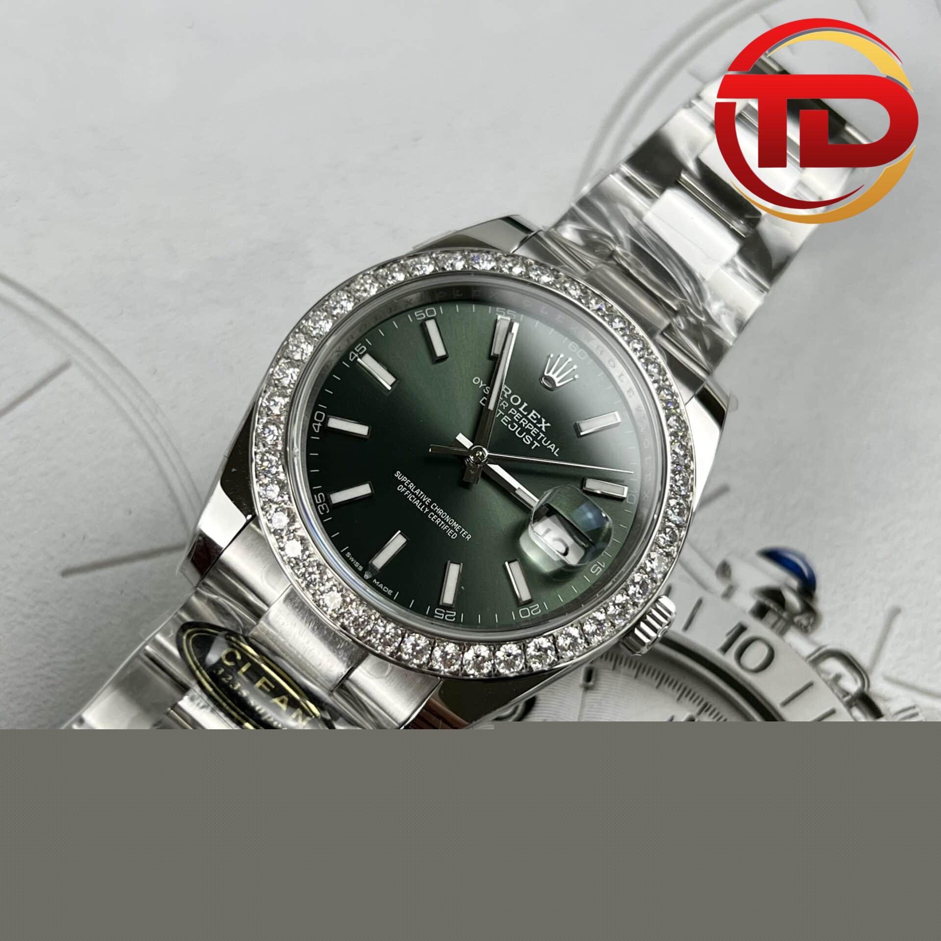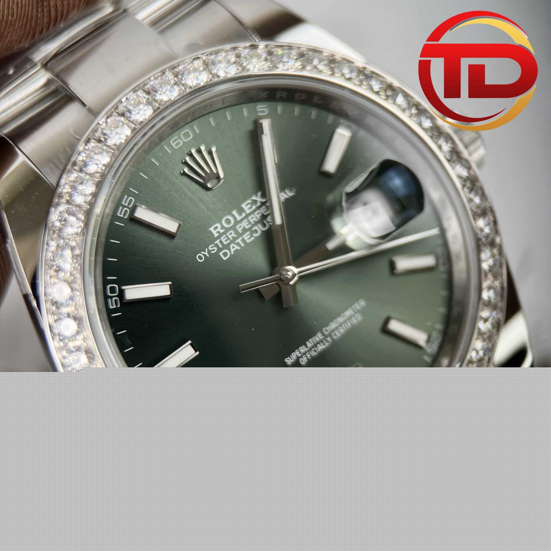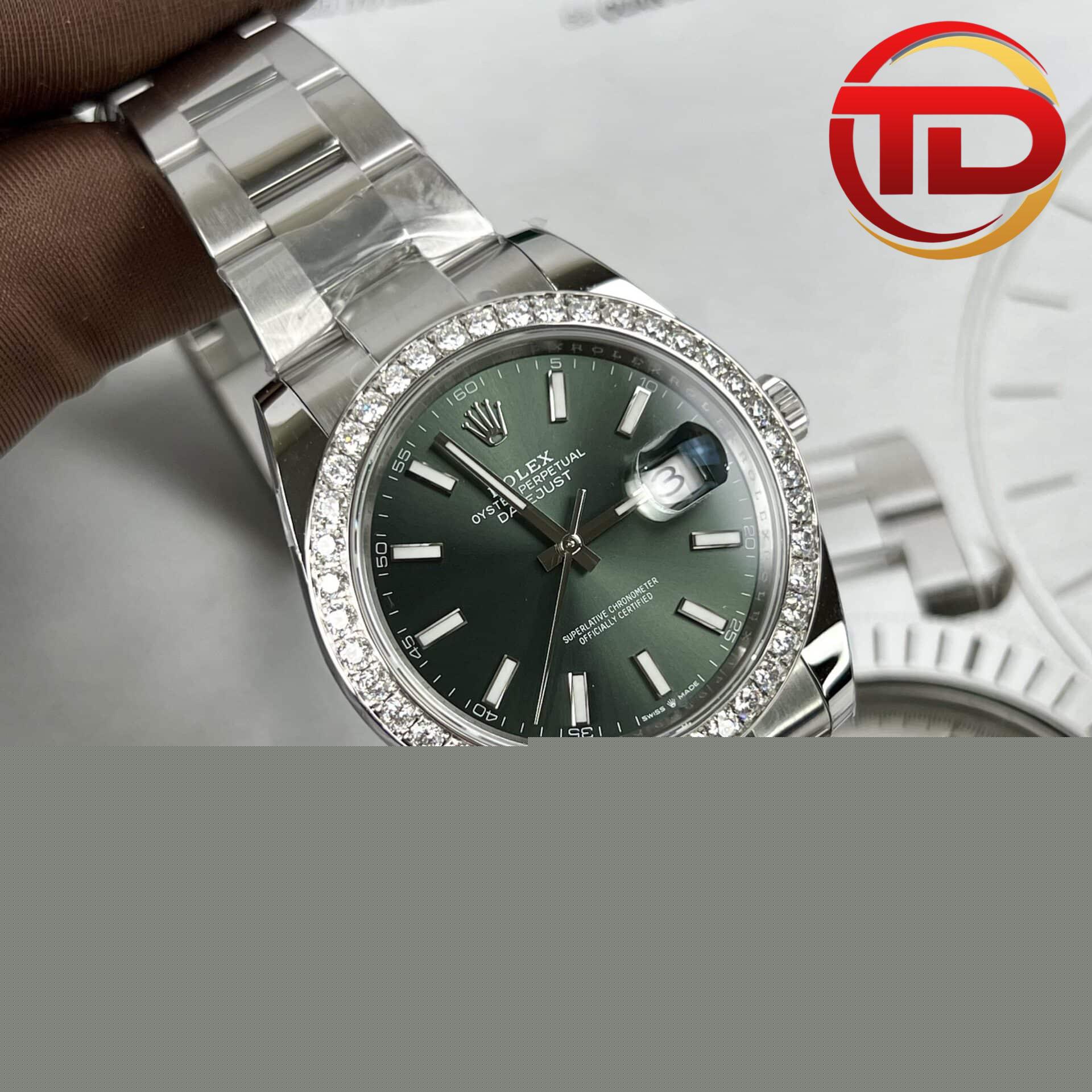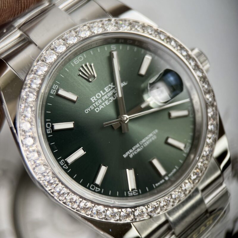 ROLEX DATEJUST 126334 GREEN DIAL CUSTOM MOISSANITE DIAMOND BEST REPLICA 41MM