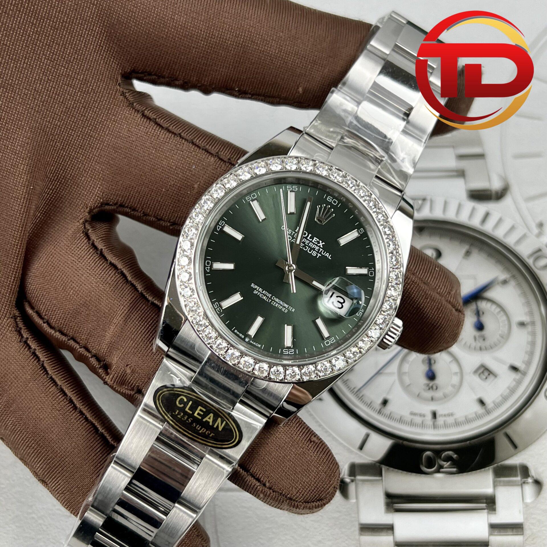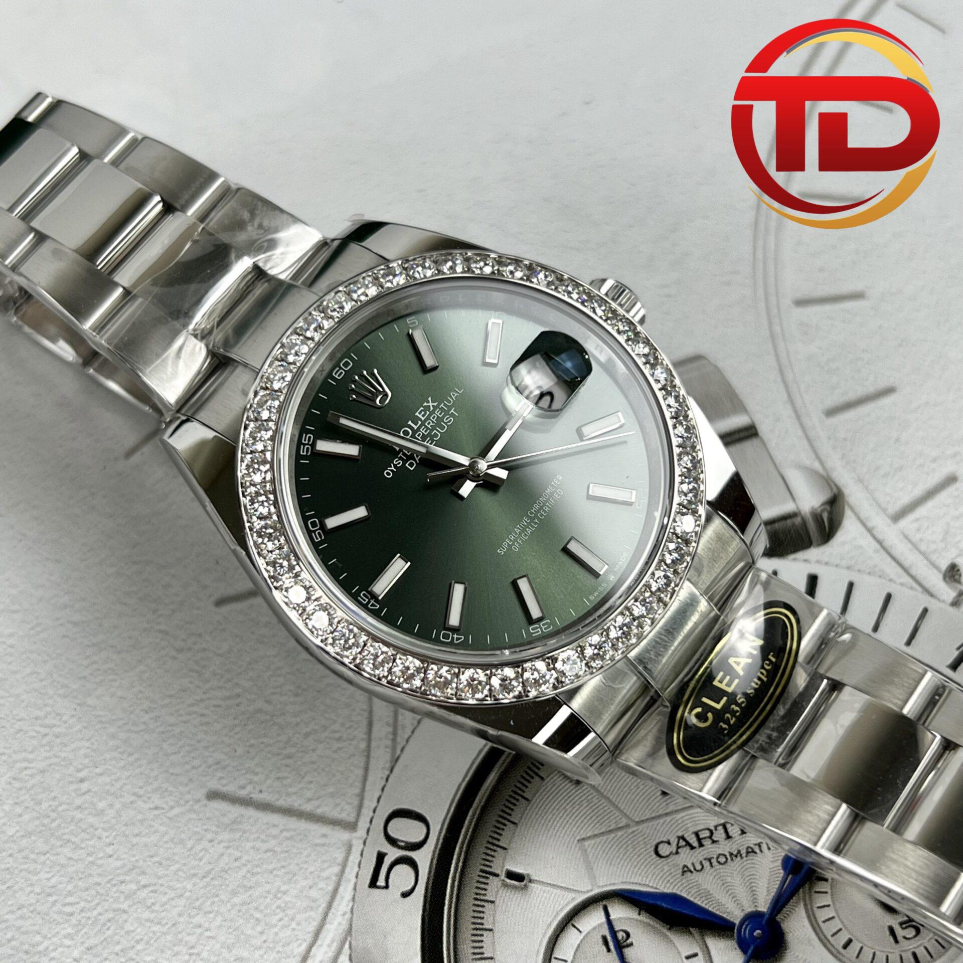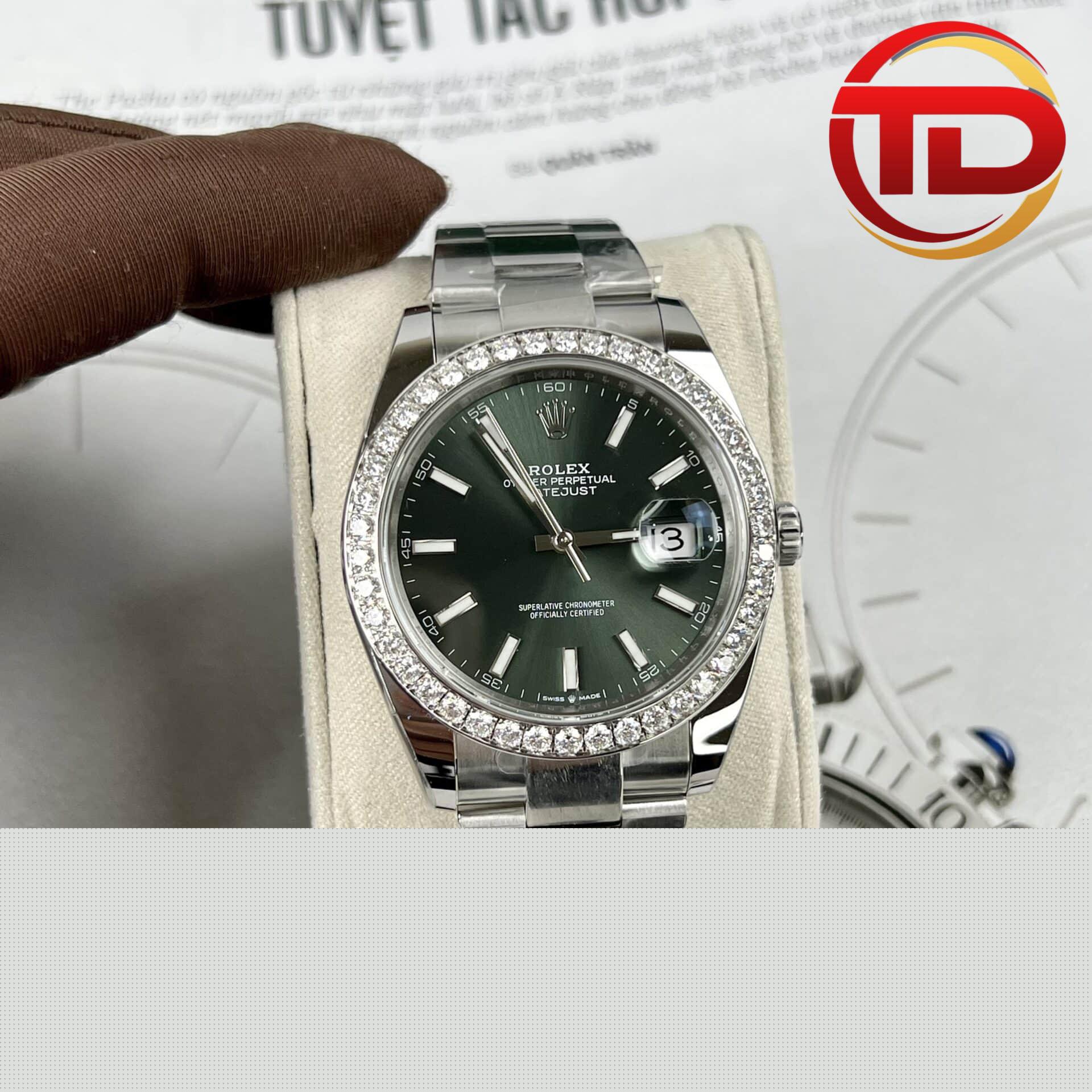 ROLEX DATEJUST 126334 GREEN DIAL CUSTOM MOISSANITE DIAMOND BEST REPLICA 41MM