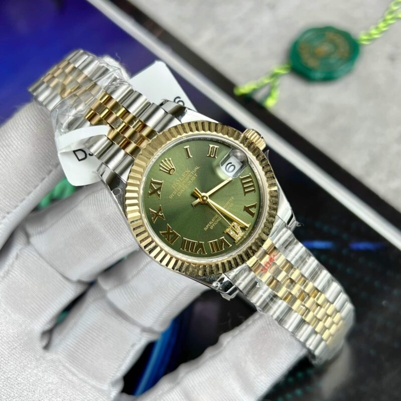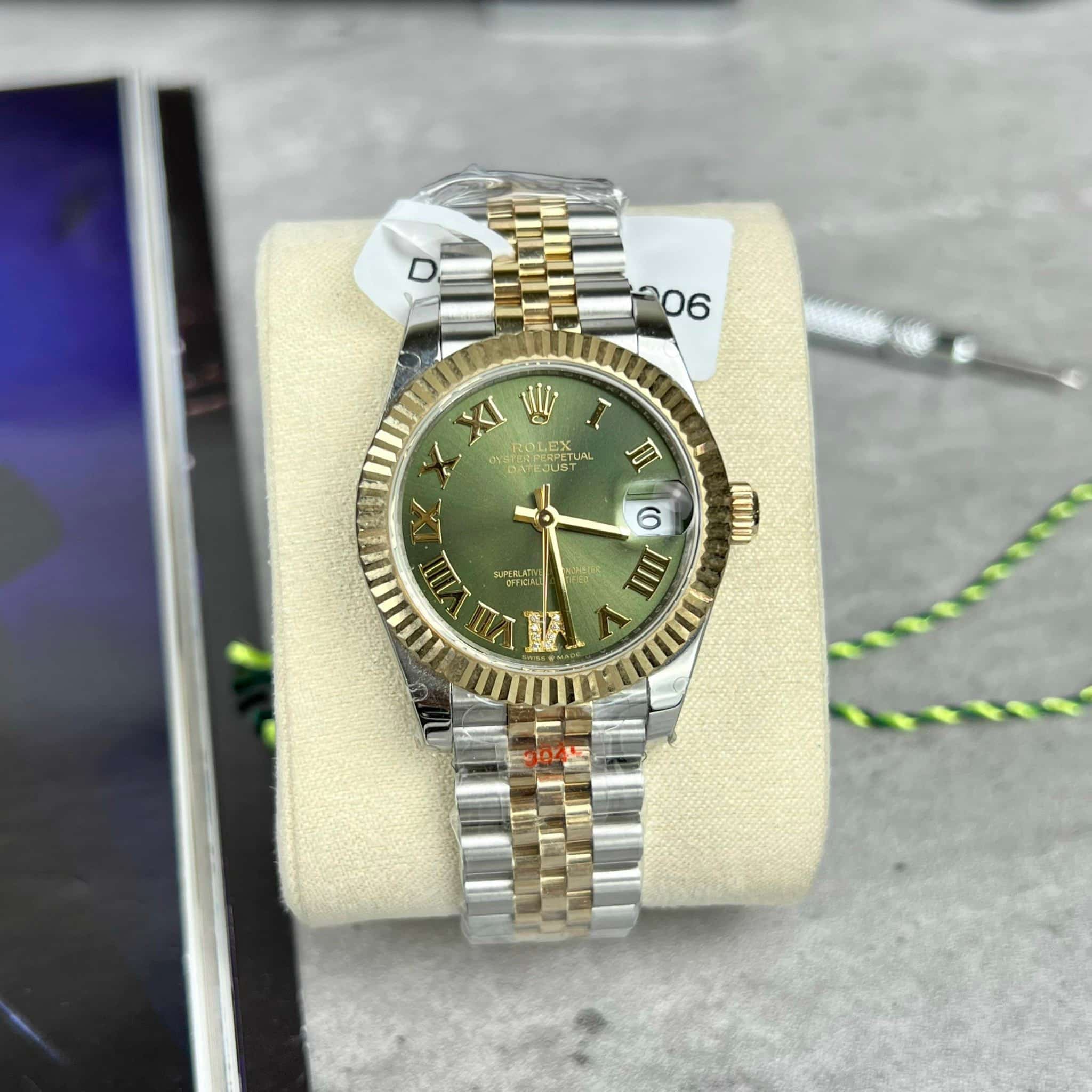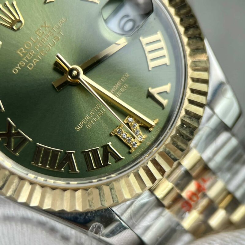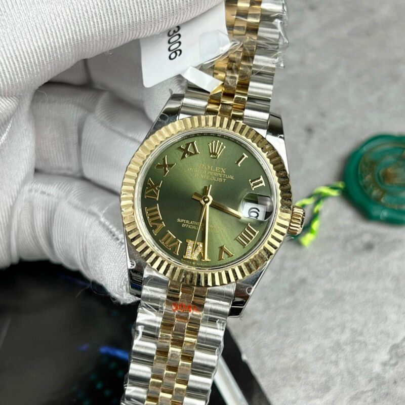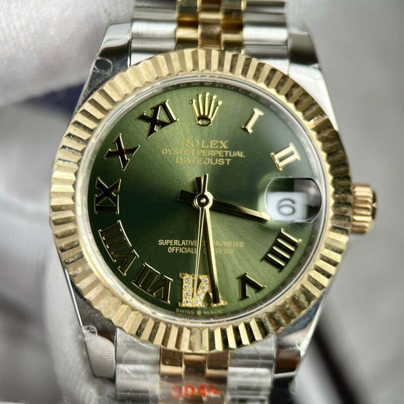 ROLEX DATEJUST 278273-0016 OLIVE-GREEN DIAMOND-SET DIAL 18K GOLD WRAPPED 31MM